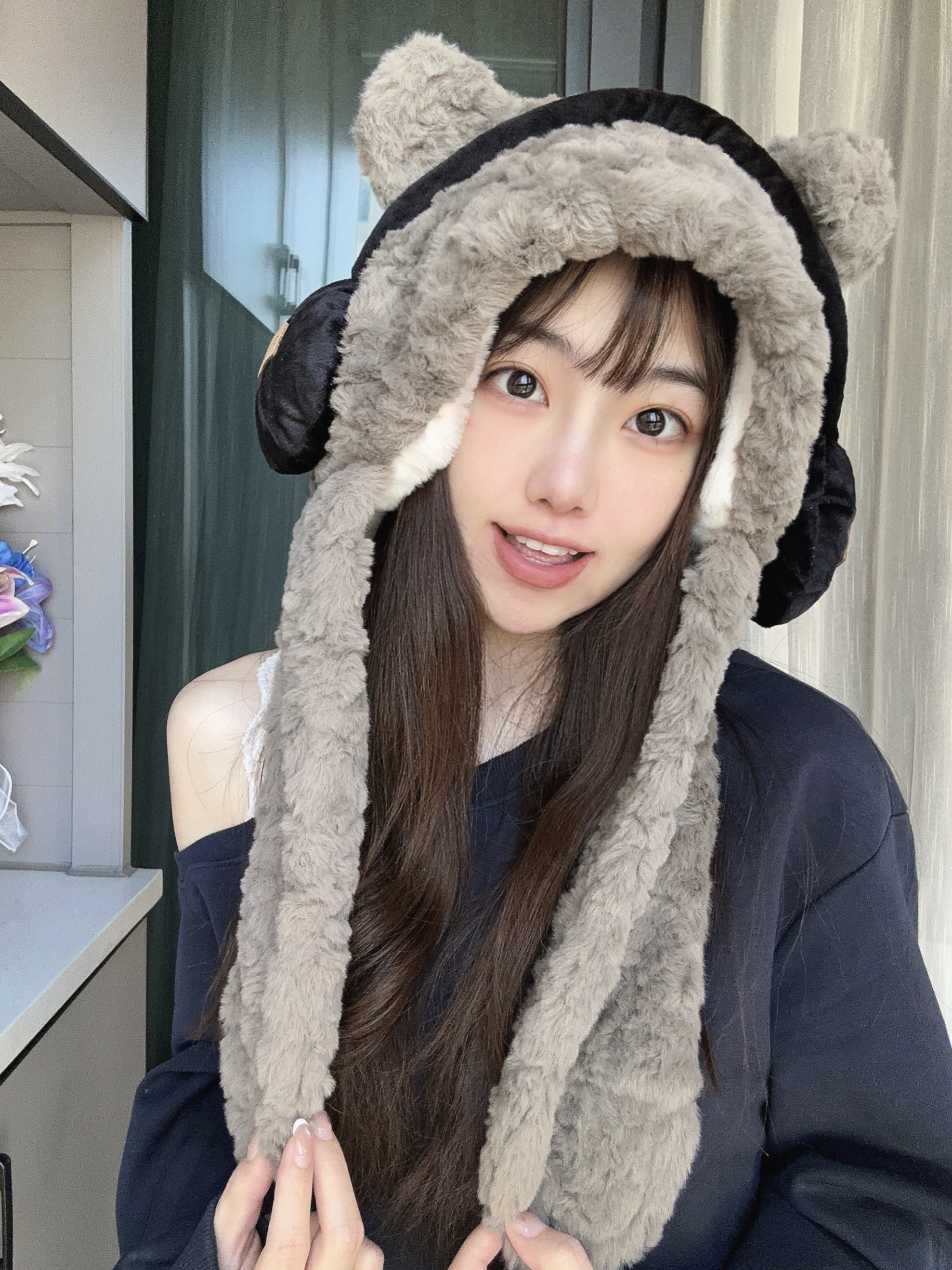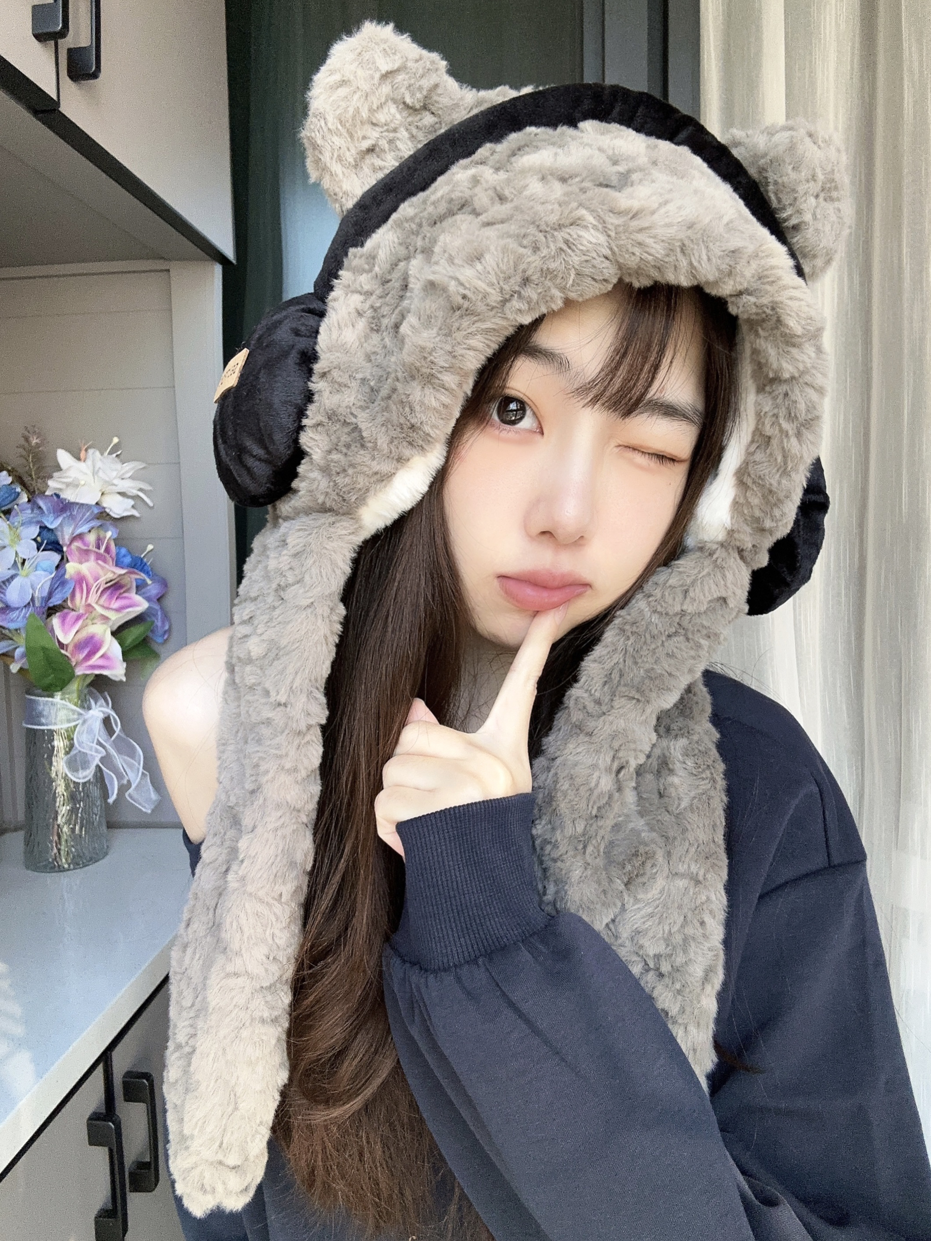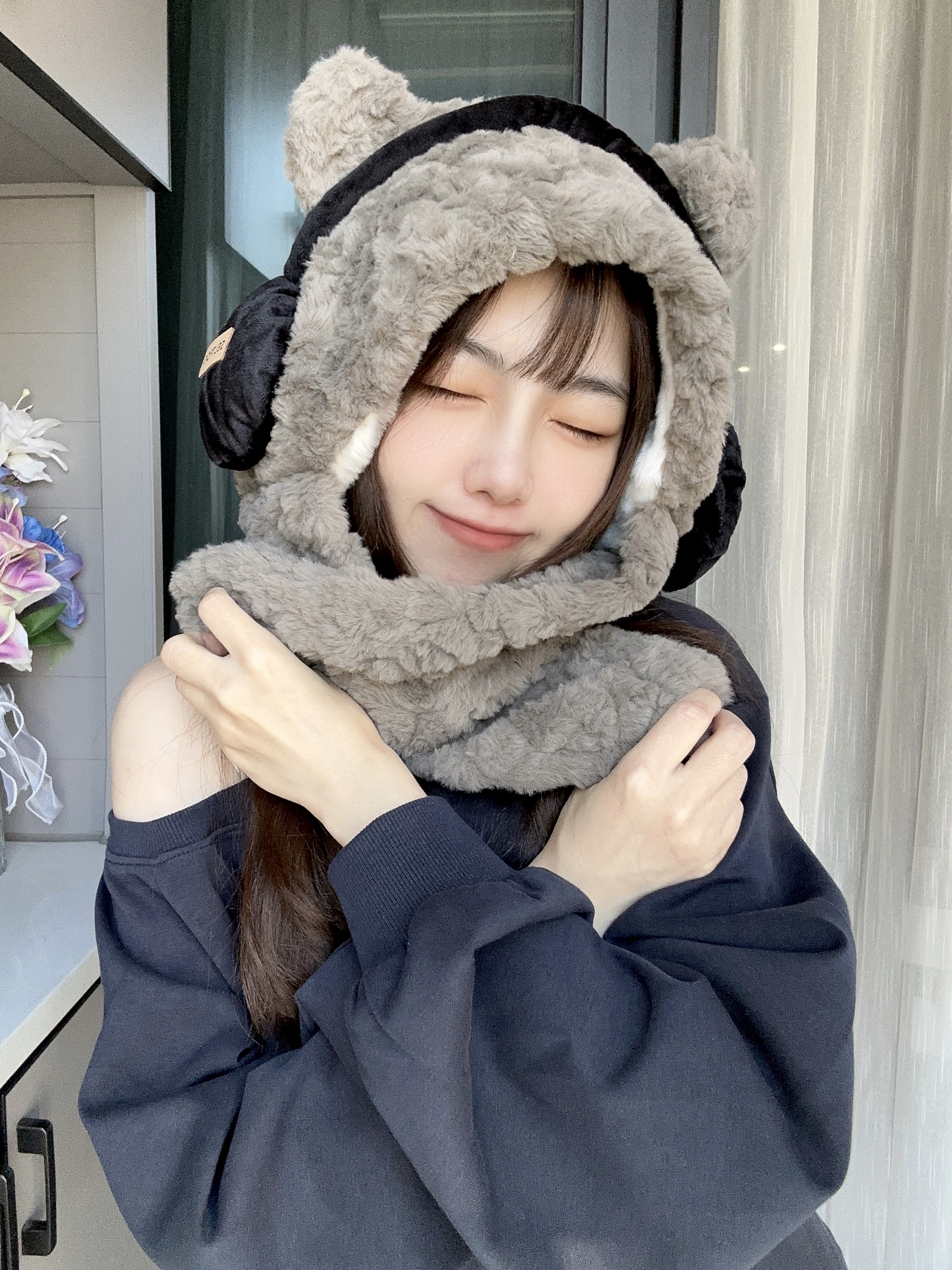冬日的氛围感还得是毛绒帽子❄️ 戴耳机的小熊帽子萌到我了 它是围脖和帽子一体的很暖和🧣 🎧装饰看起来很时髦,保暧又时尚 面料蛮柔软的不会扎皮肤,挺舒服~