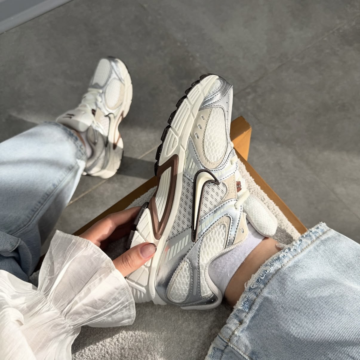 才懂它为啥是今夏老爹鞋顶流!先看颜值:米白基底+银质装饰+深棕拼接,低饱和度的配色高级又百搭,不管是休闲装还是轻熟风都能适配。再聊工艺,鞋面用了透气网眼布+合成革的组合,既保证了轻便度,又让鞋身的支撑性在线,鞋舌处的Nike刺绣和后跟的品牌标识细节感拉满。脚感方面,泡棉中底提供了恰到好处的缓震,前掌的纹路设计让走路时的抓地力很稳,哪怕长时间穿着也不会有磨脚的情况。而且鞋身的重量控制得很好,完全没有...