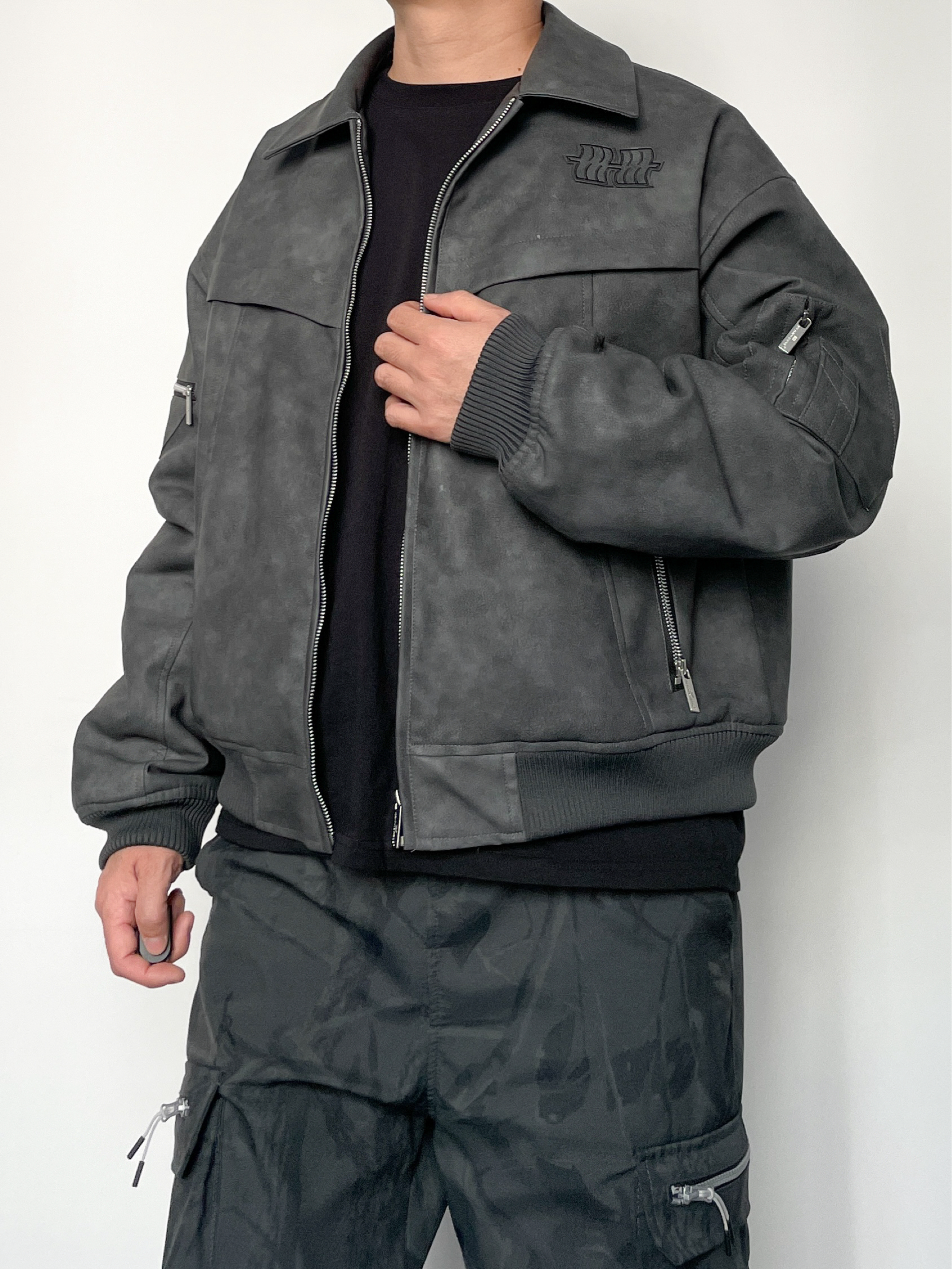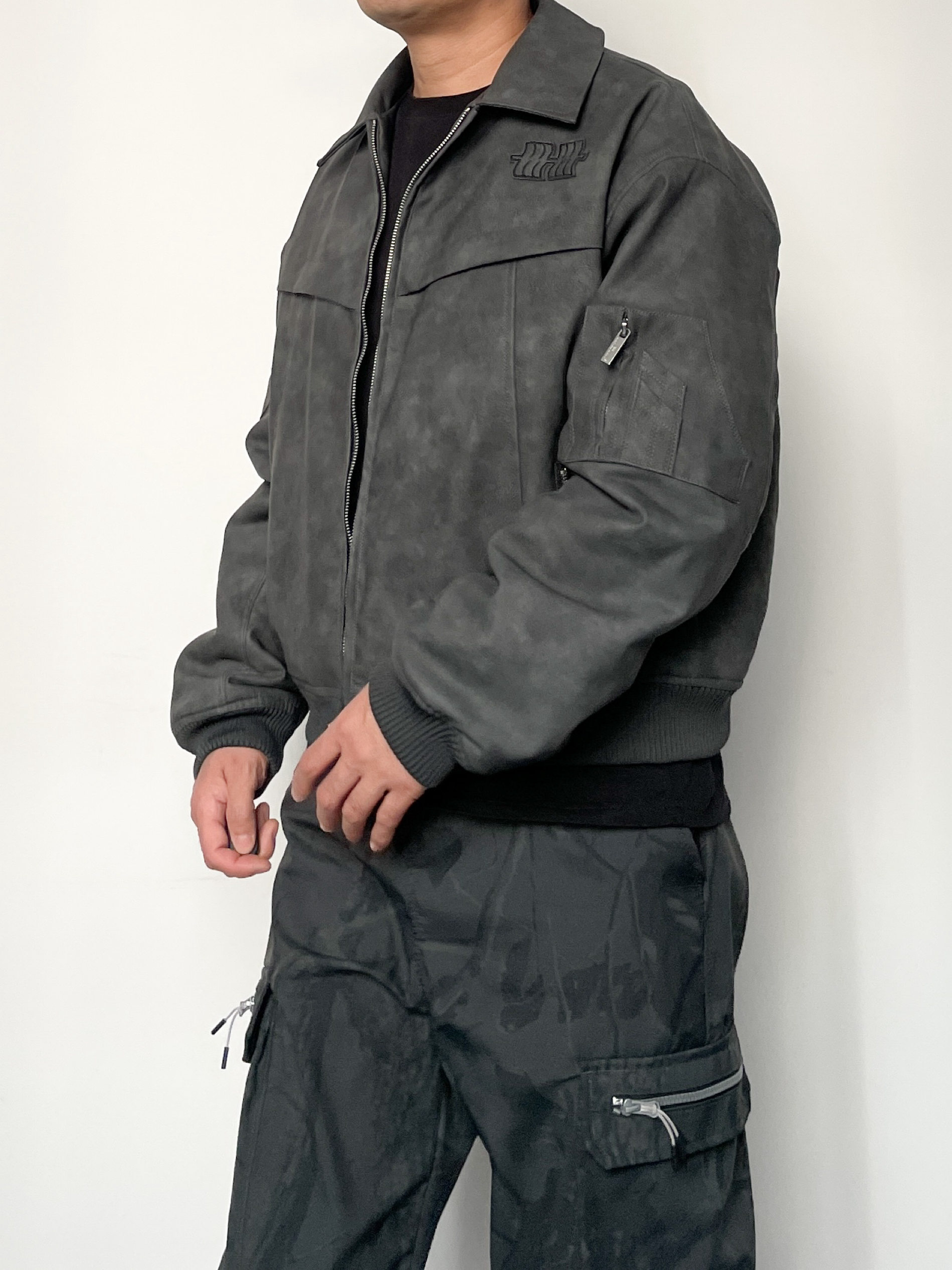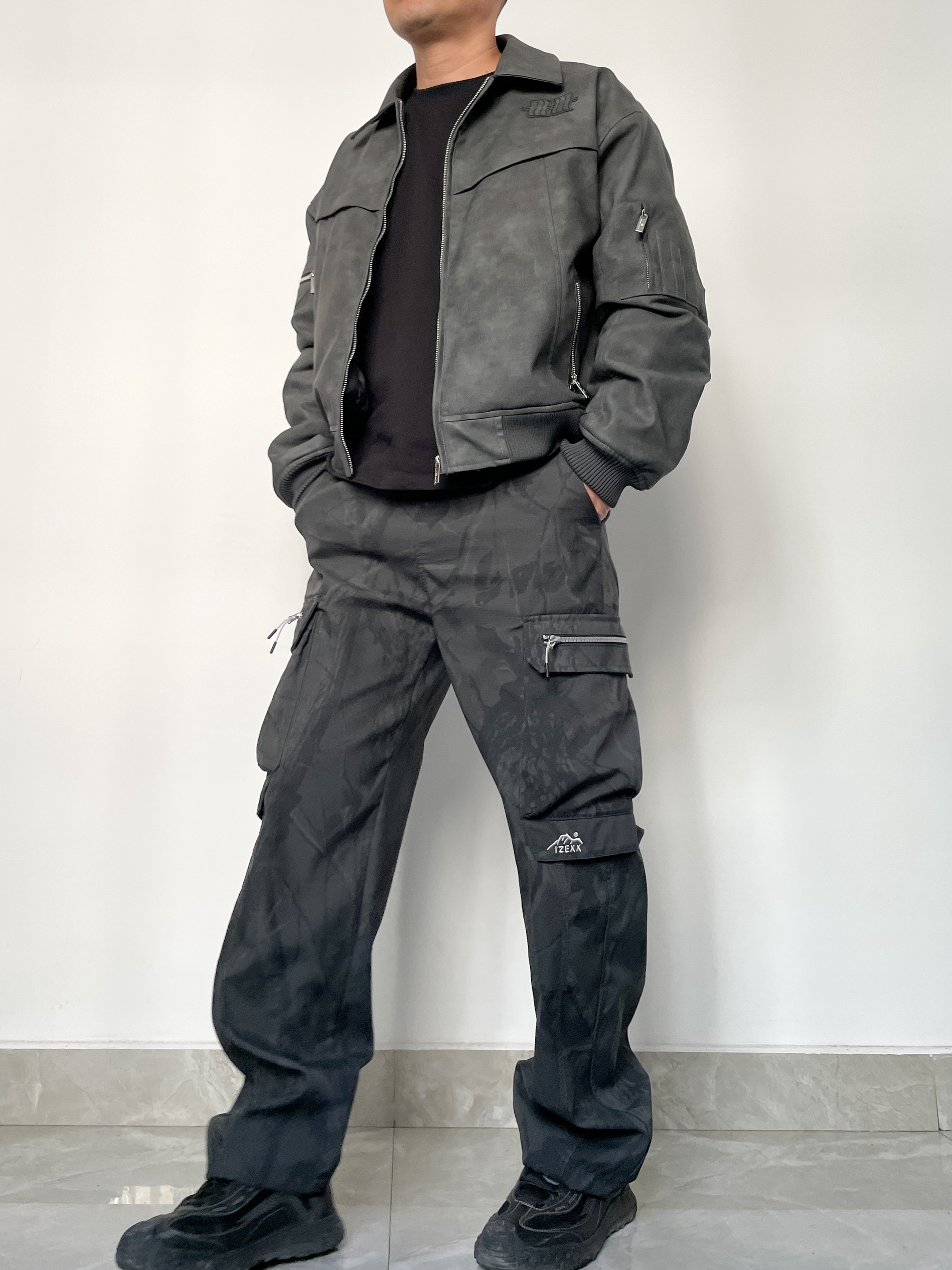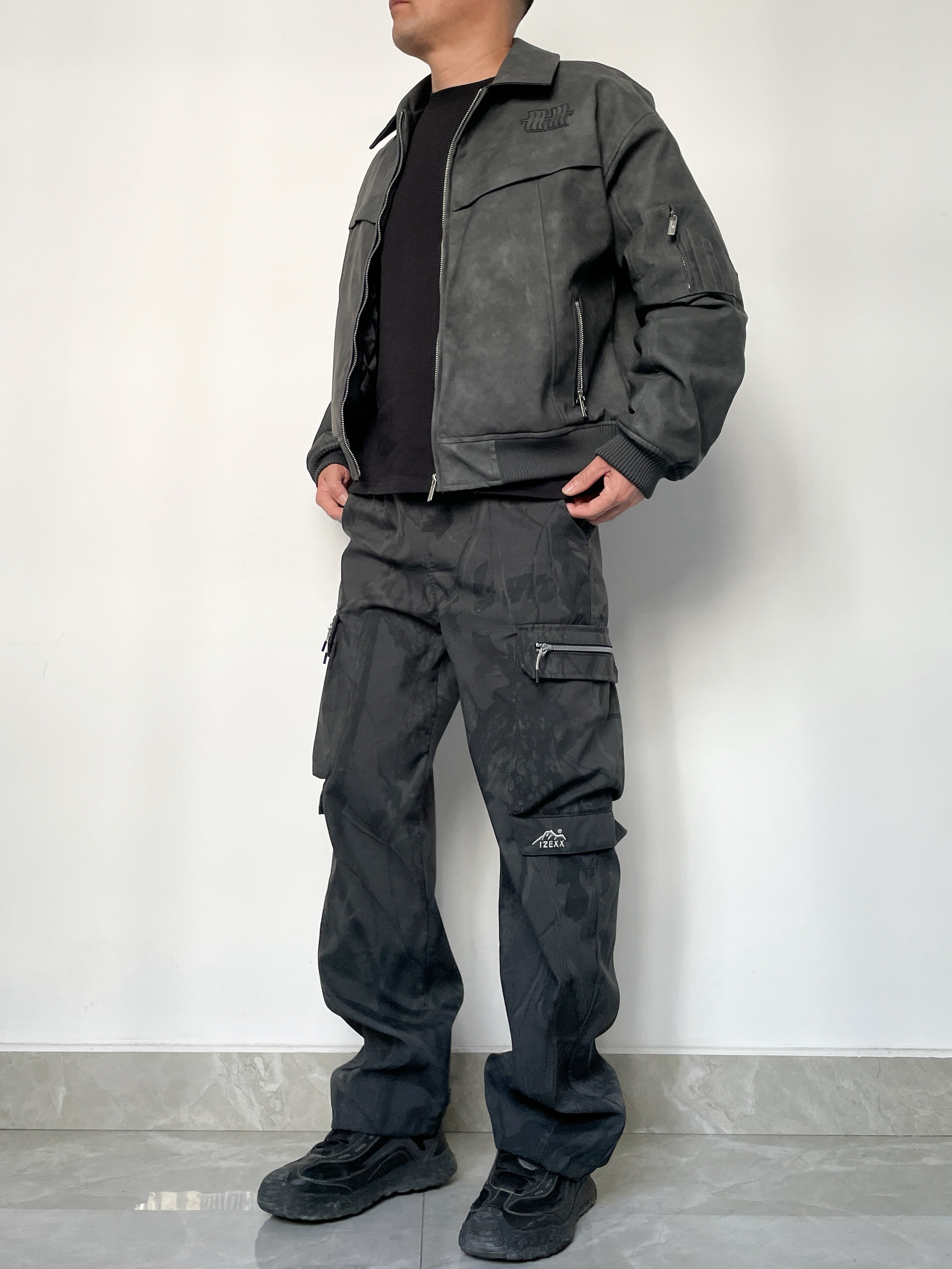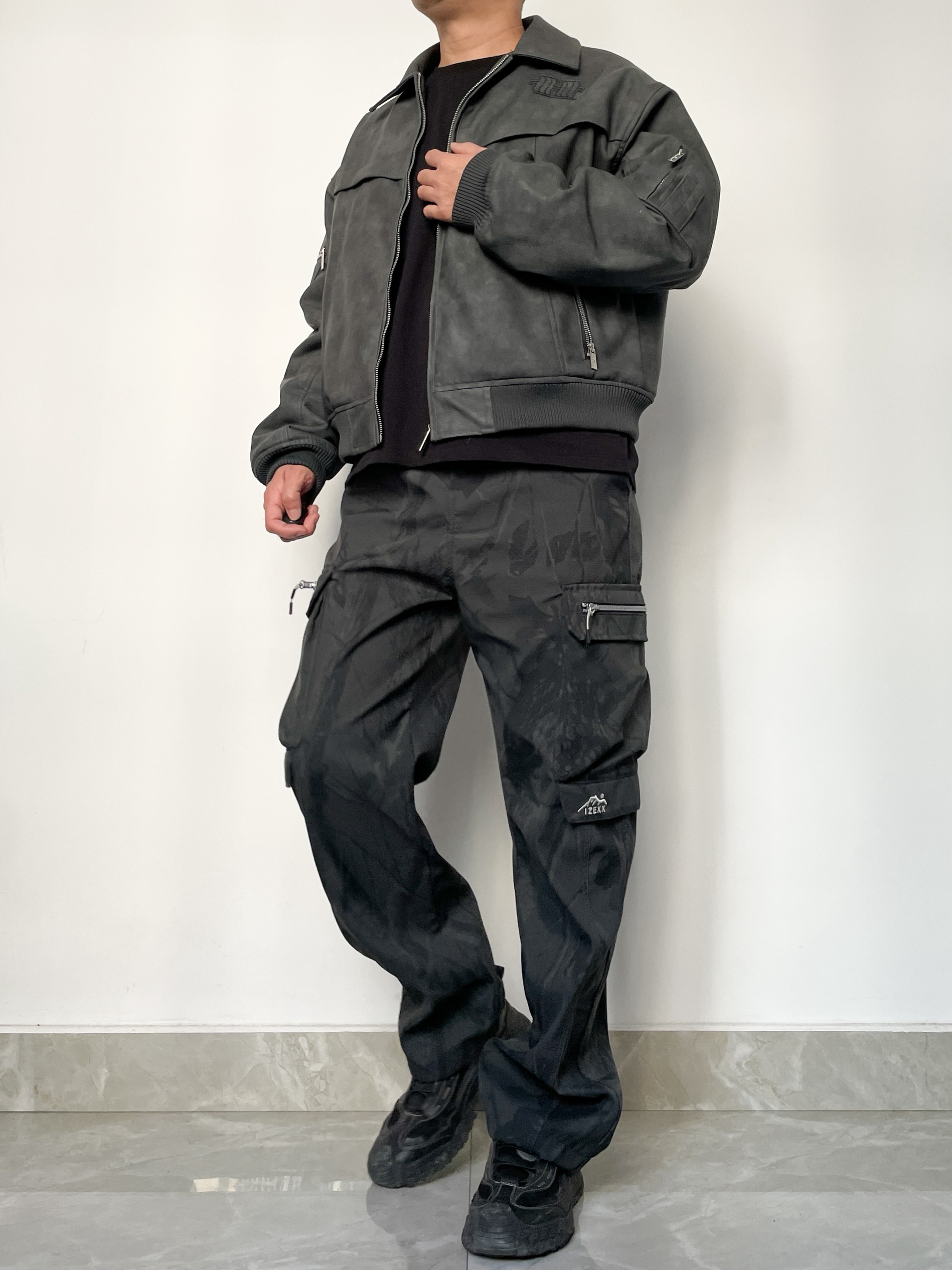 💥hi 宝子们好!💨今日分享:年度穿搭 秋冬就要穿出低调又有质感的酷! 今天上身一件做旧灰调飞行员夹克 内搭基础黑T,极简又能凸显外套的质感! 裤子搭配同色系做旧迷彩工装裤 宽松的版型和有肌理感的面料真的太加分! 口袋的金属拉链和小标设计细节拉满,美式硬核风直接拉满 这套暗黑机能风穿搭很适合日常出街或者和朋友逛潮店穿!