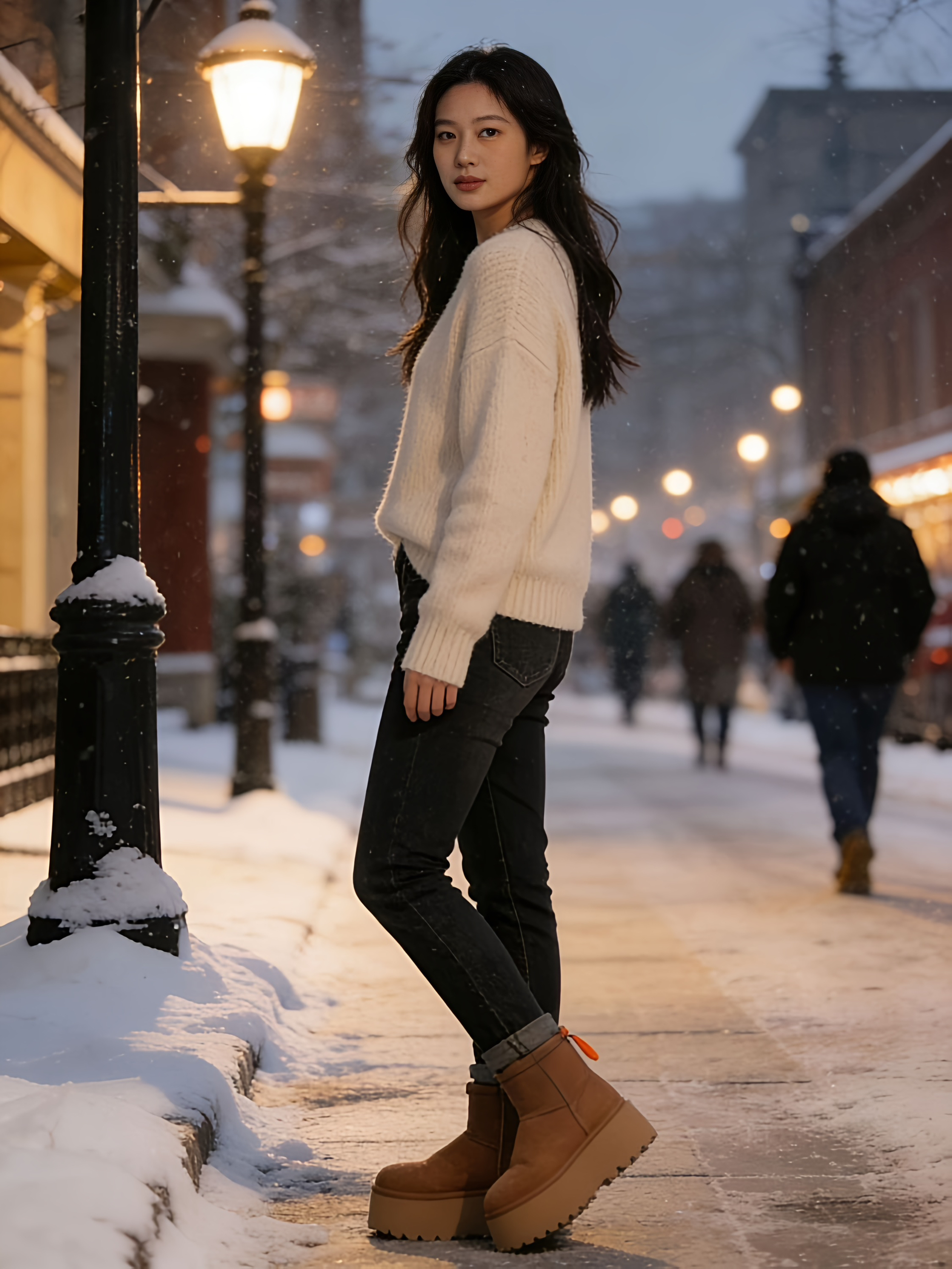 早上套上就能出门,套筒款不用系鞋带超省事,厚底踩上去软软的还显腿长!棕色巨百搭,我担心的防水问题也解决了,下雪天穿完全不担心湿脚,爱了!