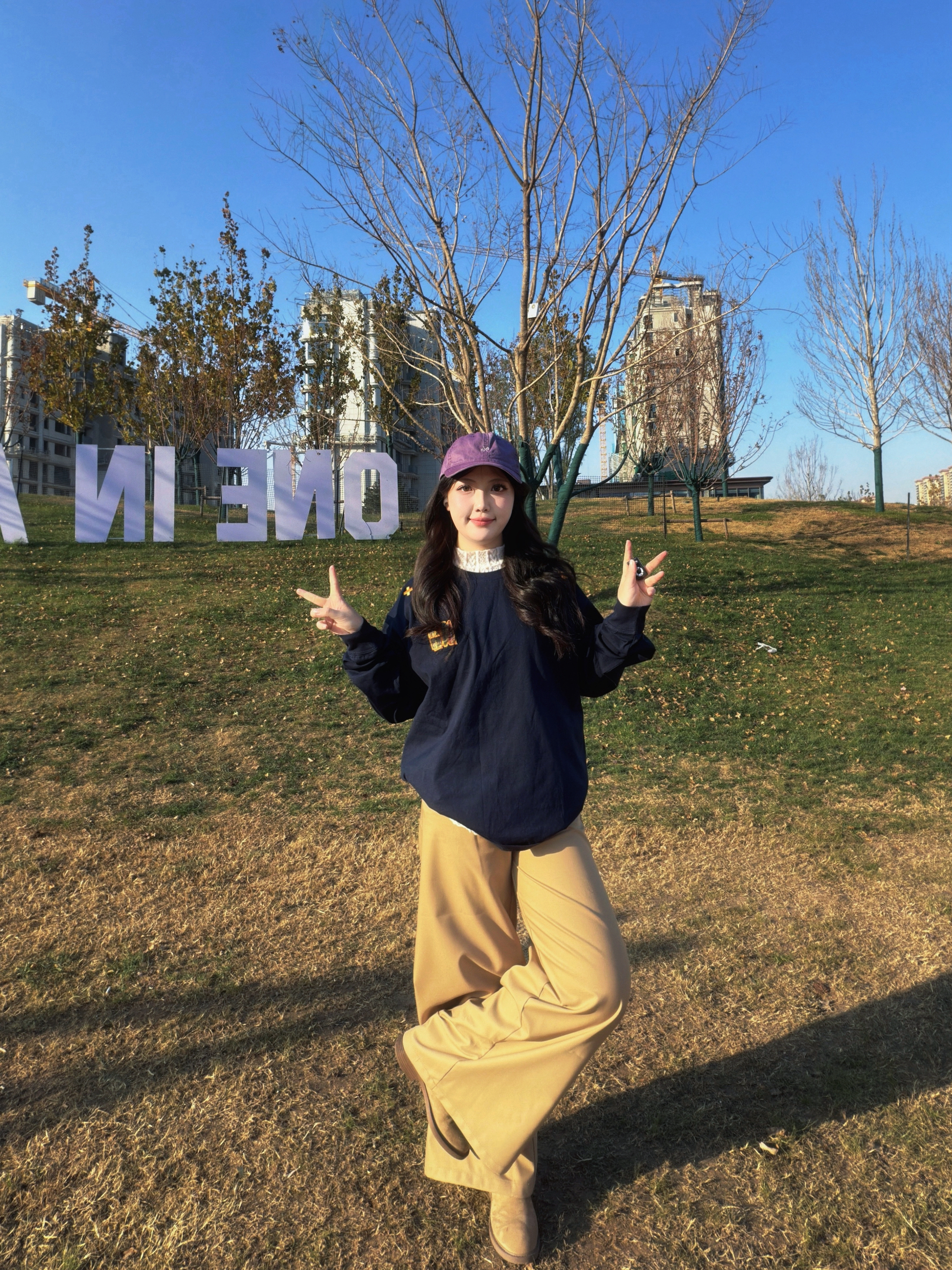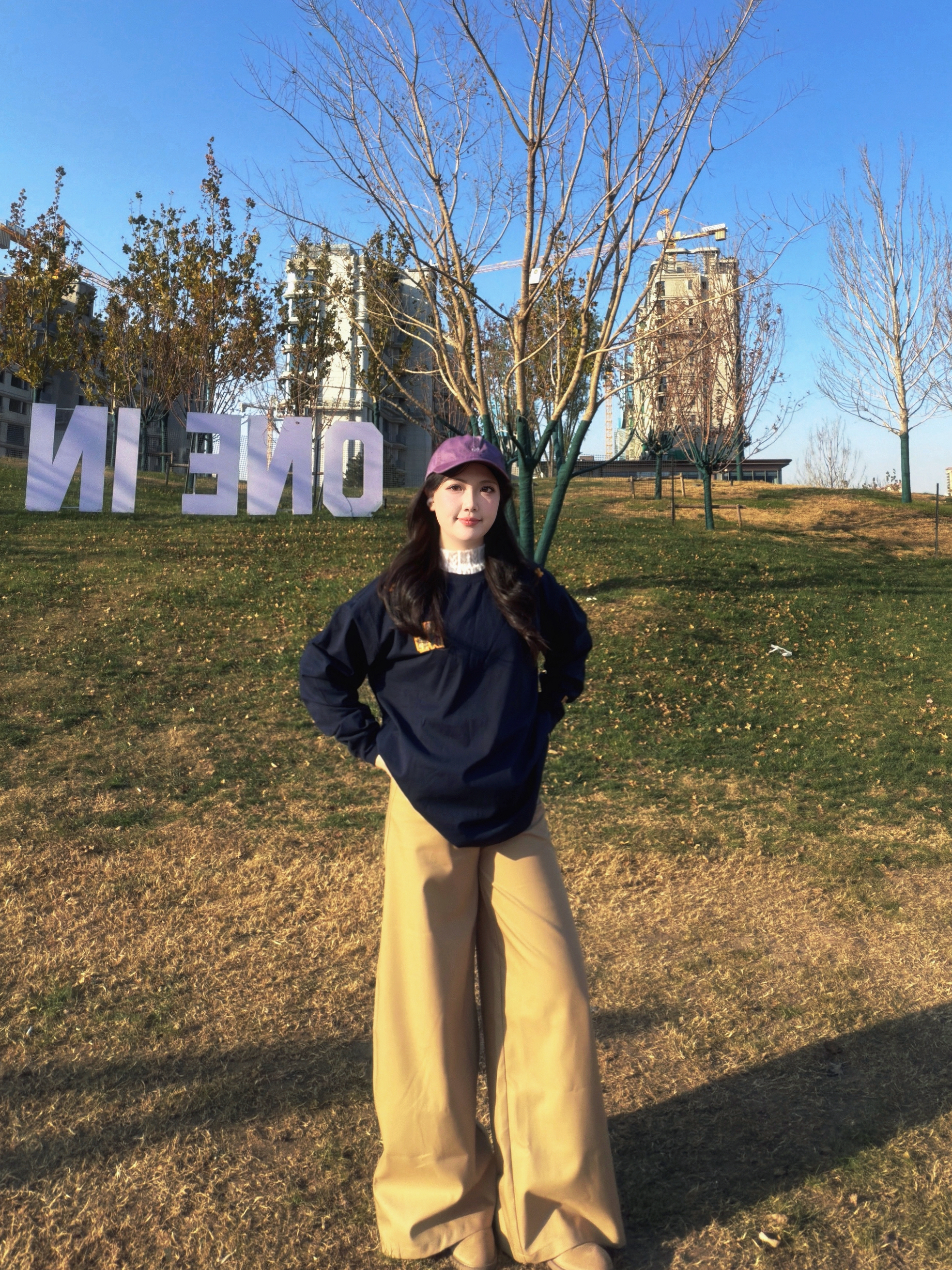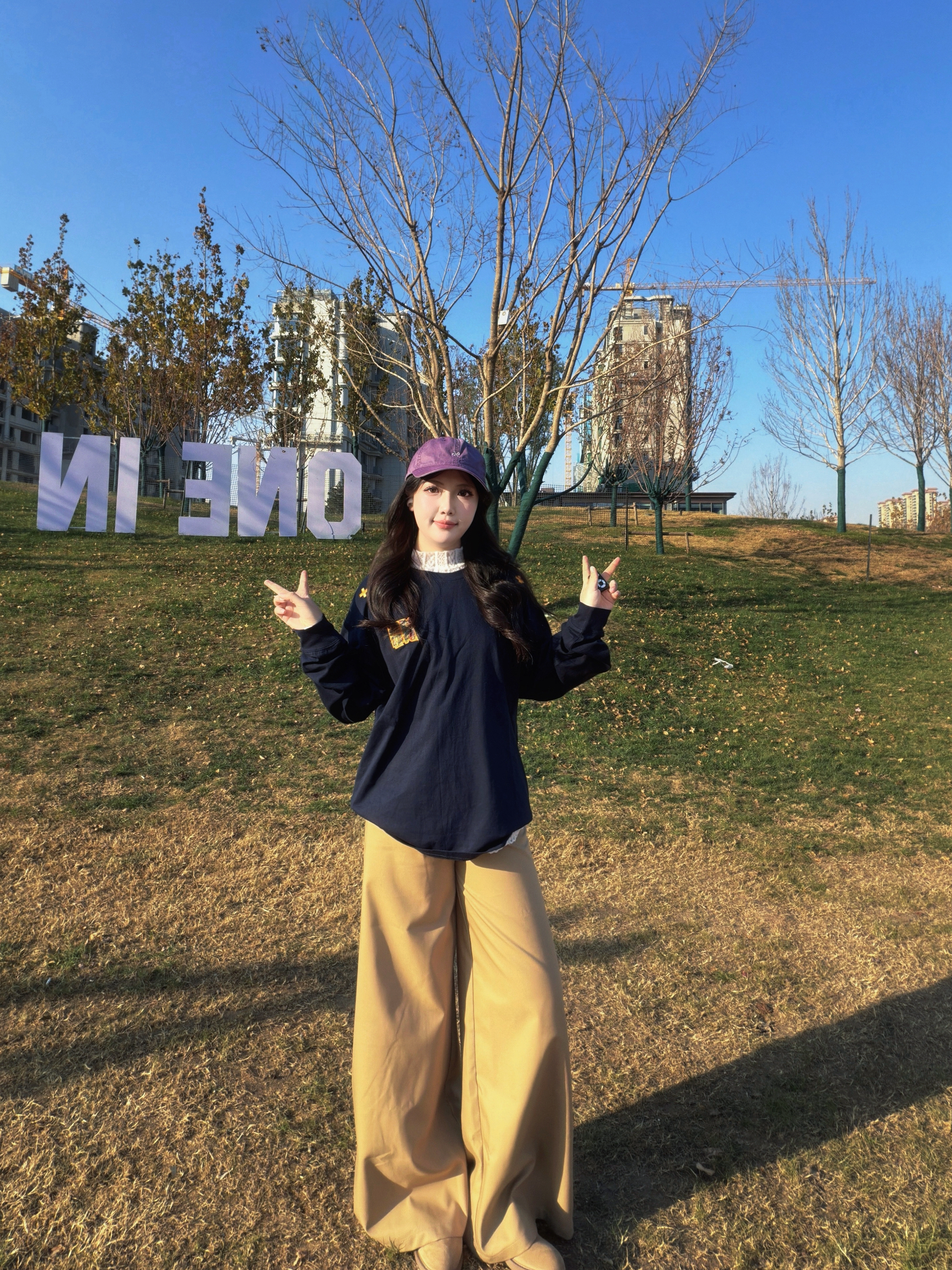 挖到超爱的日常穿搭组合啦~٩(˃̶͈̀௰˂̶͈́)و 藏青色宽松长袖上衣软乎乎的,棉质面料亲肤又透气,oversize版型藏肉又有街头范儿,随便搭都不踩雷☁️。 卡其色阔腿裤的垂坠感绝了,高腰设计拉高腰线,裤腿的宽松度刚好修饰腿型,走路自带慵懒气场~(๑˃̵ᴗ˂̵)و 搭配一顶紫色棒球帽做点缀,瞬间让基础配色多了点小亮点✨,不管是出门逛街还是户外打卡,这套穿搭都能把松弛感拉满,舒适度和时尚感双在线...