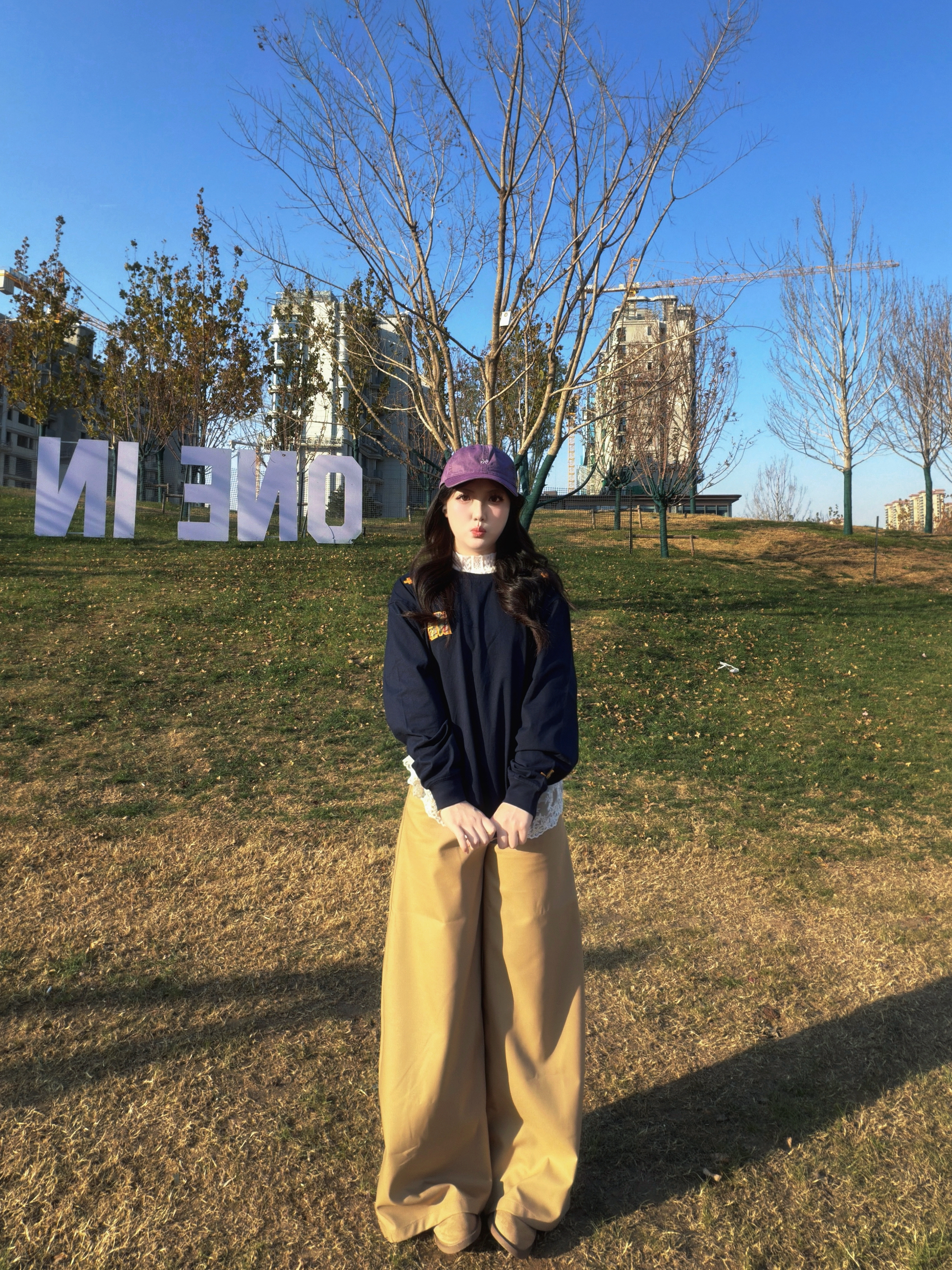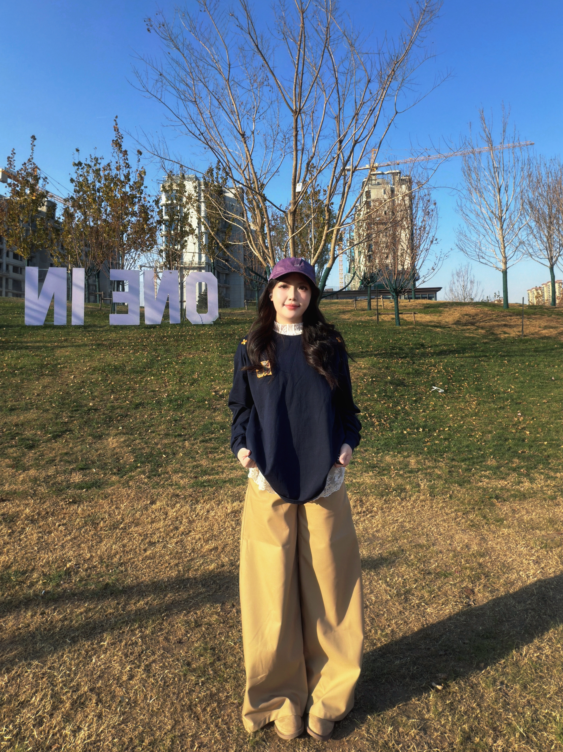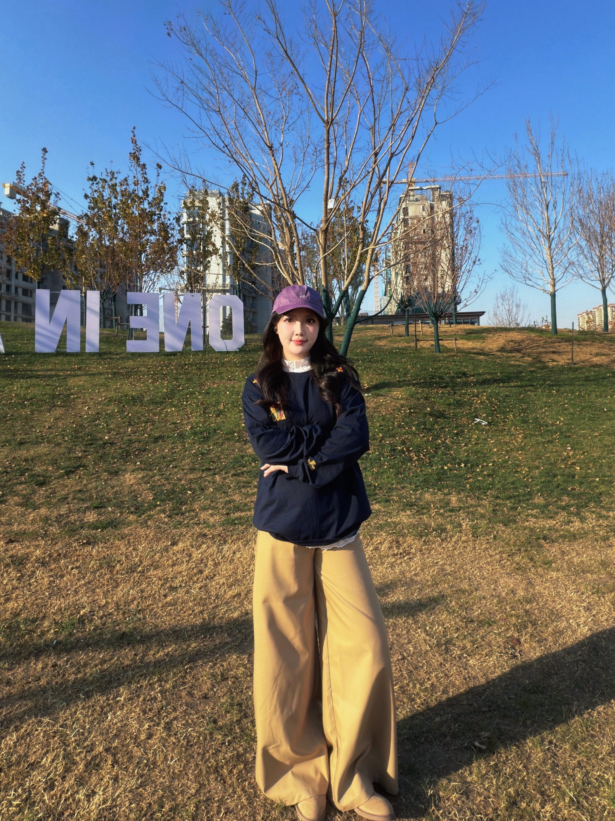 挖到超爱的日常穿搭组合啦~٩(˃̶͈̀௰˂̶͈́)و 藏青色宽松长袖上衣软乎乎的,棉质面料亲肤又透气,oversize版型藏肉又有街头范儿,随便搭都不踩雷☁️。 卡其色阔腿裤的垂坠感绝了,高腰设计拉高腰线,裤腿的宽松度刚好修饰腿型,走路自带慵懒气场~(๑˃̵ᴗ˂̵)و 搭配一顶紫色棒球帽做点缀,瞬间让基础配色多了点小亮点✨,不管是出门逛街还是户外打卡,这套穿搭都能把松弛感拉满,舒适度和时尚感双在线...