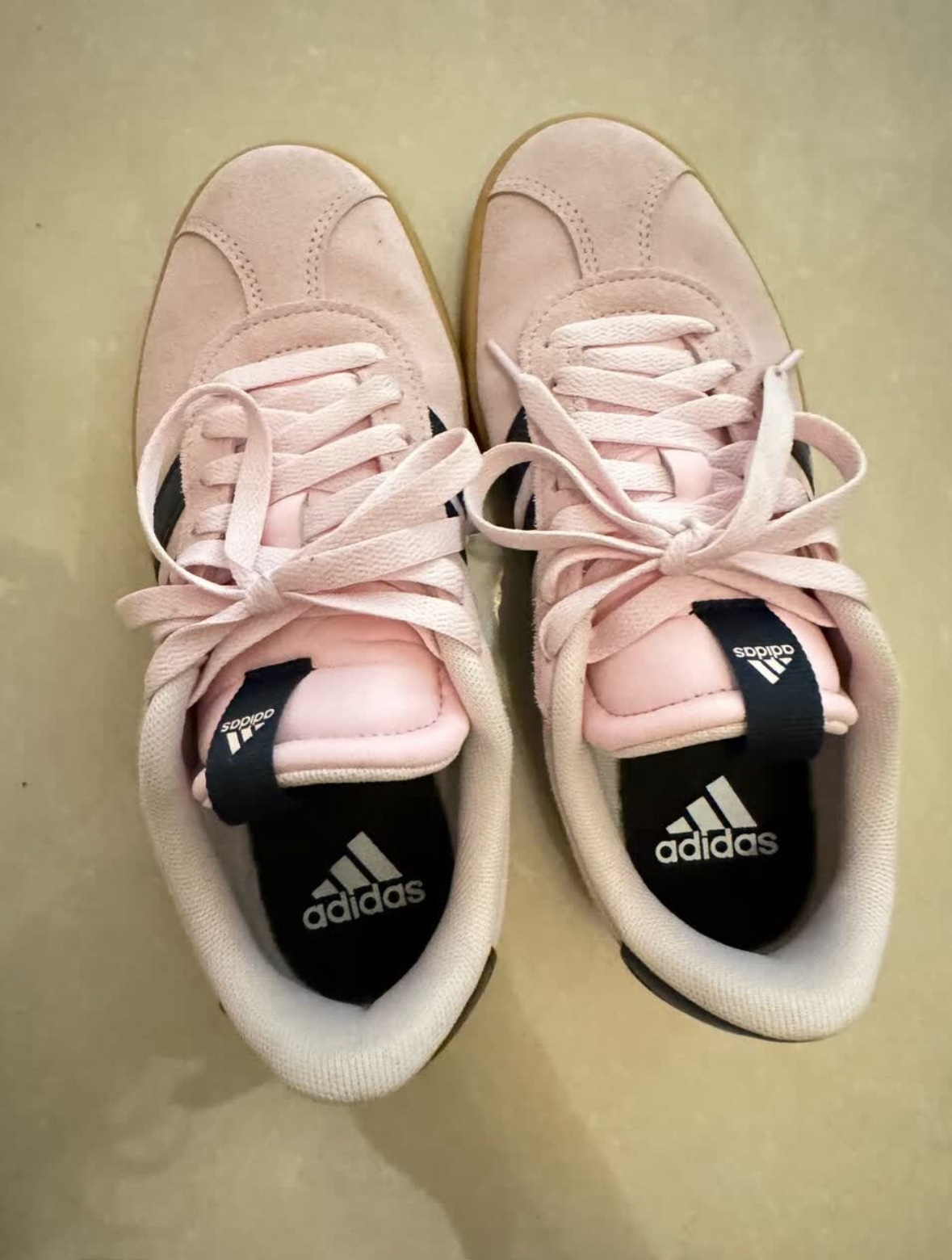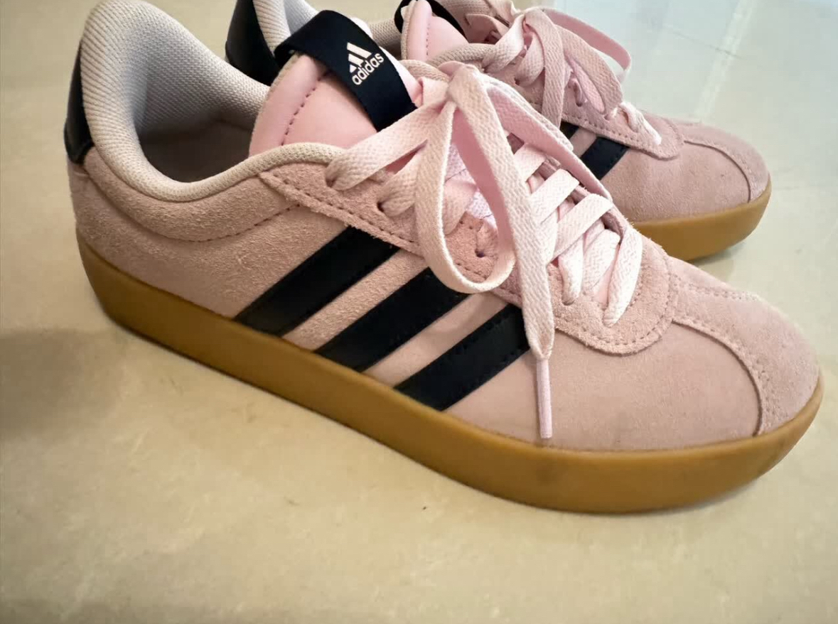 无意间在网上刷到的这双鞋子,感觉不错,立刻下单了 给女朋友挑的这双阿迪粉色板鞋选太对了!💕 麂皮的樱花粉鞋面嫩乎乎的,藏蓝三道杠中和了甜腻感,生胶大底还自带复古调调,她搭格子裤、小裙子都超好看。重点是脚感还不错,软乎乎的不磨脚 能让女朋友喜欢的礼物,很值了✨