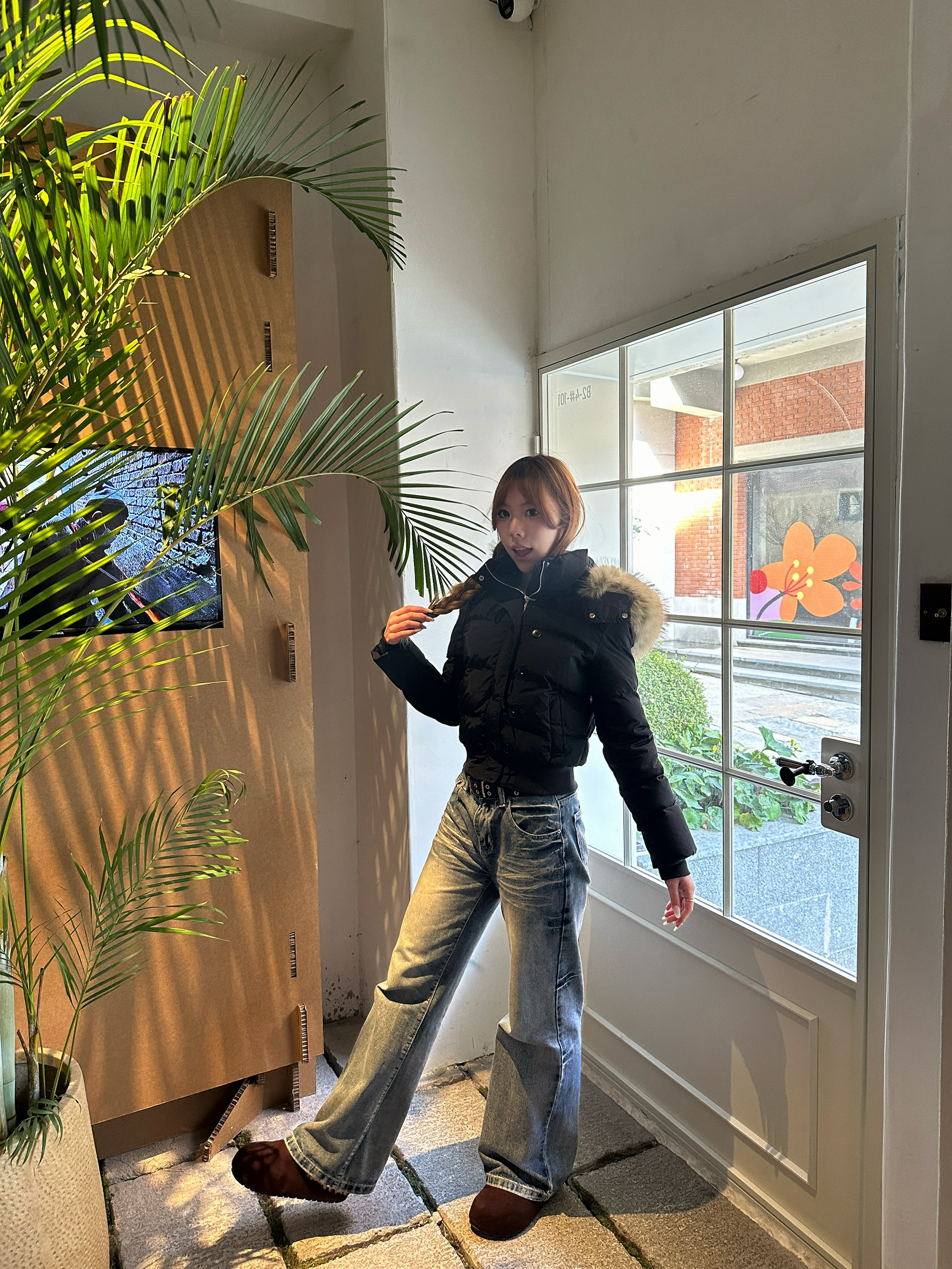 这件羽绒服设计很收腰显得我腰好细呀~ 上身也很舒服很暖和!! 非常修饰身材!!!!!