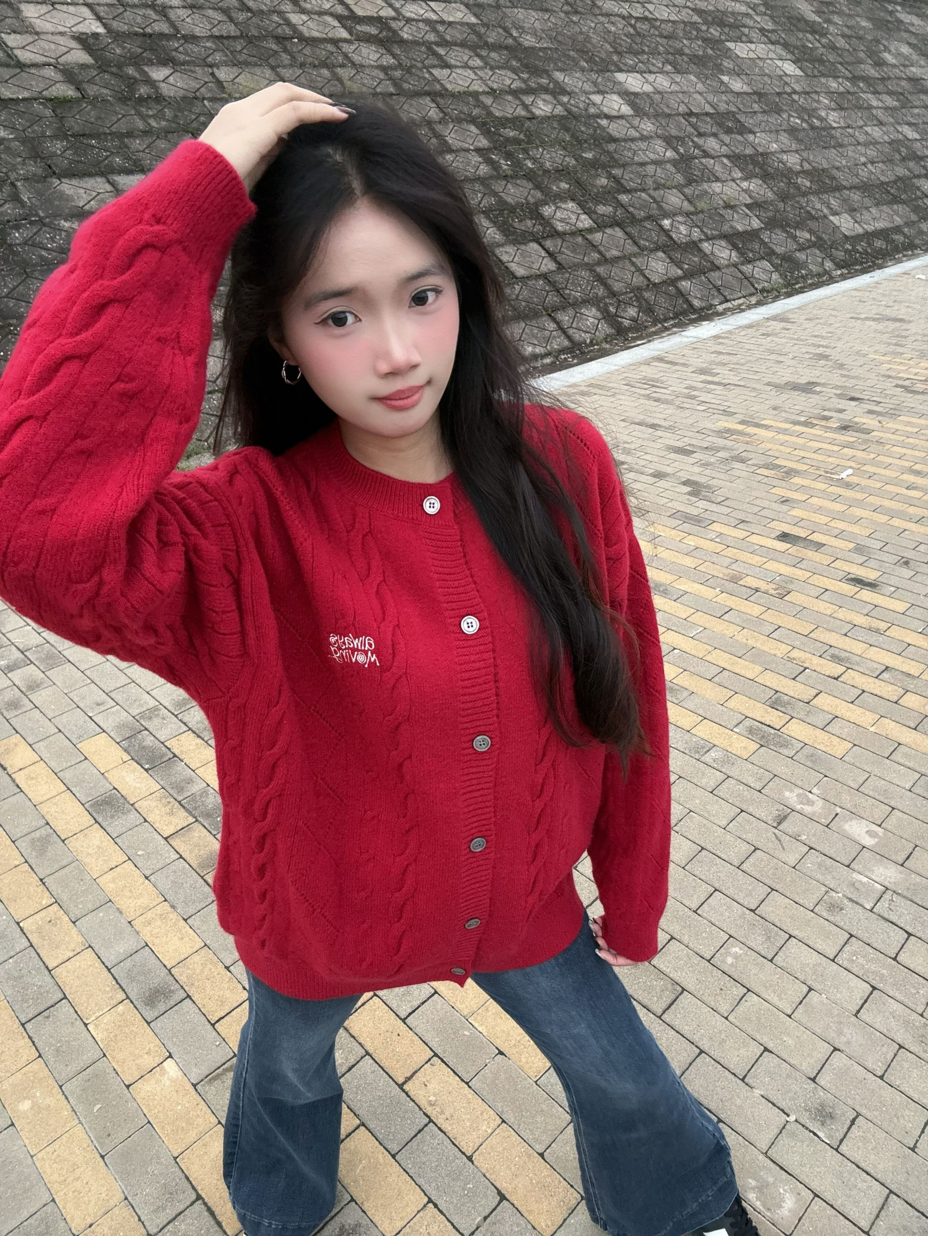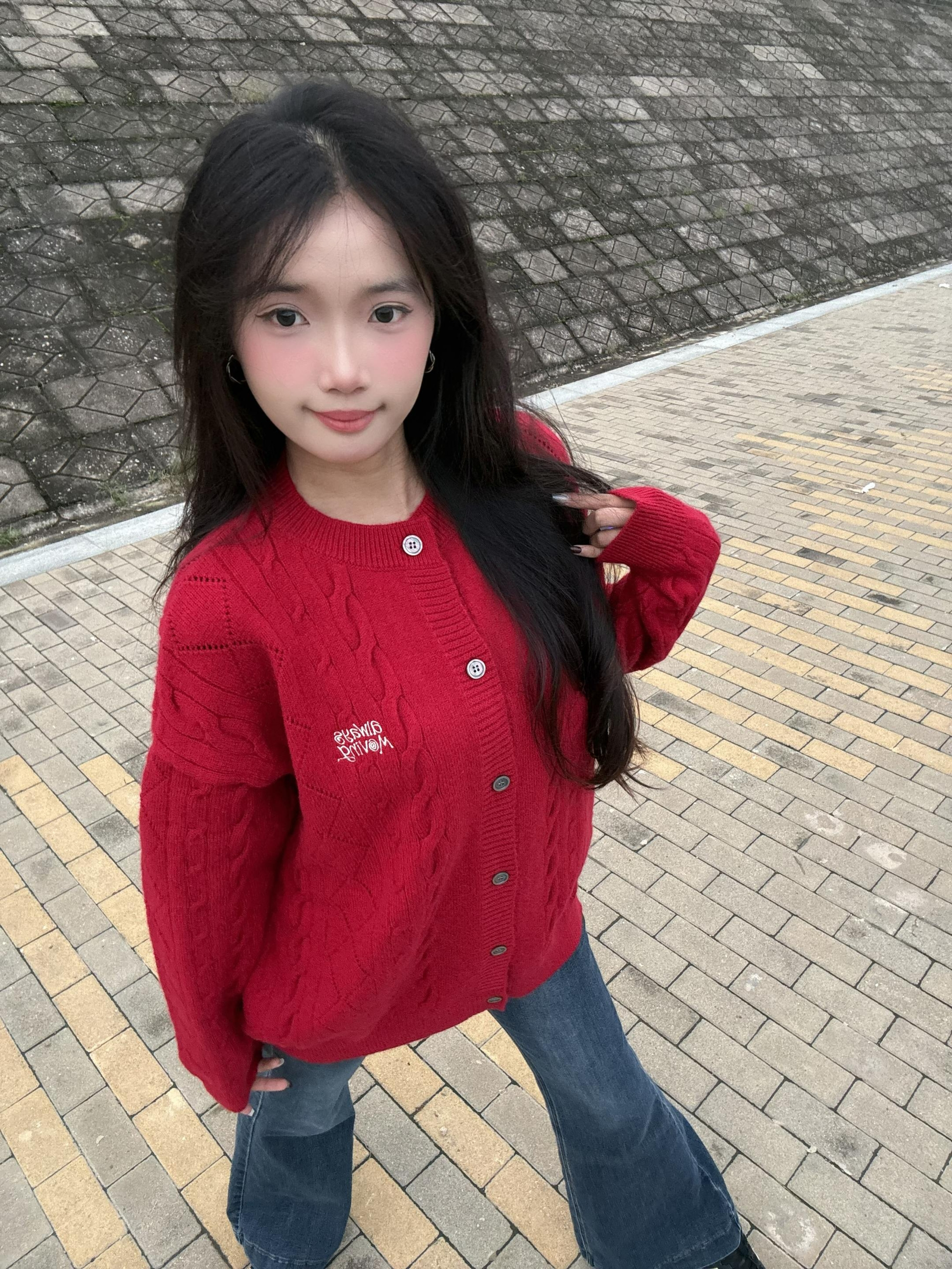 出门不知道穿什么 可以看看FPA 这款红色开衫毛衣 轻松解锁高级穿搭 这件开衫简直是简约风穿搭的宝藏单品 经典的绞花纹理 搭配利落的纽扣设计 简约中透着精致感 搭配微喇牛仔裤,随性又时髦 轻松打造出FPA简约风的高级感