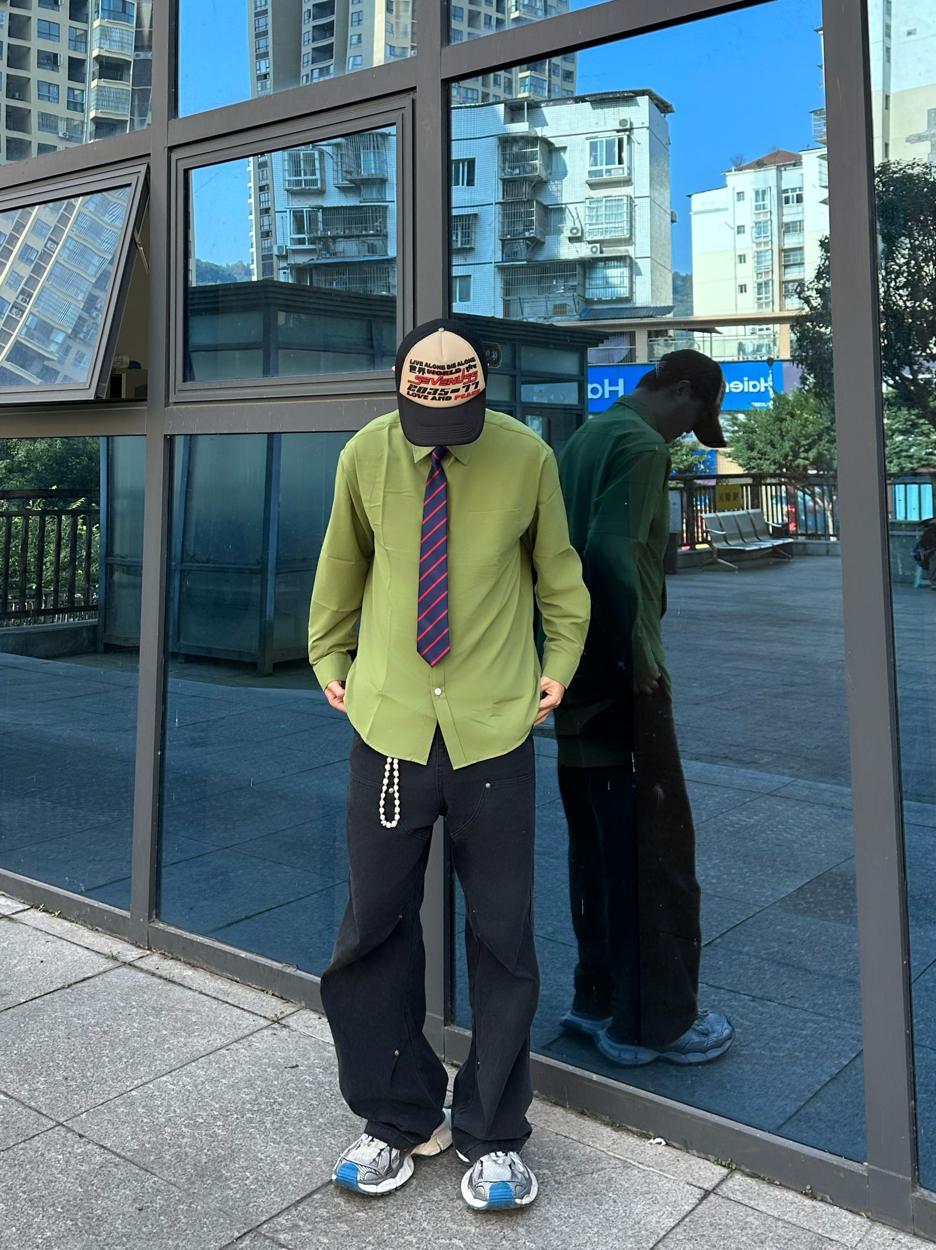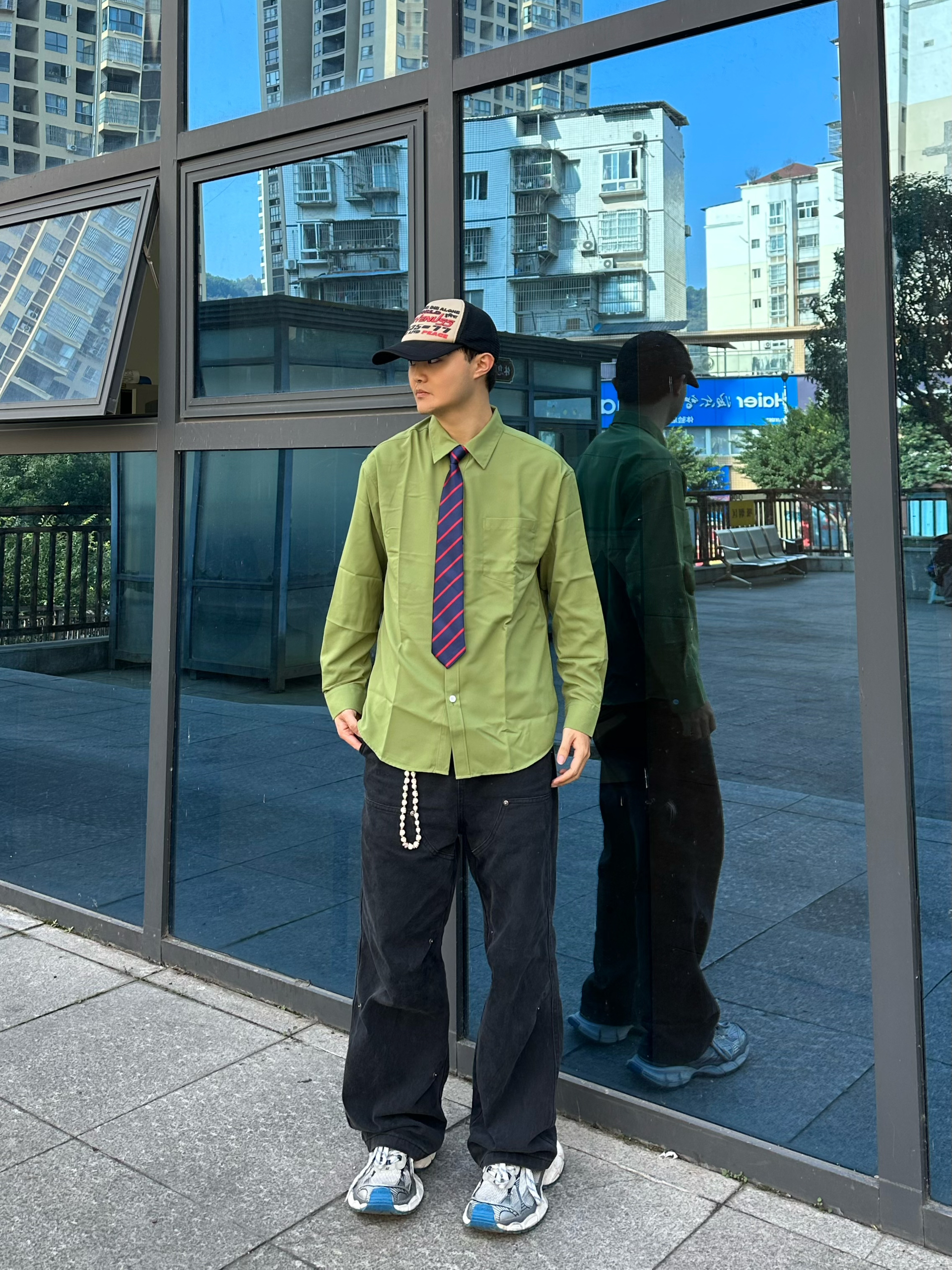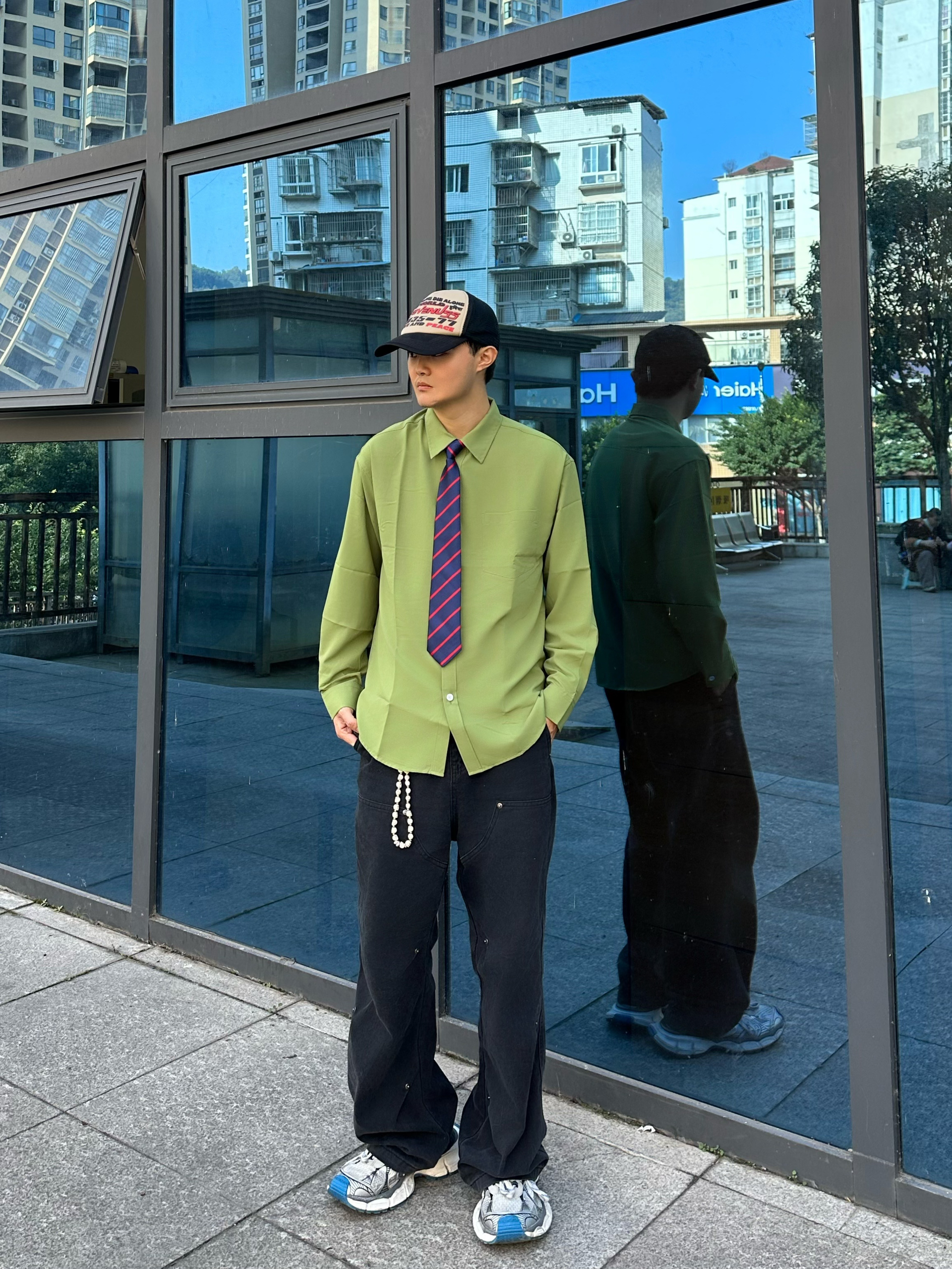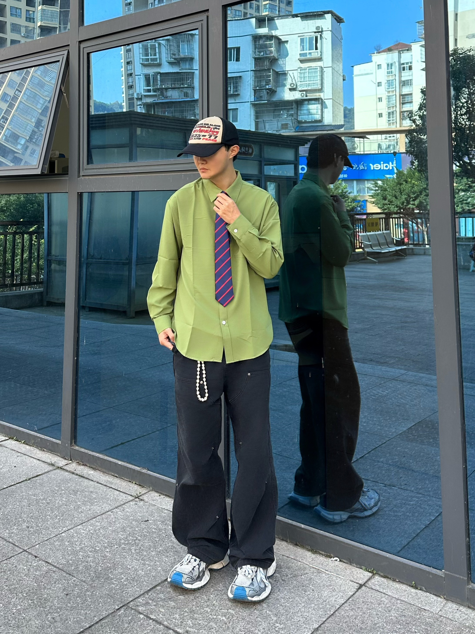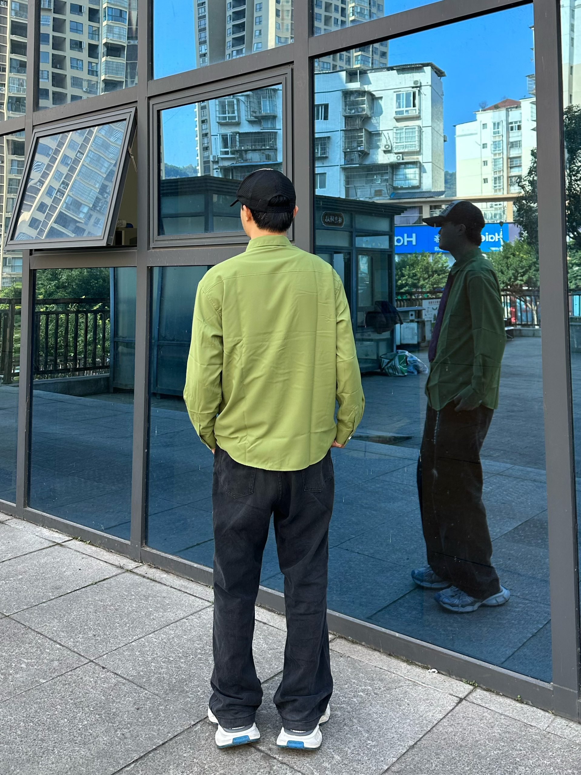 今天上身的是绿色衬衫,最近比较火的哦!没想到绿色也很好看,搭配了黑色休闲裤,版型可以,搭配起来也蛮好看呢,今天这套ootd感觉如何呢