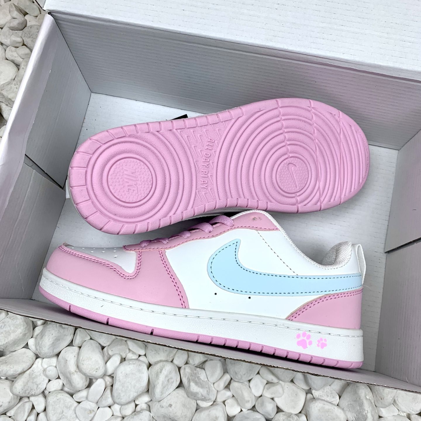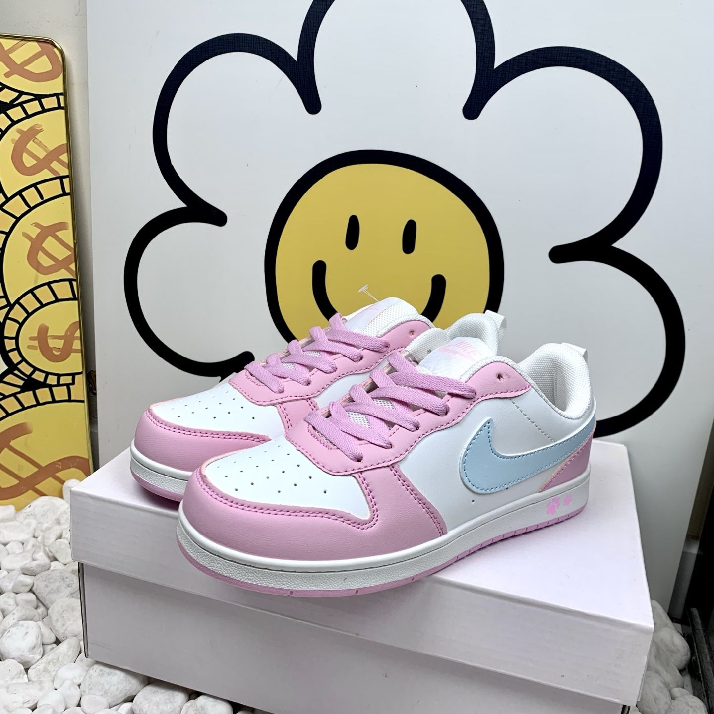 谁能拒绝这双甜度爆表的Nike粉蓝板鞋啊!刚拆箱就被颜值惊艳到,真人上脚后直接锁死,少女心爆棚还巨百搭~ 整体是樱花粉撞奶白色的鞋身,搭配天蓝色的Swoosh勾,马卡龙配色温柔又清新,黄皮穿也超显白。鞋侧还藏着粉色小爪印刺绣,细节萌到心坎里,甜妹属性直接拉满,搭小裙子、牛仔裤都超适配。 鞋面是软弹的皮质,摸起来质感超棒,穿久了也不磨脚。鞋底是橡胶材质,踩上去软软的有回弹,日常逛街、上学暴走...