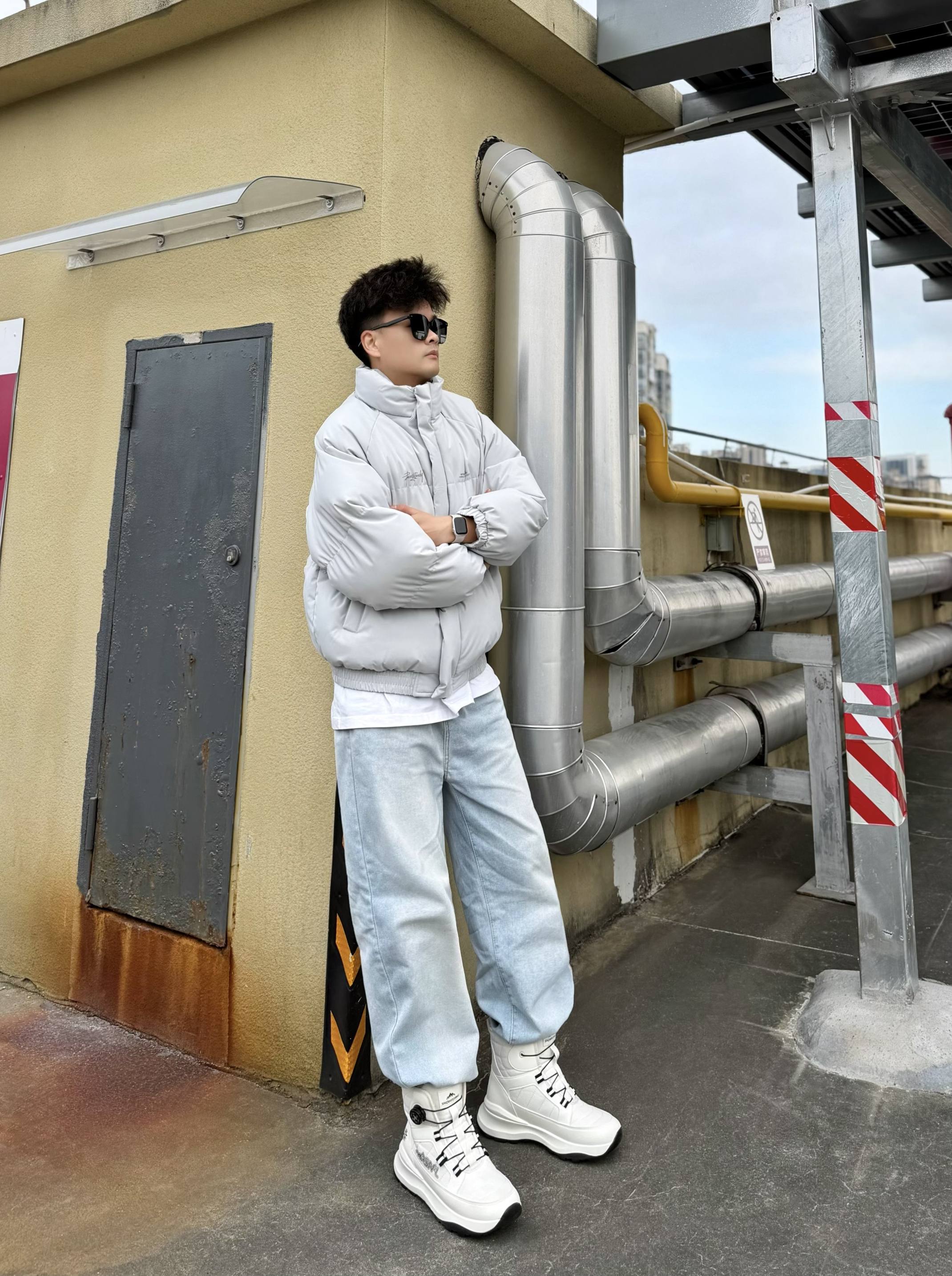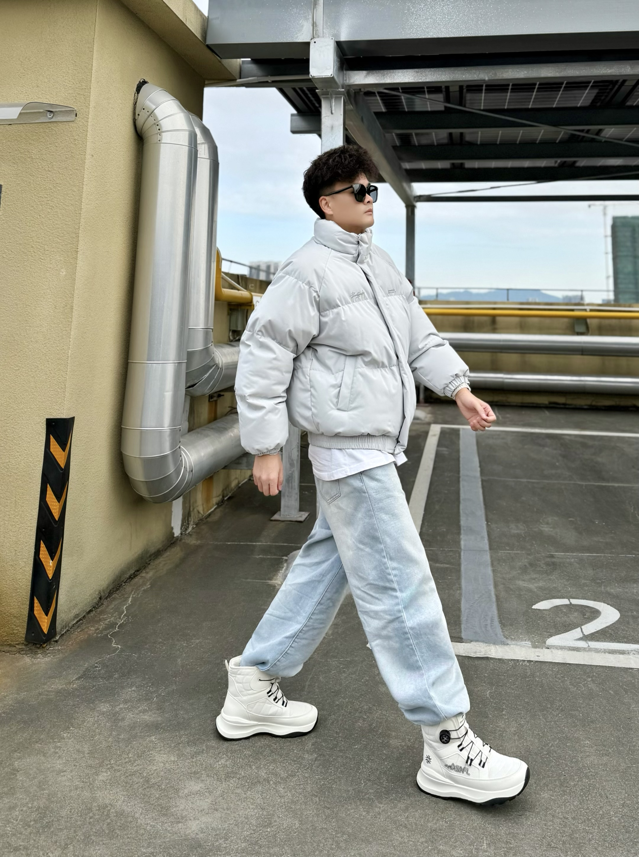 hey,这里是阿b仔 哥们,听我的❗冬季就这么穿.. 🧥上身灰色羽绒服+👖下身浅蓝色牛仔裤 👔用一件白色打底,营造出层次感 🥾搭配白色雪地靴,百搭不出错 上脚舒服又好看,加绒内里暖暖嘟 脚感我也挺喜欢,我是44脚这双穿44码刚好okk 💡怎么样?这么一套休闲风穿搭喜欢吗? 我觉得冬季出街or通勤穿都冇问题,get! 🧽清洁建议,鞋面用“球鞋泡沫清洁剂+球鞋软毛刷” 中底and鞋底用“球鞋泡沫...