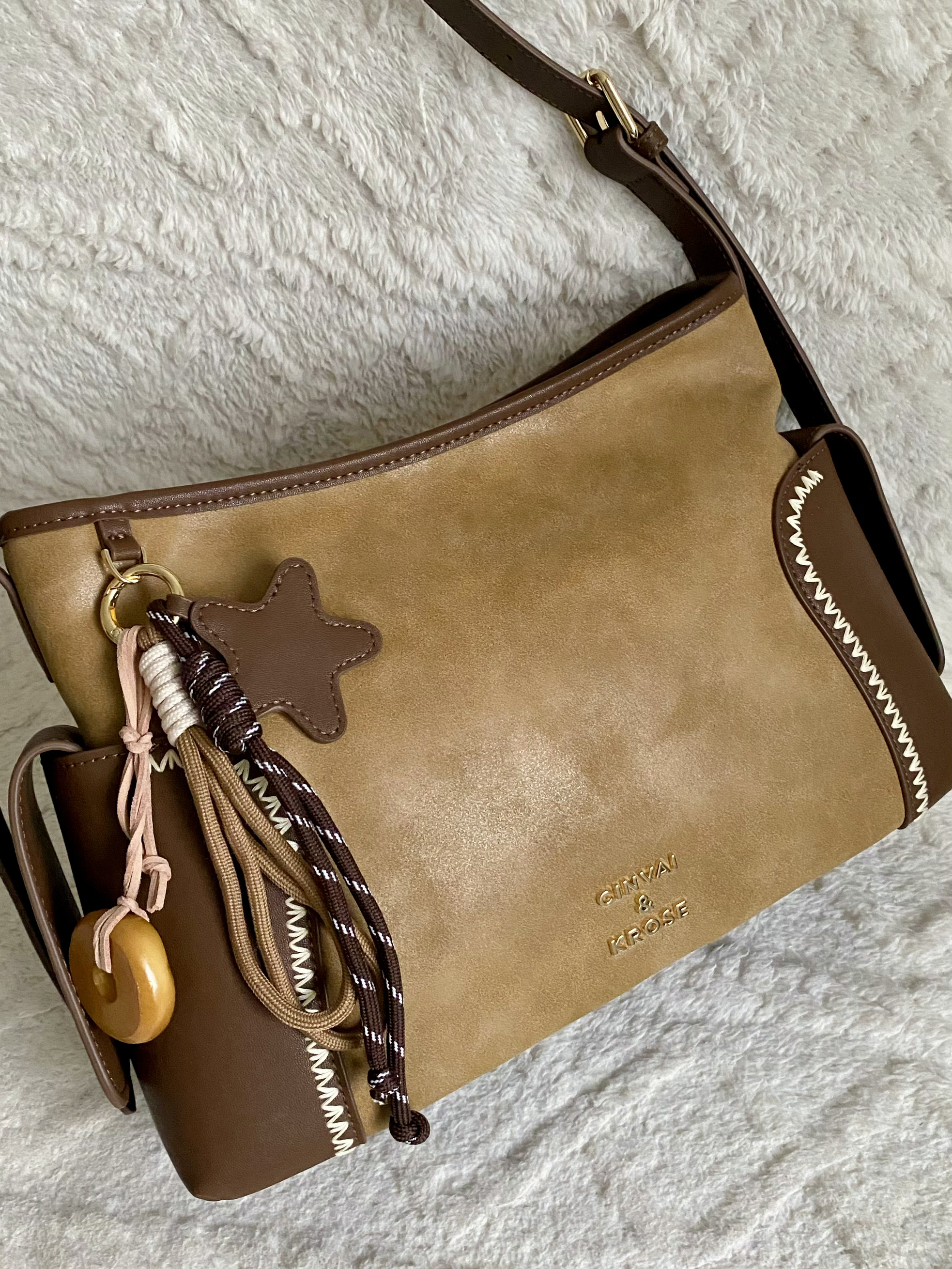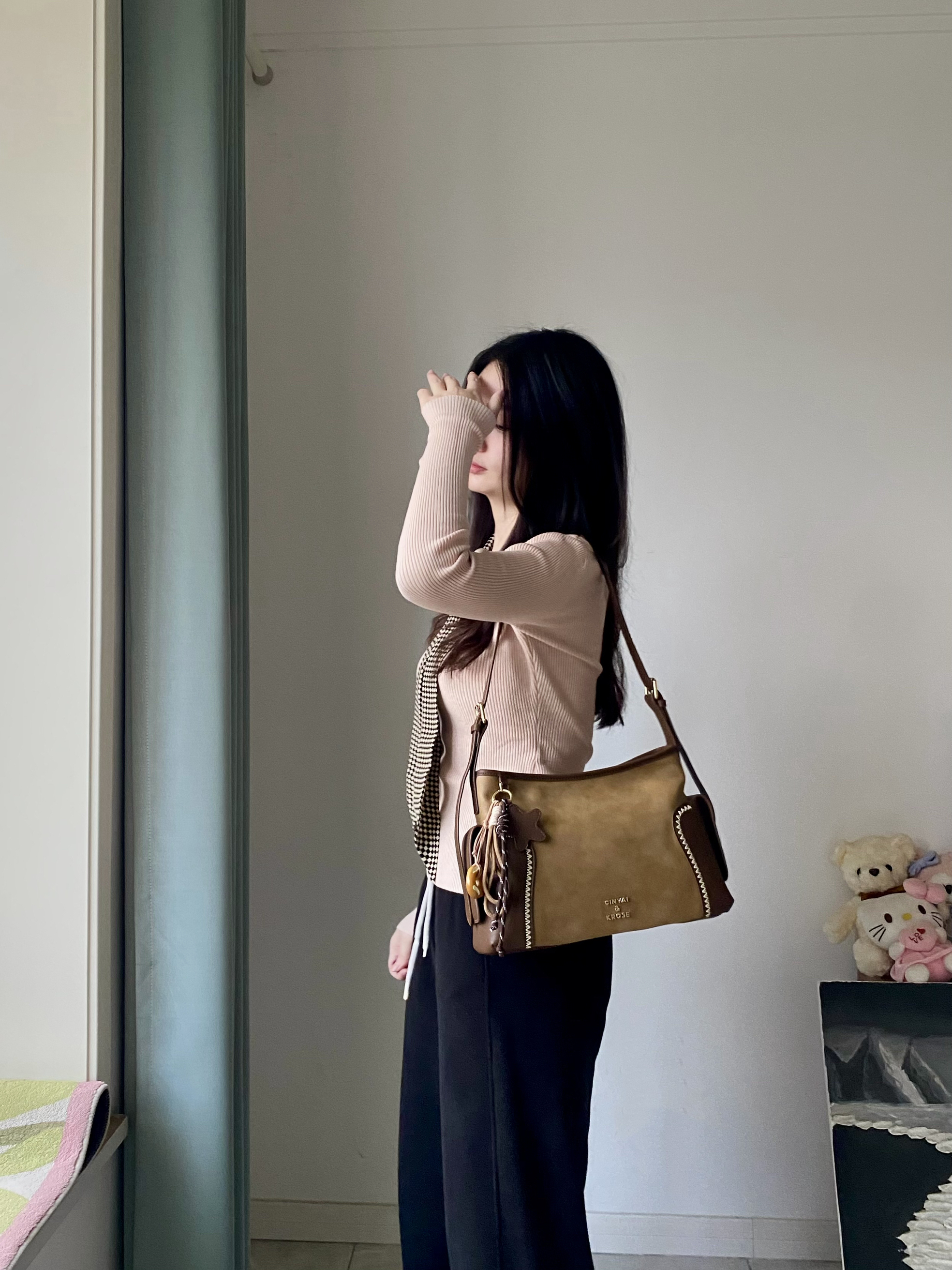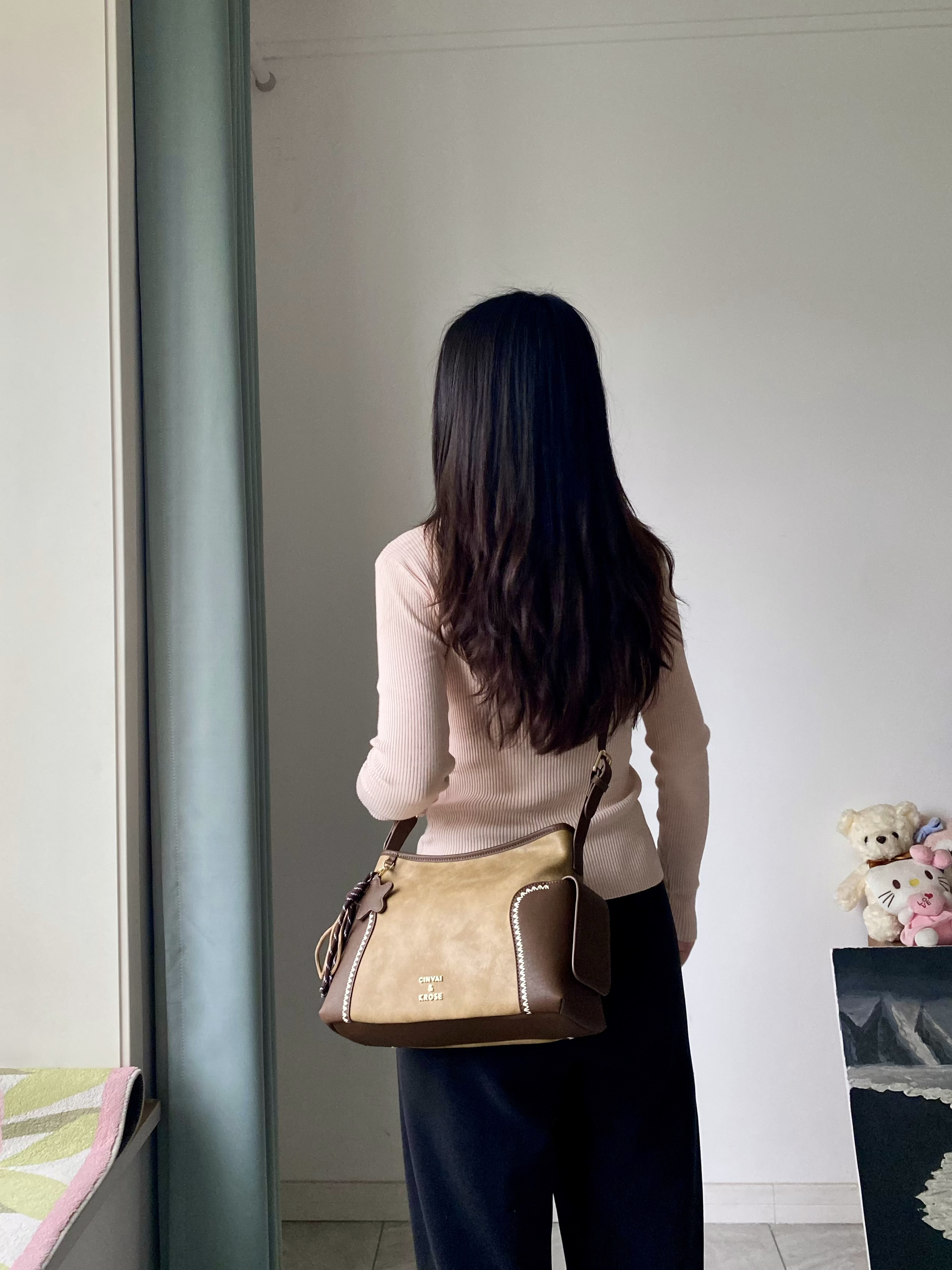 尊滴是被这个包包狠狠拿捏住了 咖啡色棕色的撞色设计,也泰适合秋冬了,复古氛围感拉满 肩带是可调节的,单肩斜挎手拎都很好看,关键是容量很大,平板,充电宝化妆品什么的都能轻松装下,对早八人也泰友好了, 随手一拎出门回头率敲高
