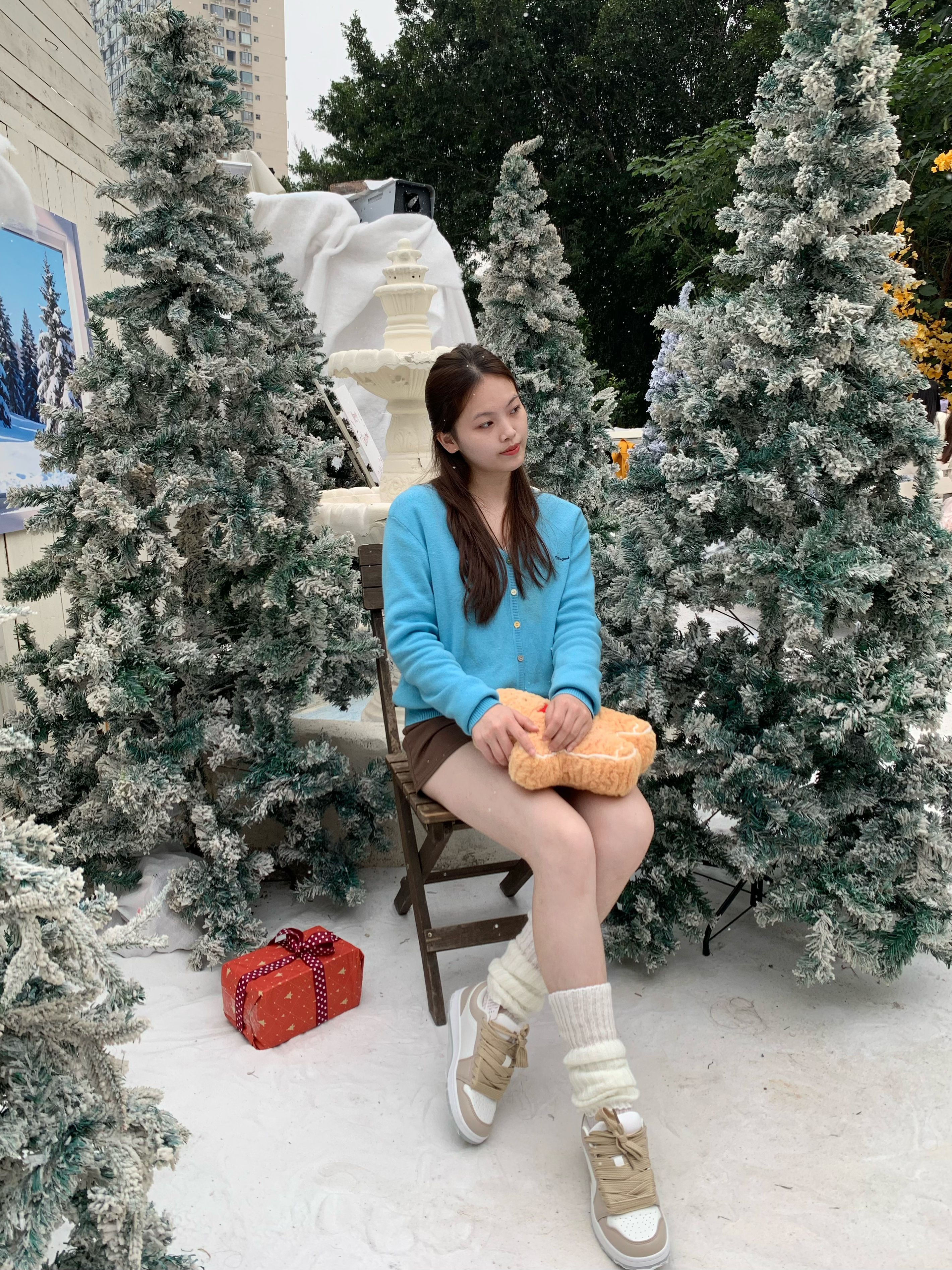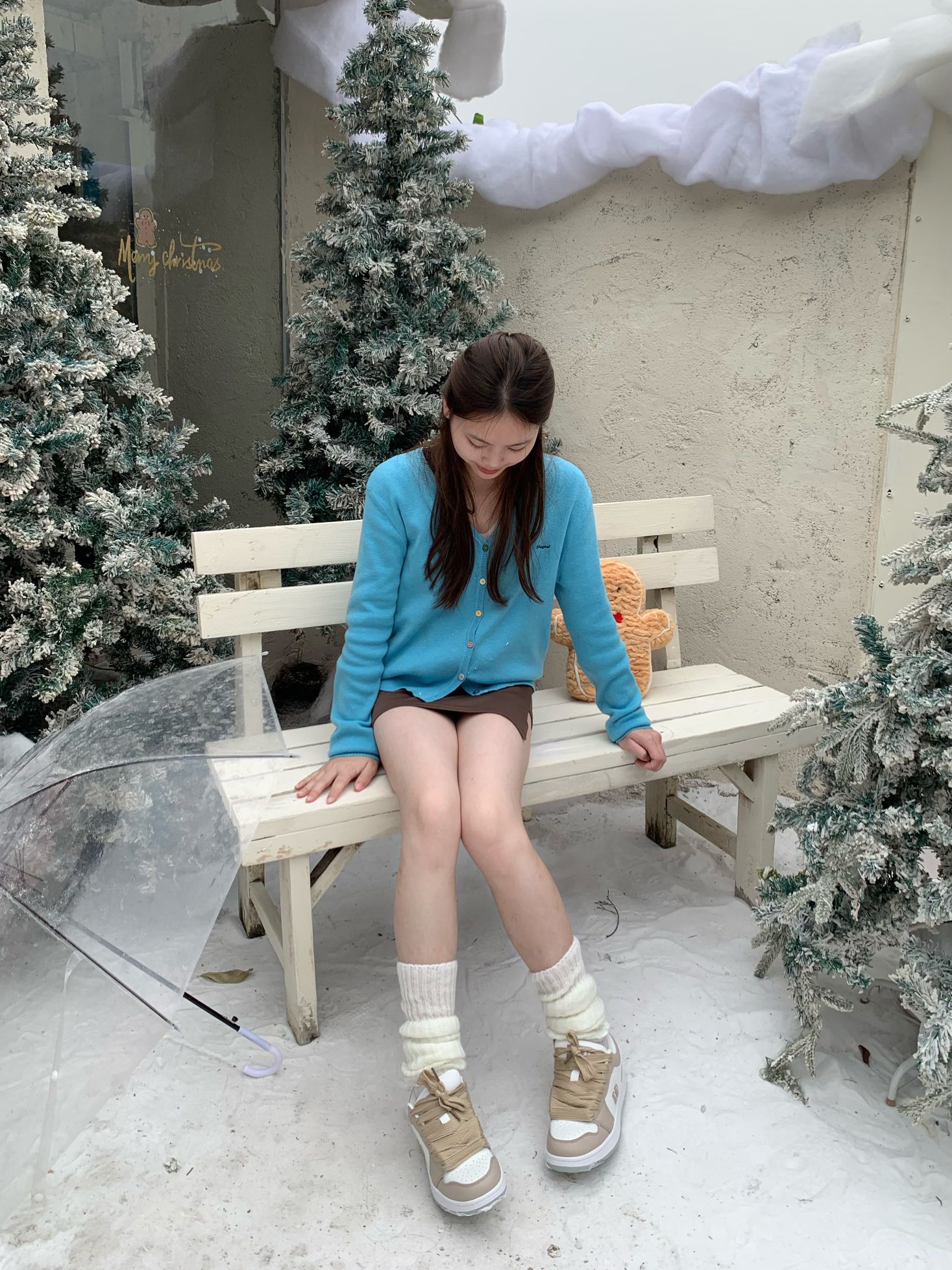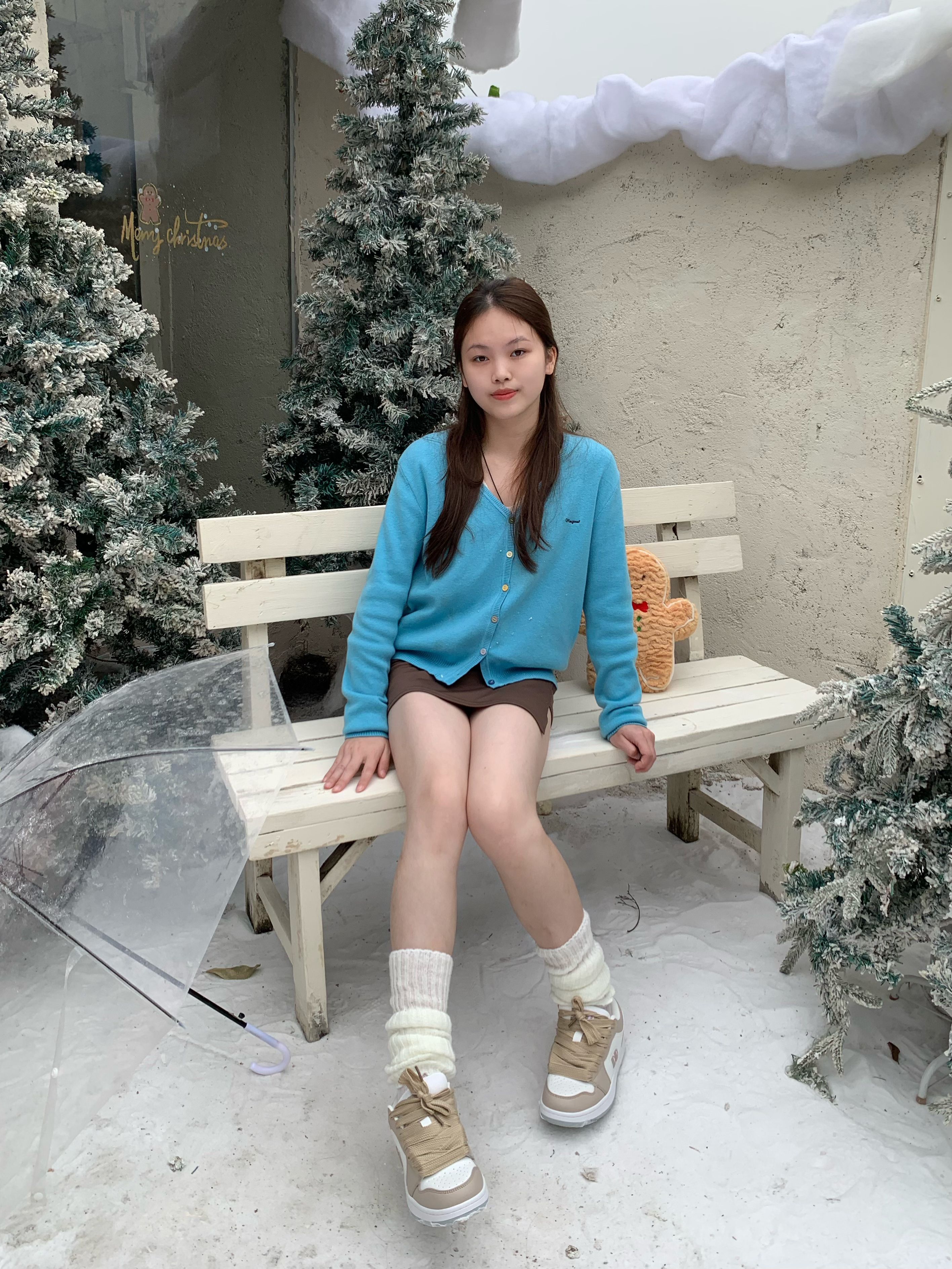亮蓝色针织衫一穿,在圣诞里直接亮眼出圈✨ 搭配堆堆袜和运动鞋,甜酷感拉满 露腿穿法又甜又辣,节日氛围直接焊在身上啦~