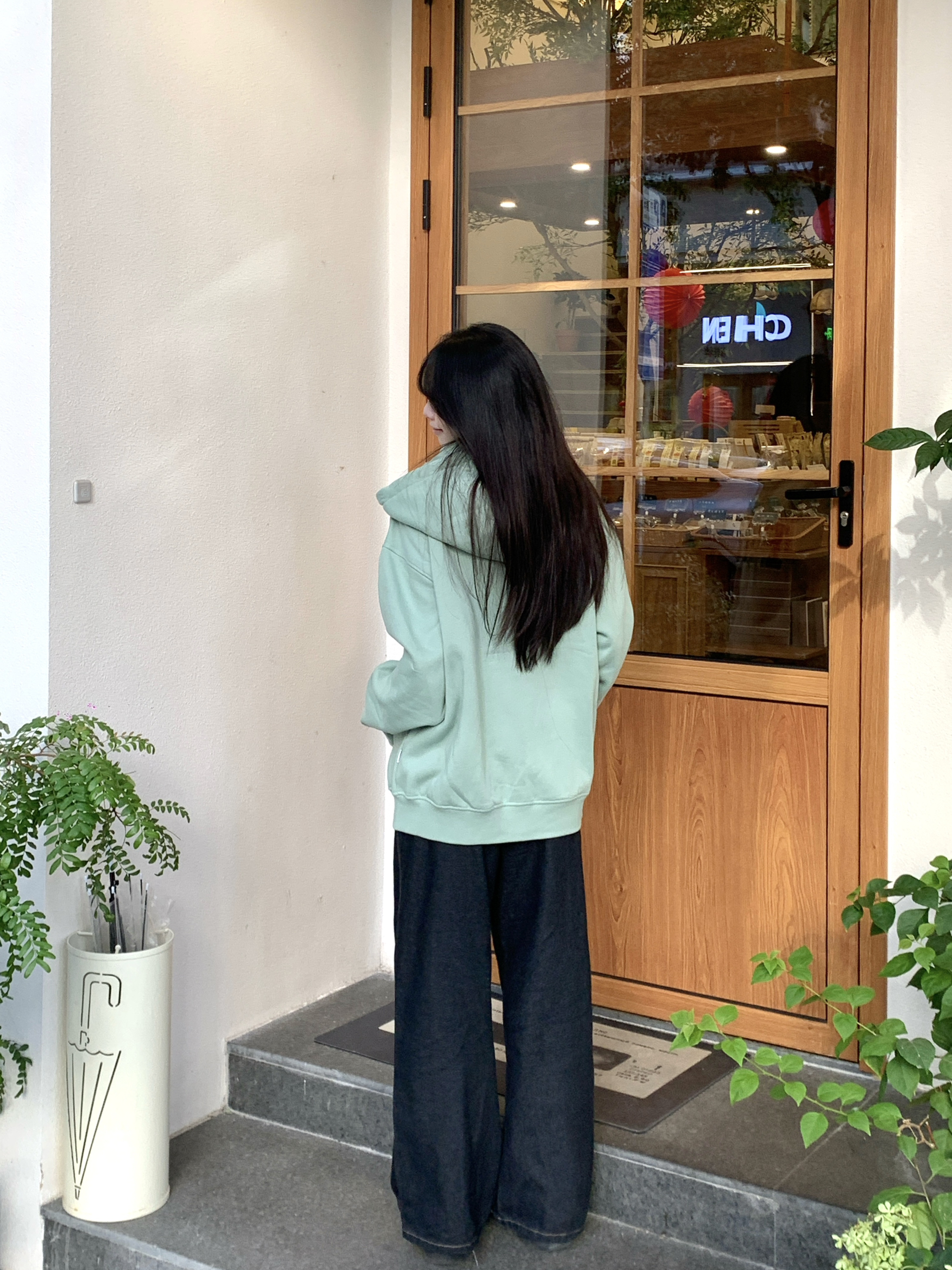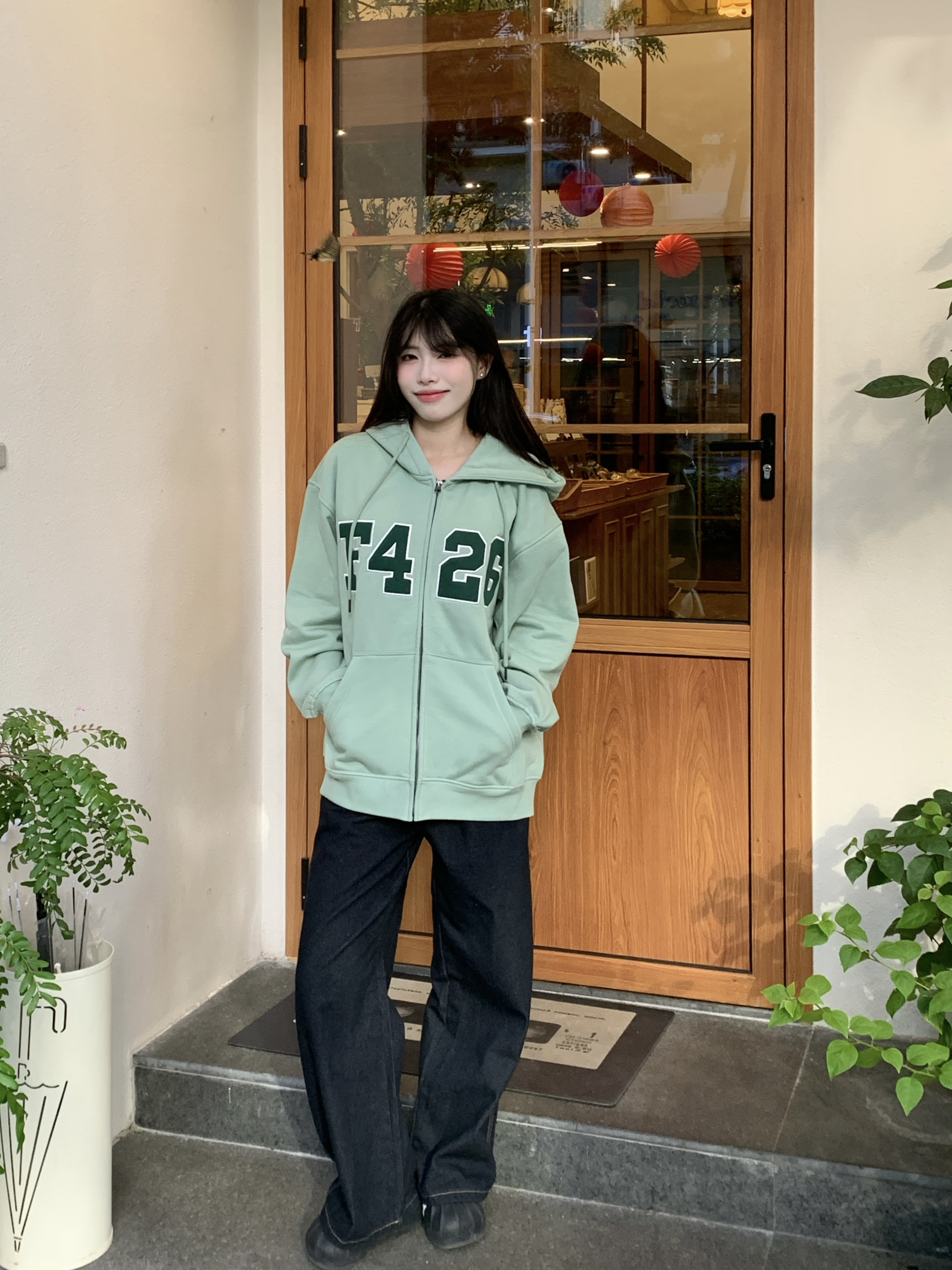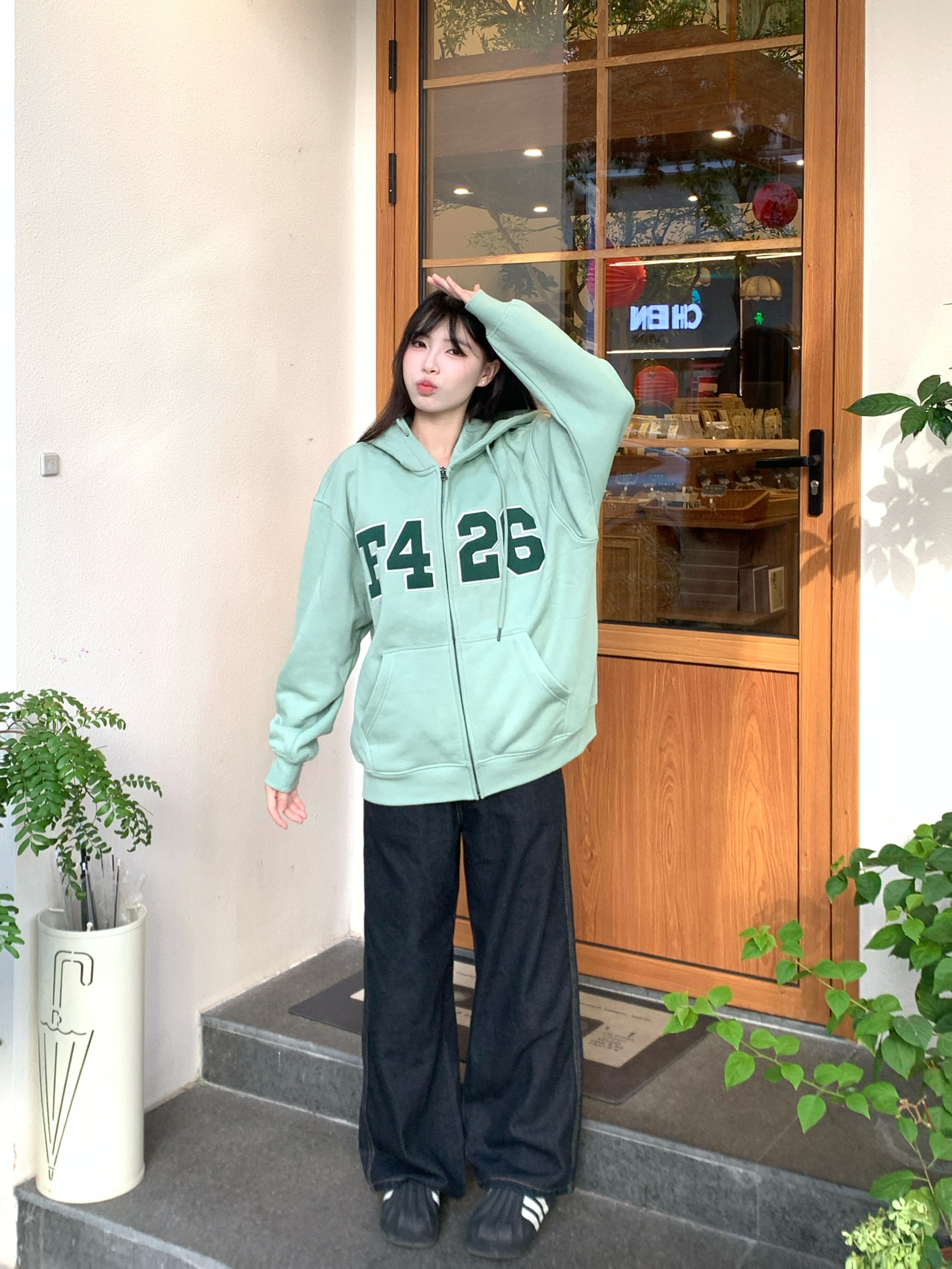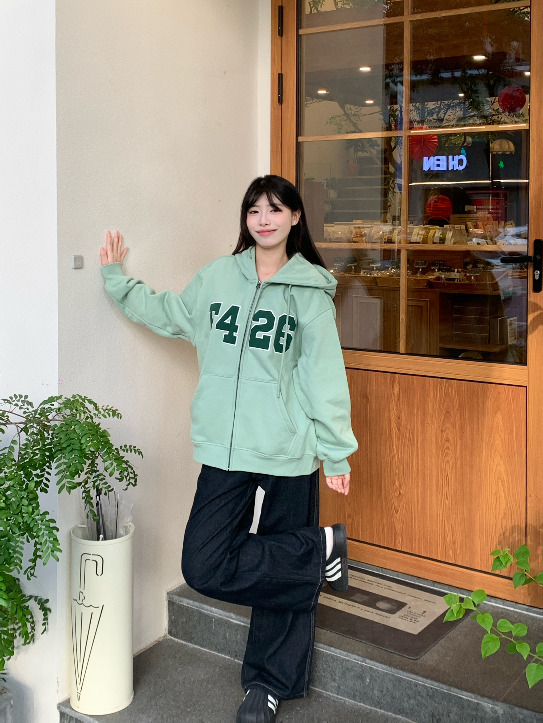 好百搭的卫衣外套!! 简直太好看了,清晰的绿色超级衬肤色,穿出去被夸了~超开心!!还被要了链接~ 衣服内里加绒,软软的超舒服,广东的冬天有它就够了! 165/95穿m,稍微overside的感觉我很喜欢,推荐人手一件的程度