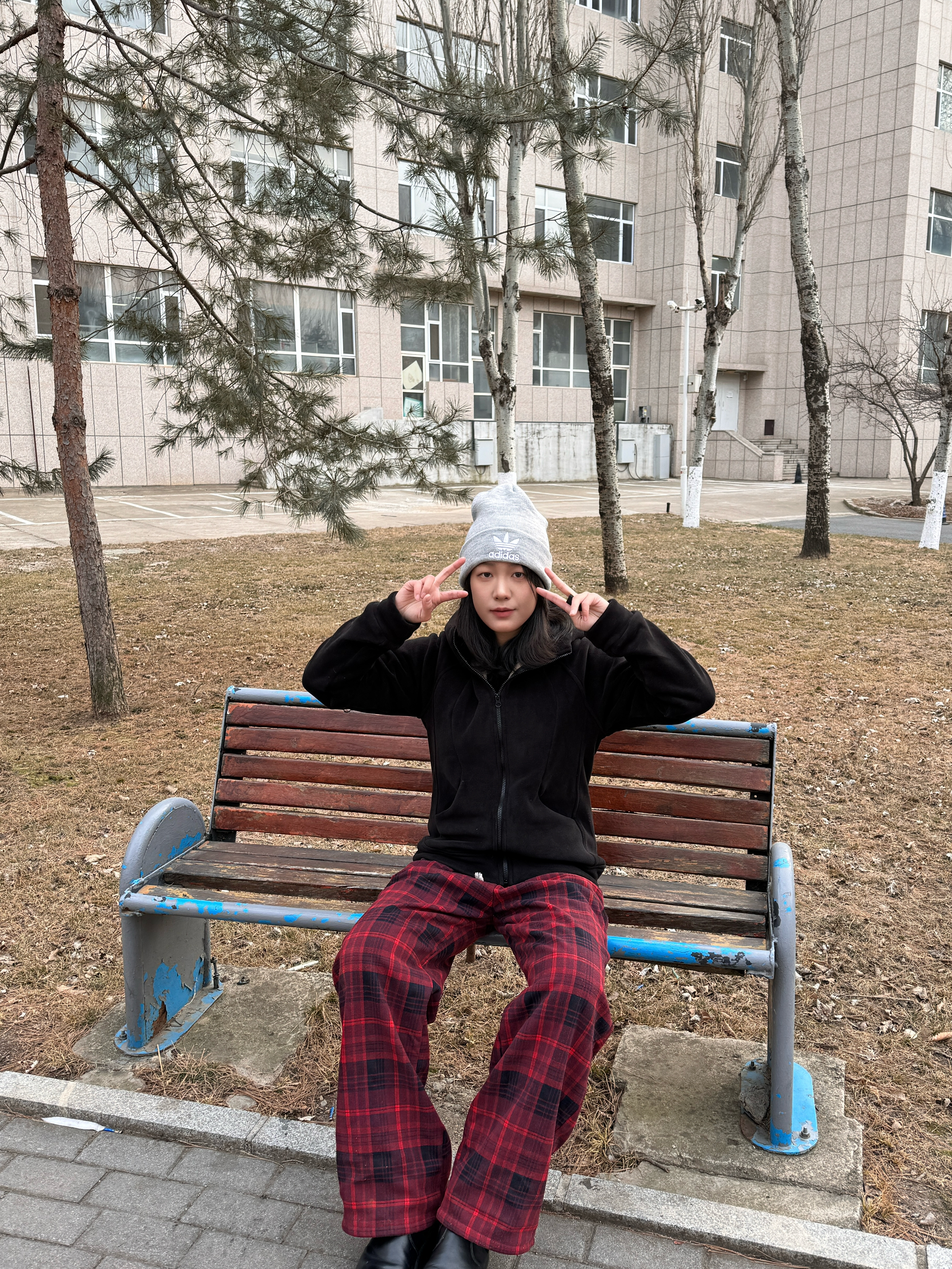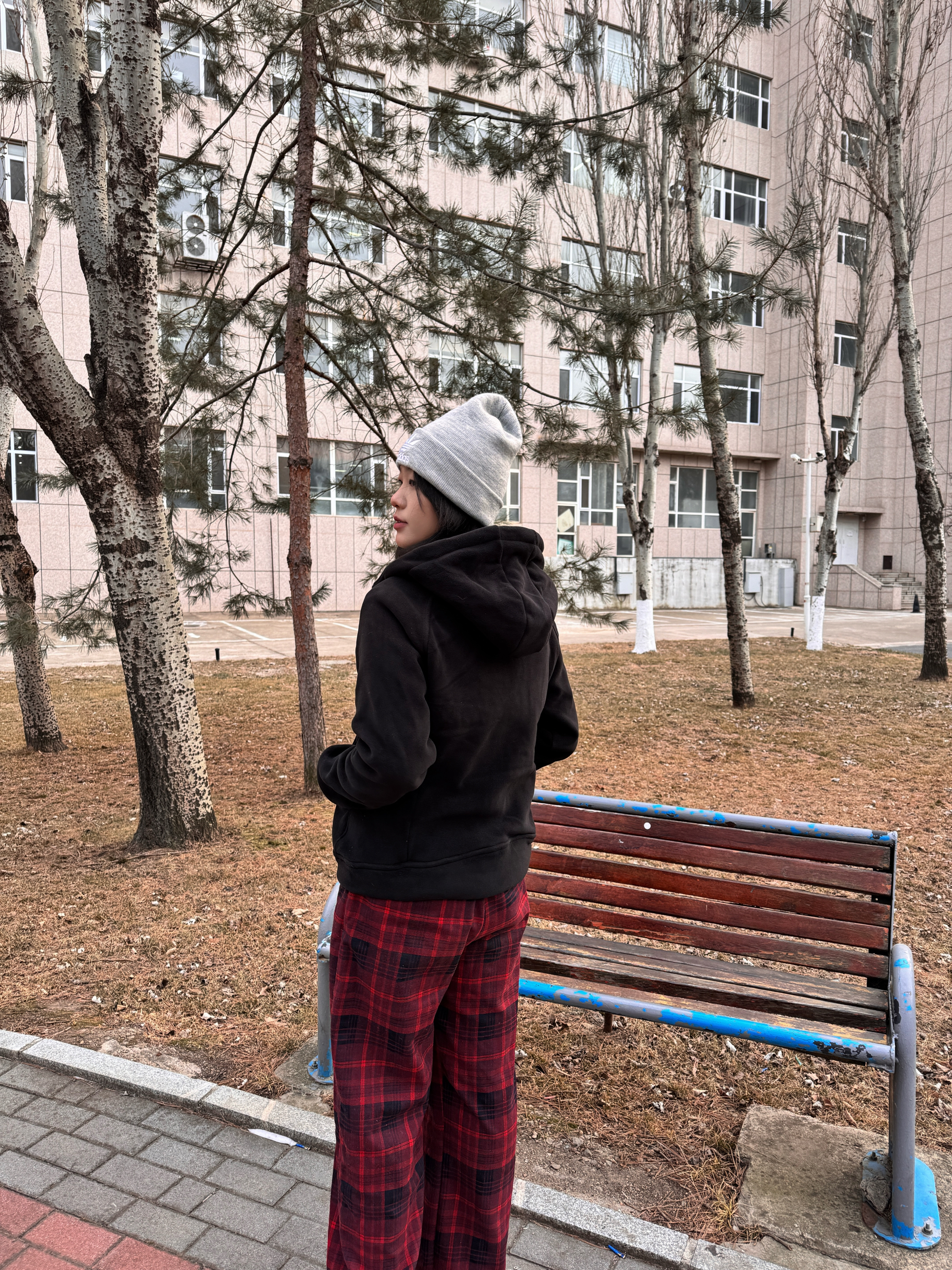 嘿嘿 这样穿也太舒适了!很chill的感觉,也很日常。 很喜欢最近新入手的这个冷帽,非常百搭时尚,而且也很保暖哦~这条格子裤也是性价比超高,是加厚的,冬天穿他准没错!💗💗💗