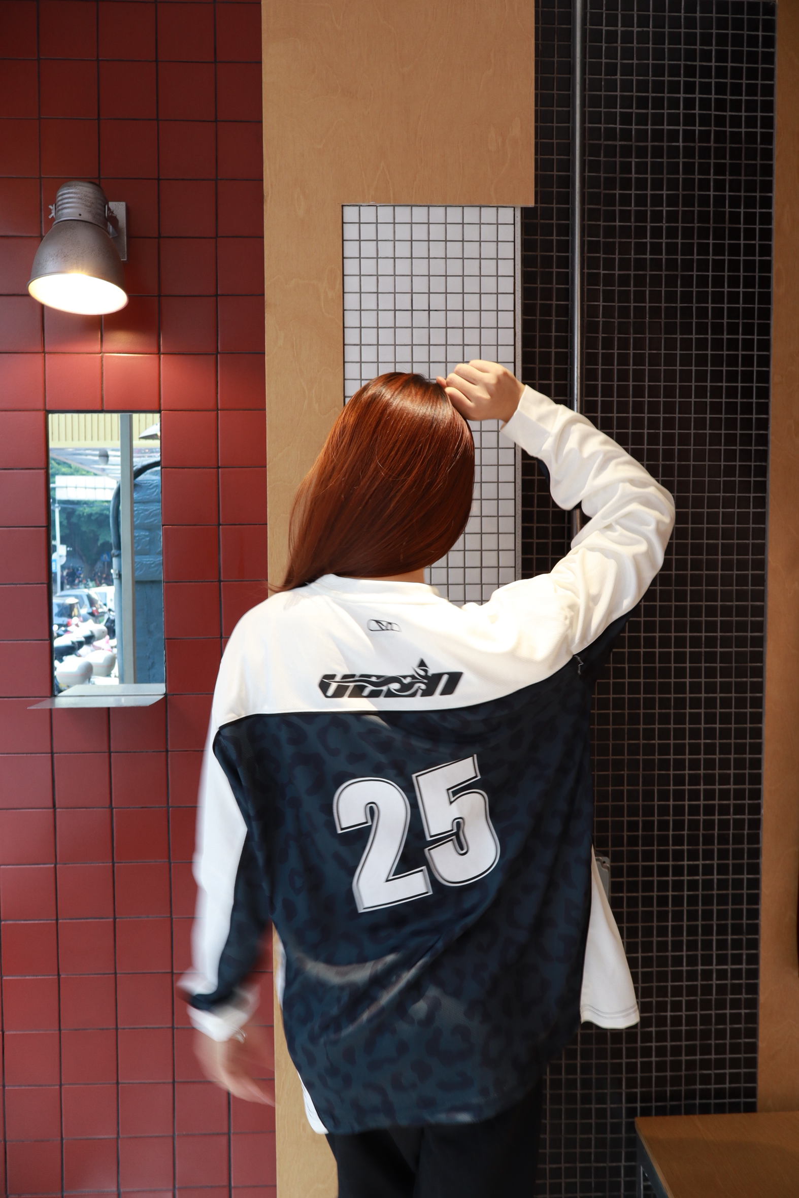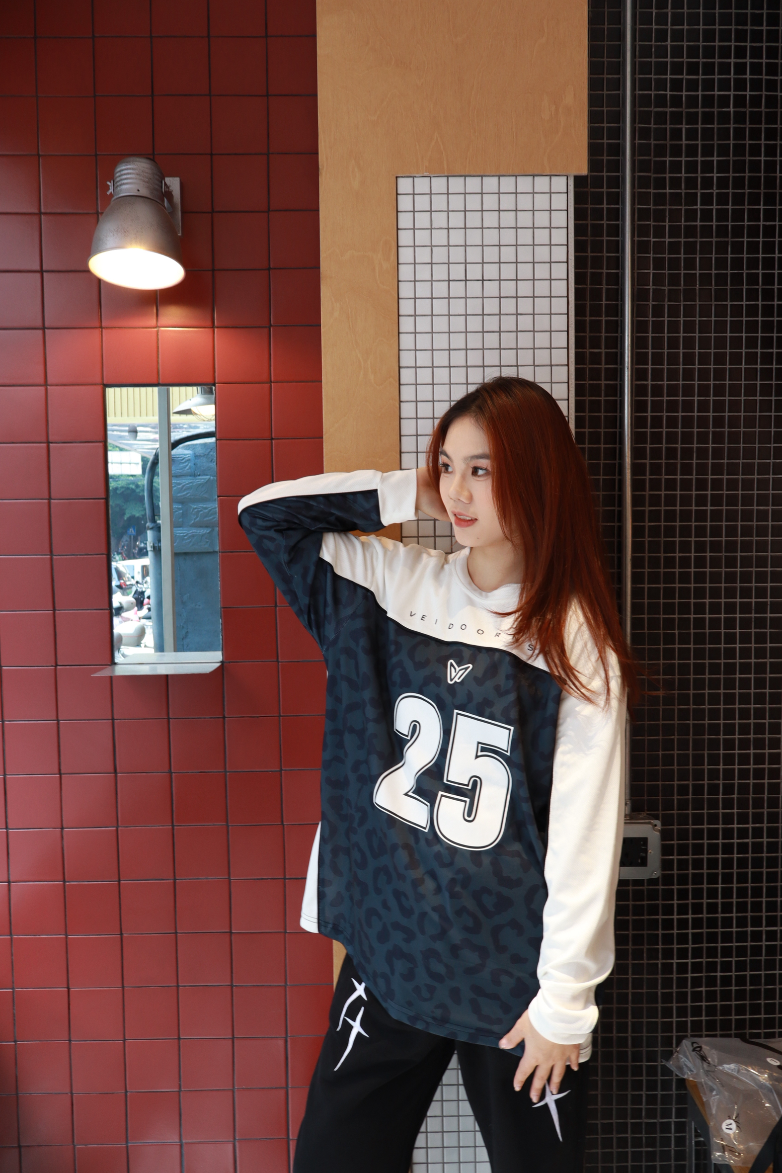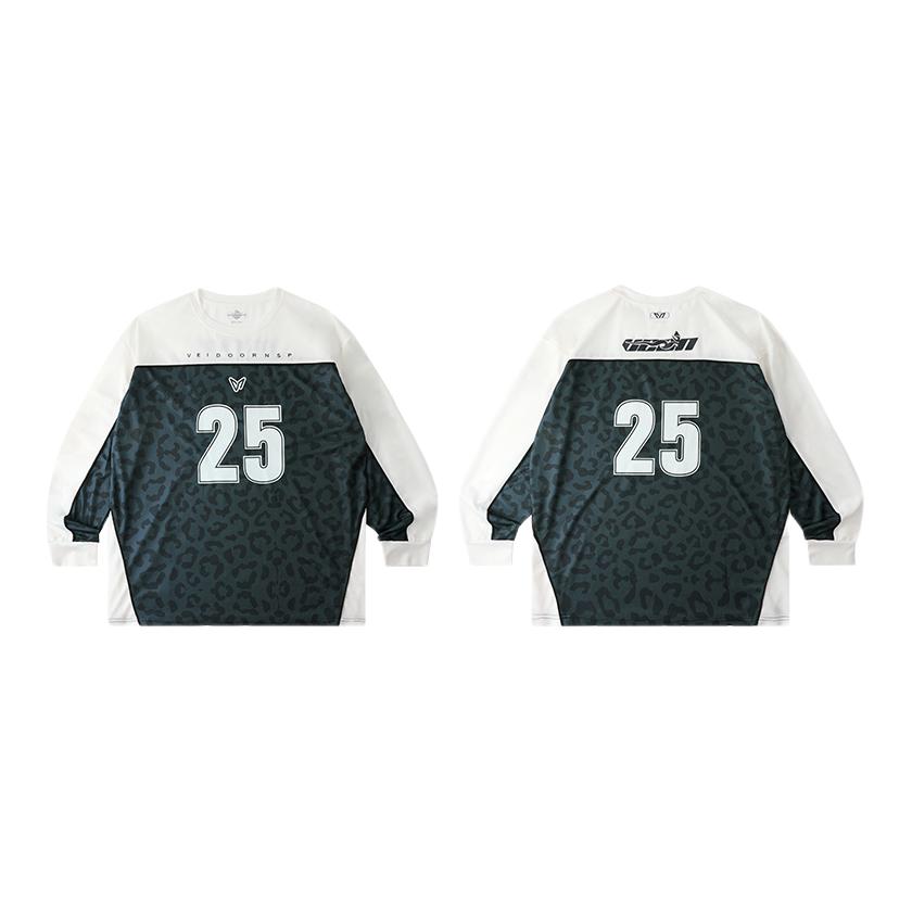 家人们!挖到一件穿了就不想脱的凉感球衣衫✨,真的把舒适度和颜值焊4️⃣了!我身高165cm、体重98斤,穿L码刚好好,宽松不贴肉但又不会垮垮的没型~ 面料是那种自带凉感的材质,夏天穿完全不闷汗,摸起来滑溜溜的,出门走半天都清清爽爽💨。藏青豹纹+大数字25的设计超有腔调,撞色拼接的领口和袖口又添了点运动感,日常搭运动裤、牛仔裤都百搭