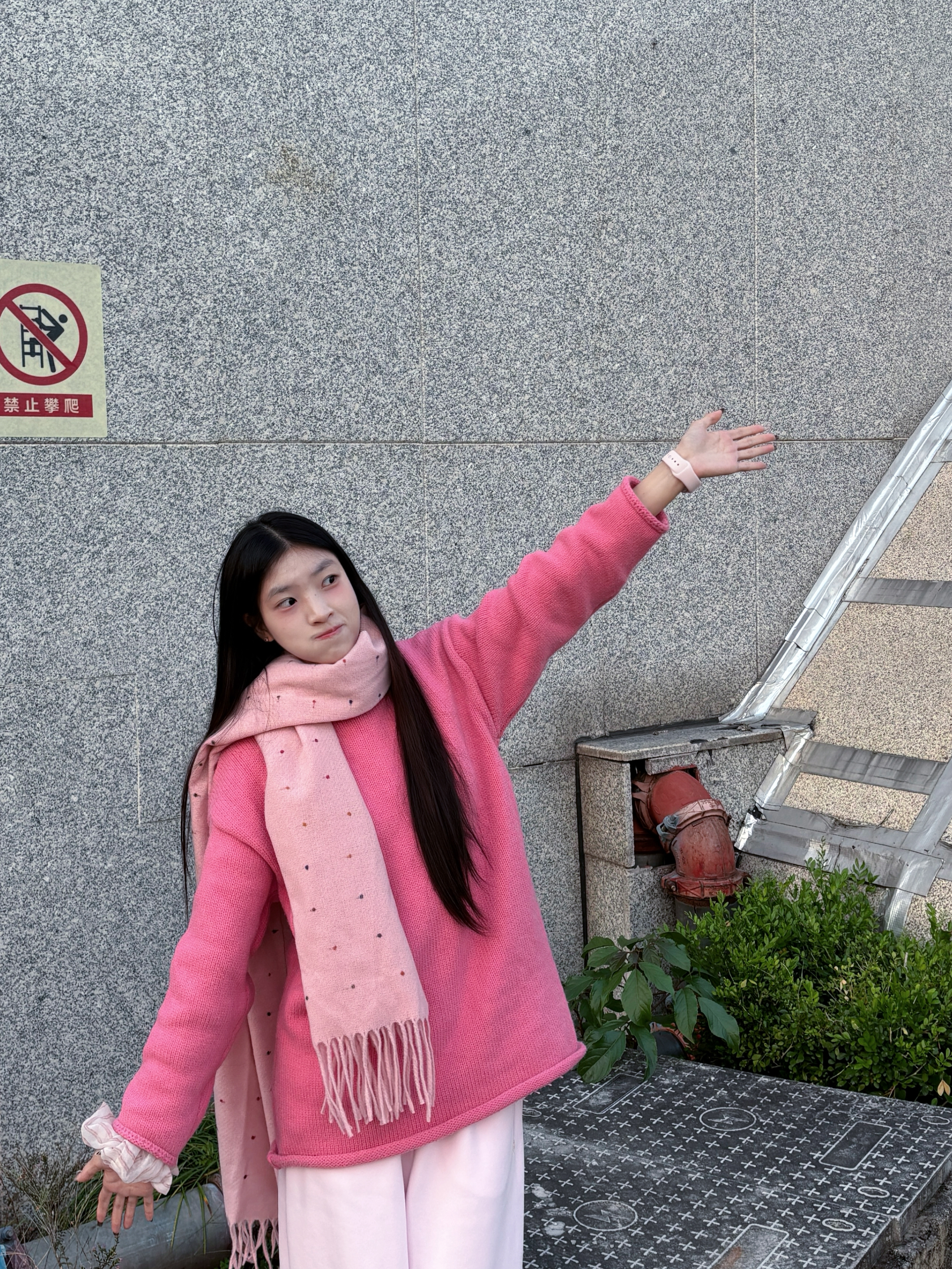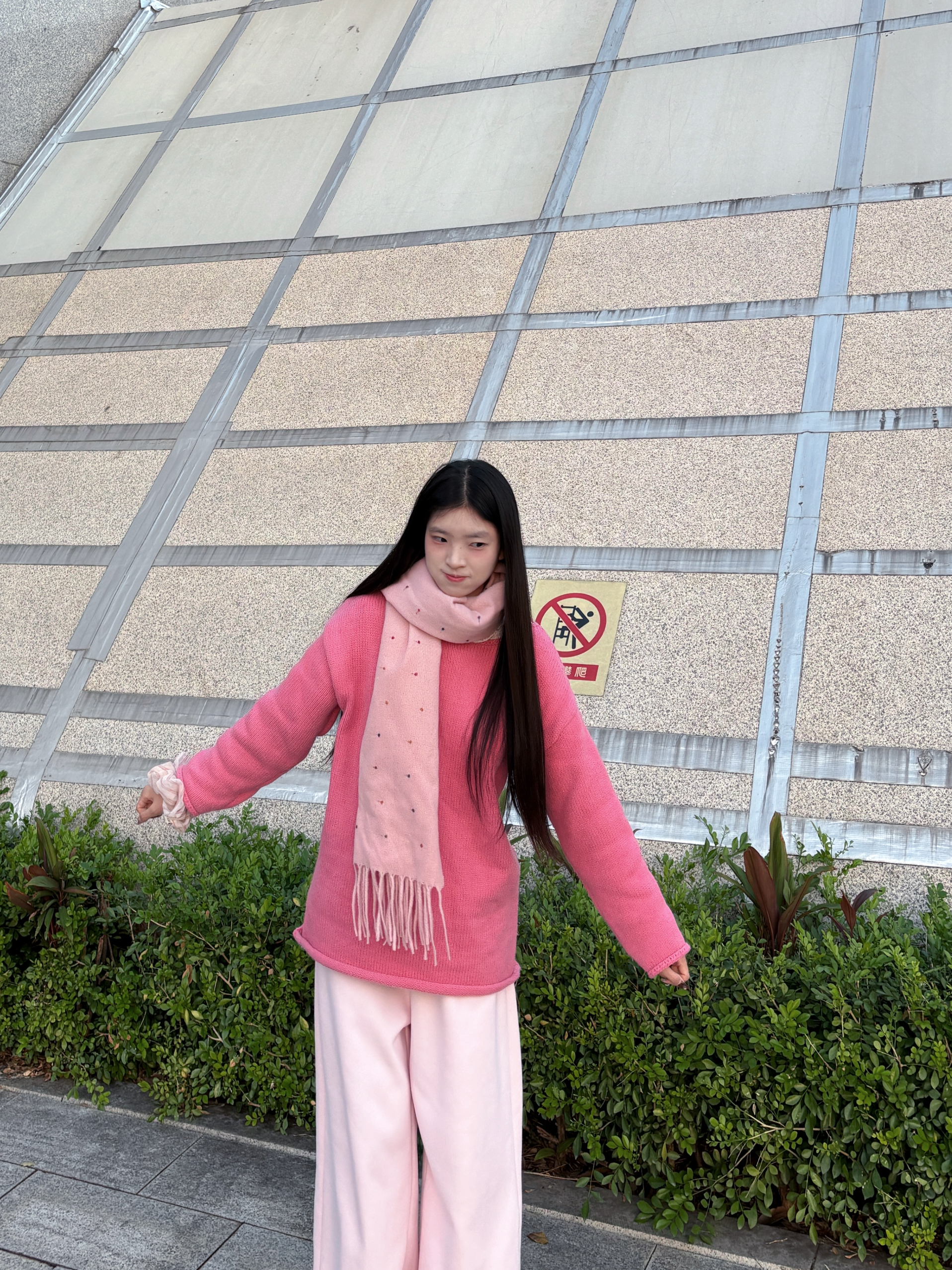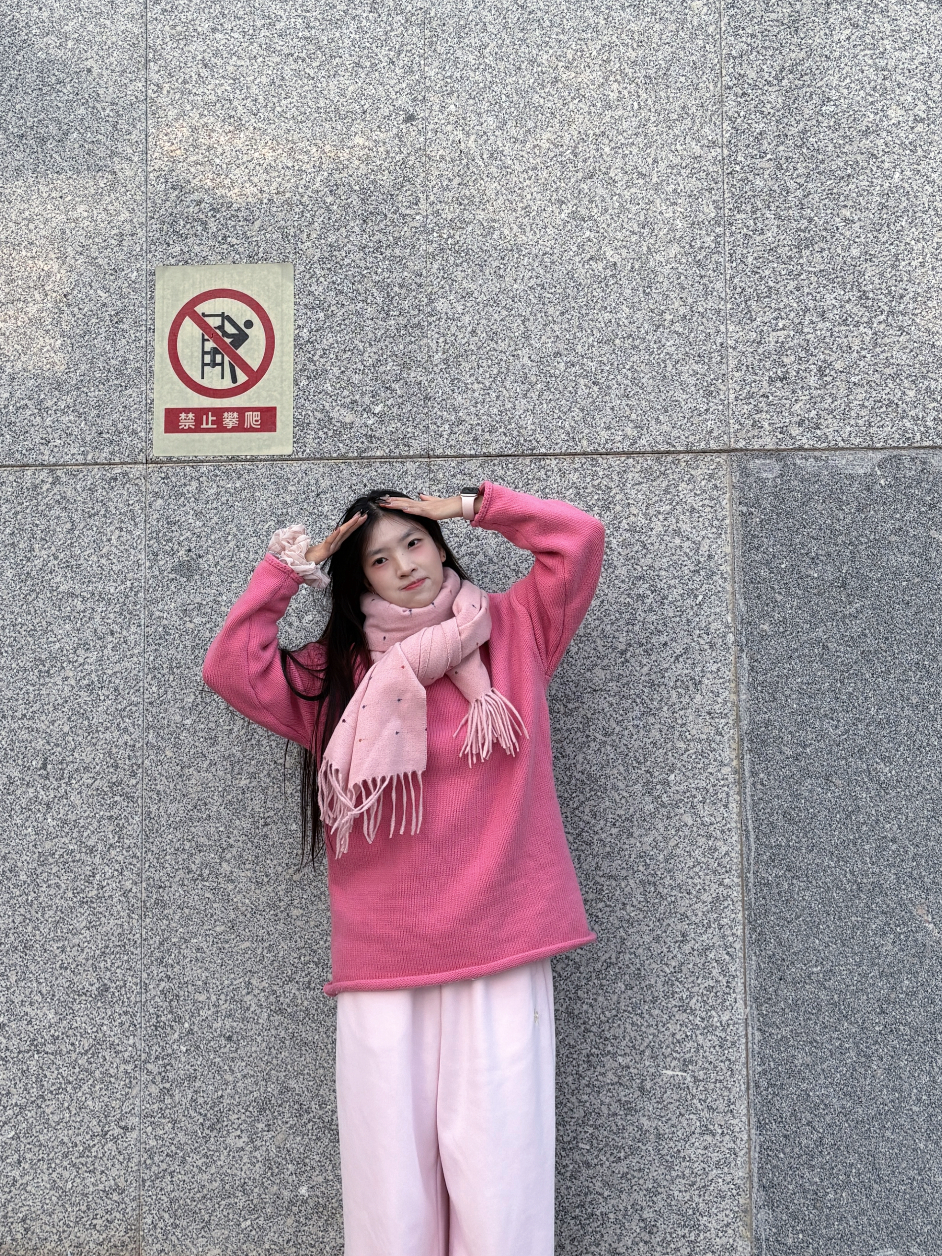 身高|体重:160/43kg 🧍♂️ 穿搭风格:多巴胺色系 👔 上衣:莓粉色毛衣 👖 下装:同色系浅粉卫裤 👟 鞋子:阿迪厨师鞋 🎒配饰:jeep粉色波点围巾🧣
