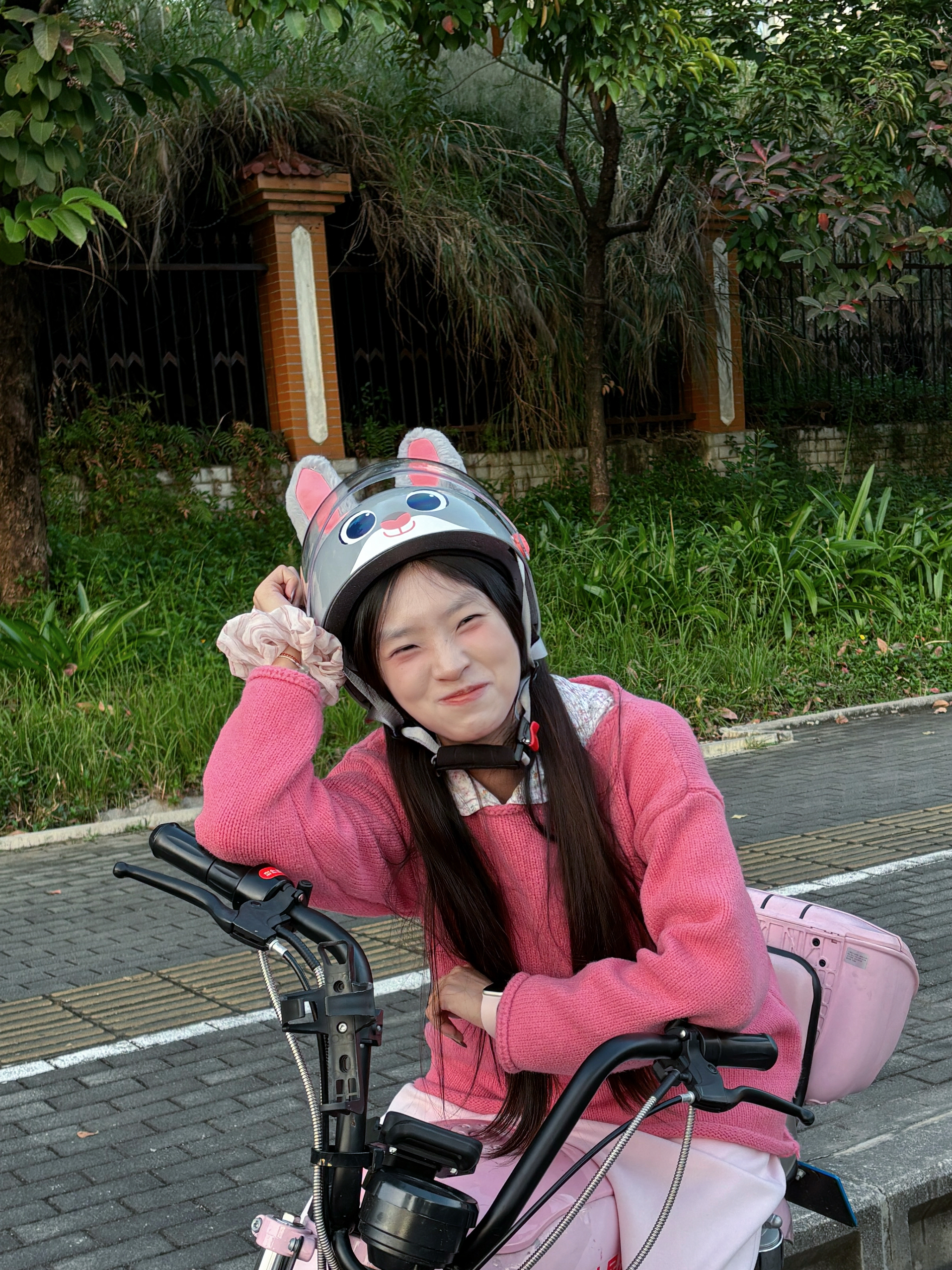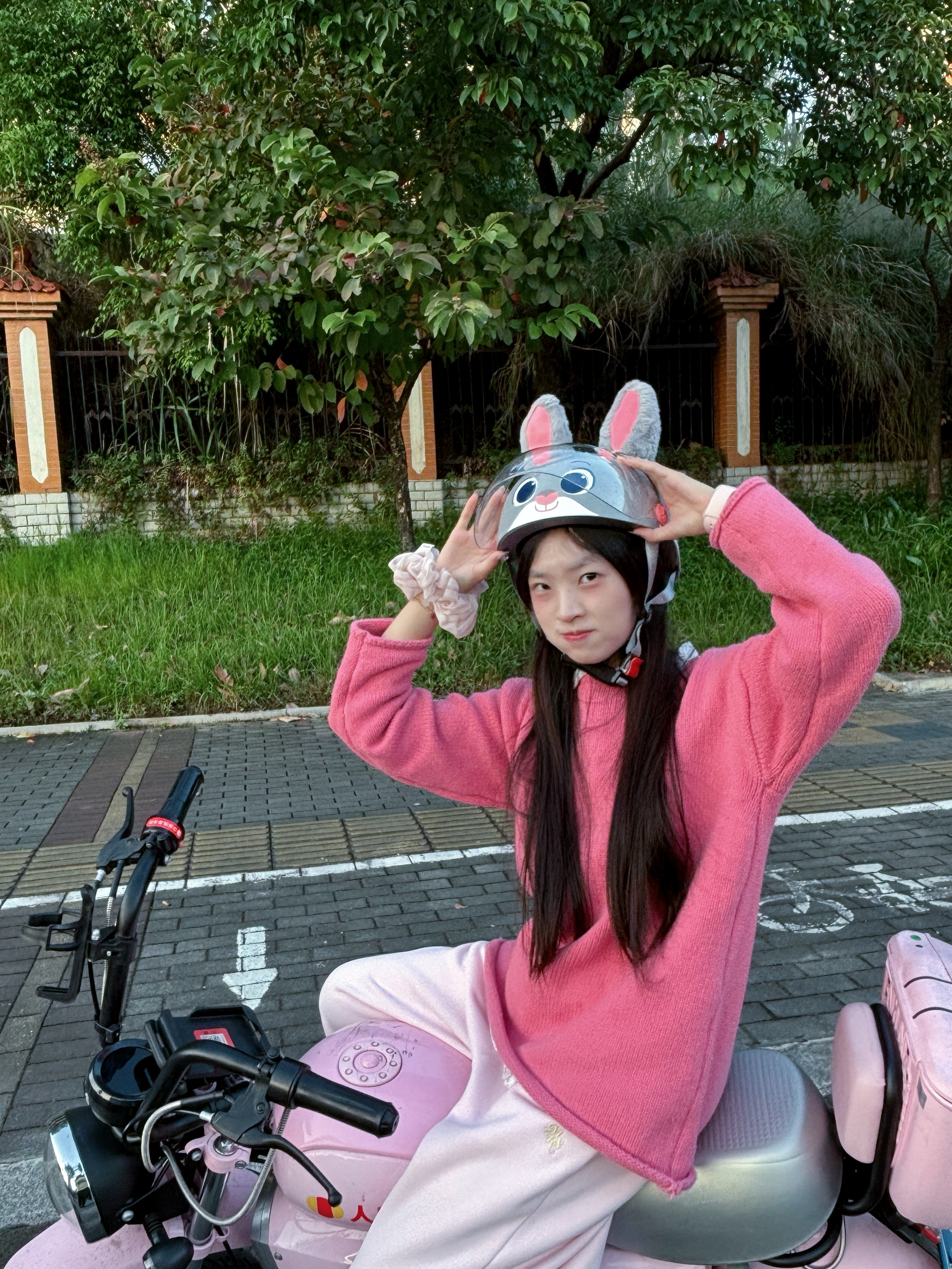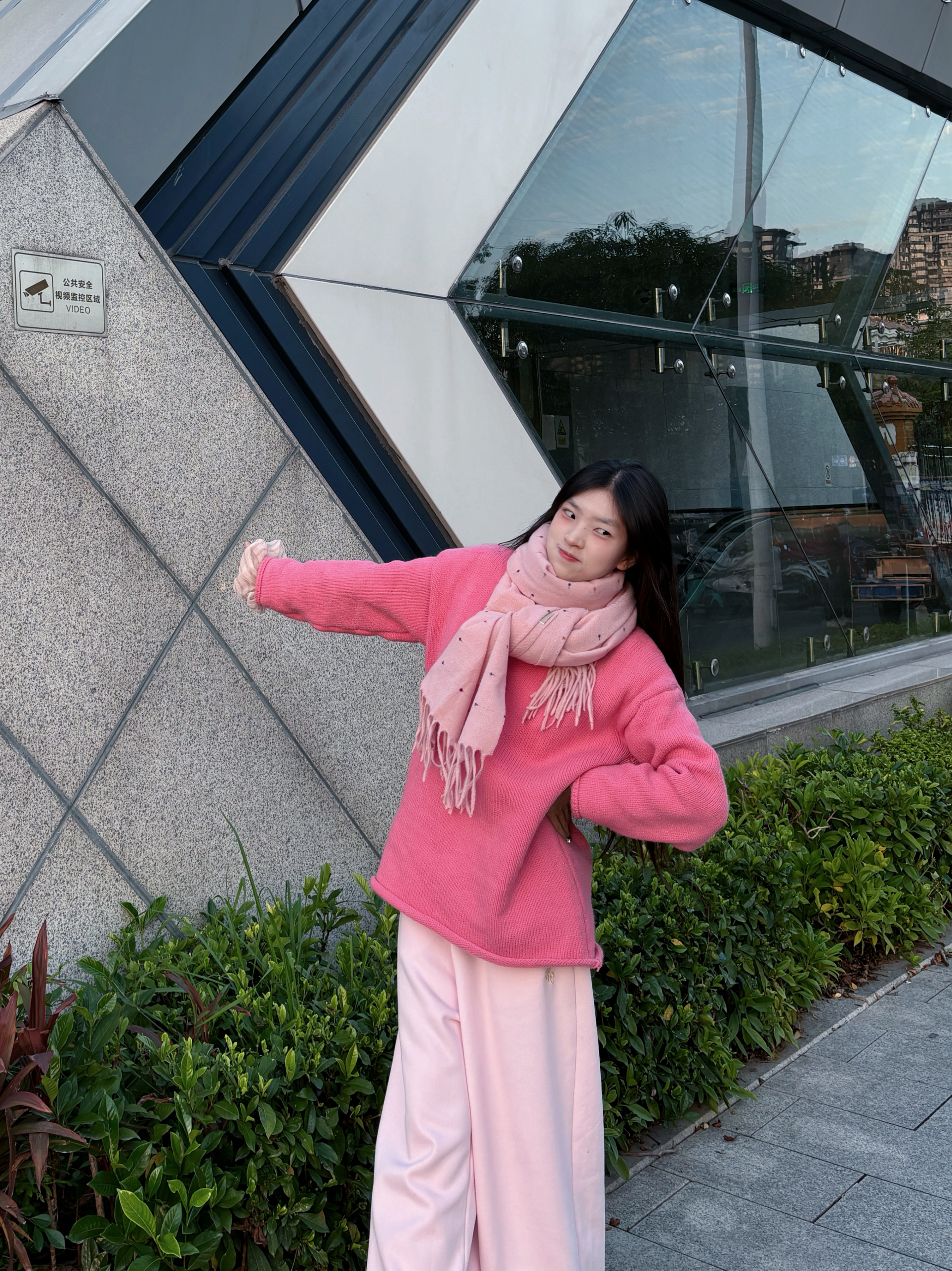 身高|体重:160/43kg 🧍♂️ 穿搭风格:多巴胺色系 👔 上衣:莓粉色毛衣 👖 下装:同色系浅粉卫裤 👟 鞋子:阿迪厨师鞋 🎒配饰:jeep粉色波点围巾🧣