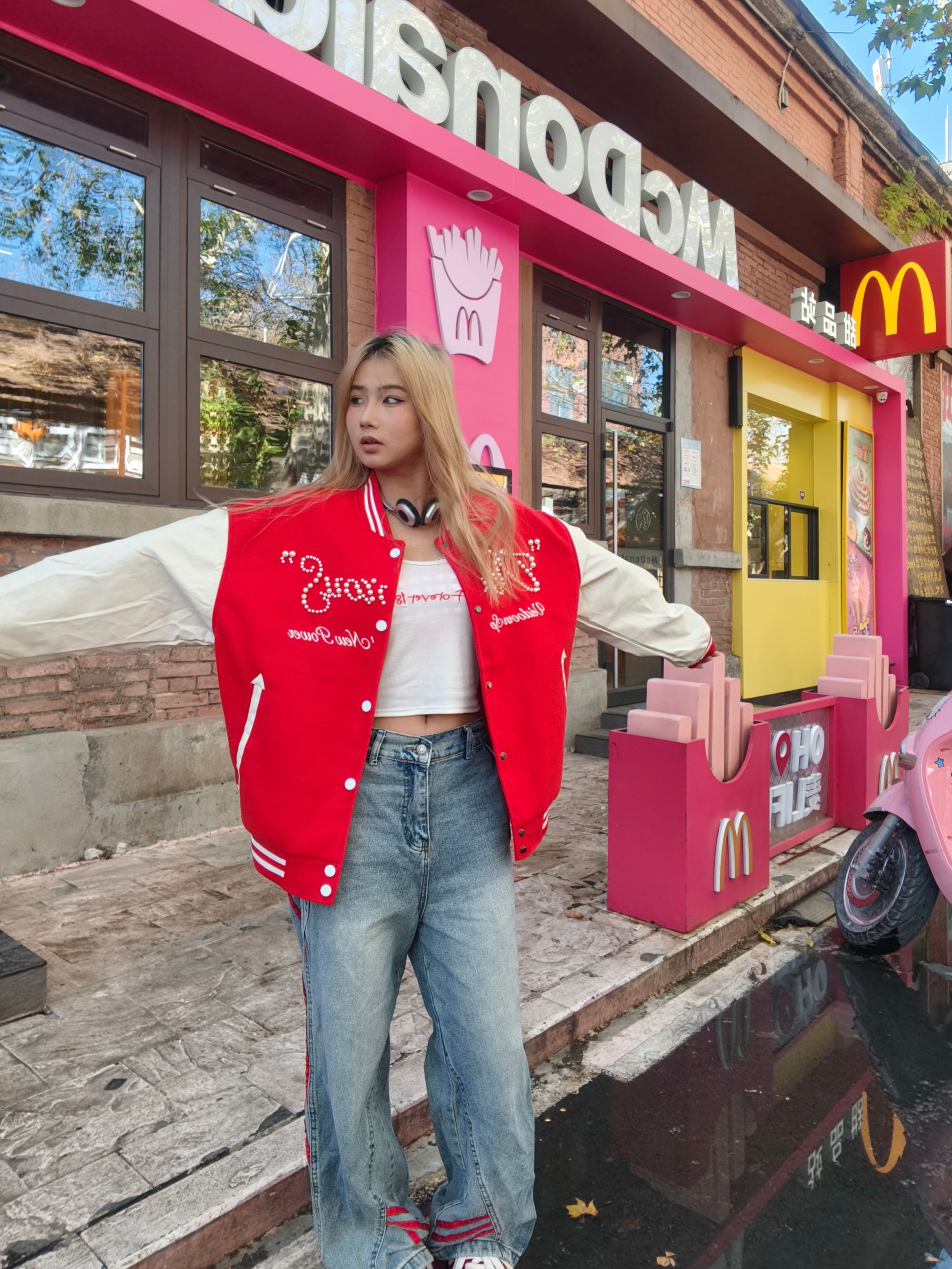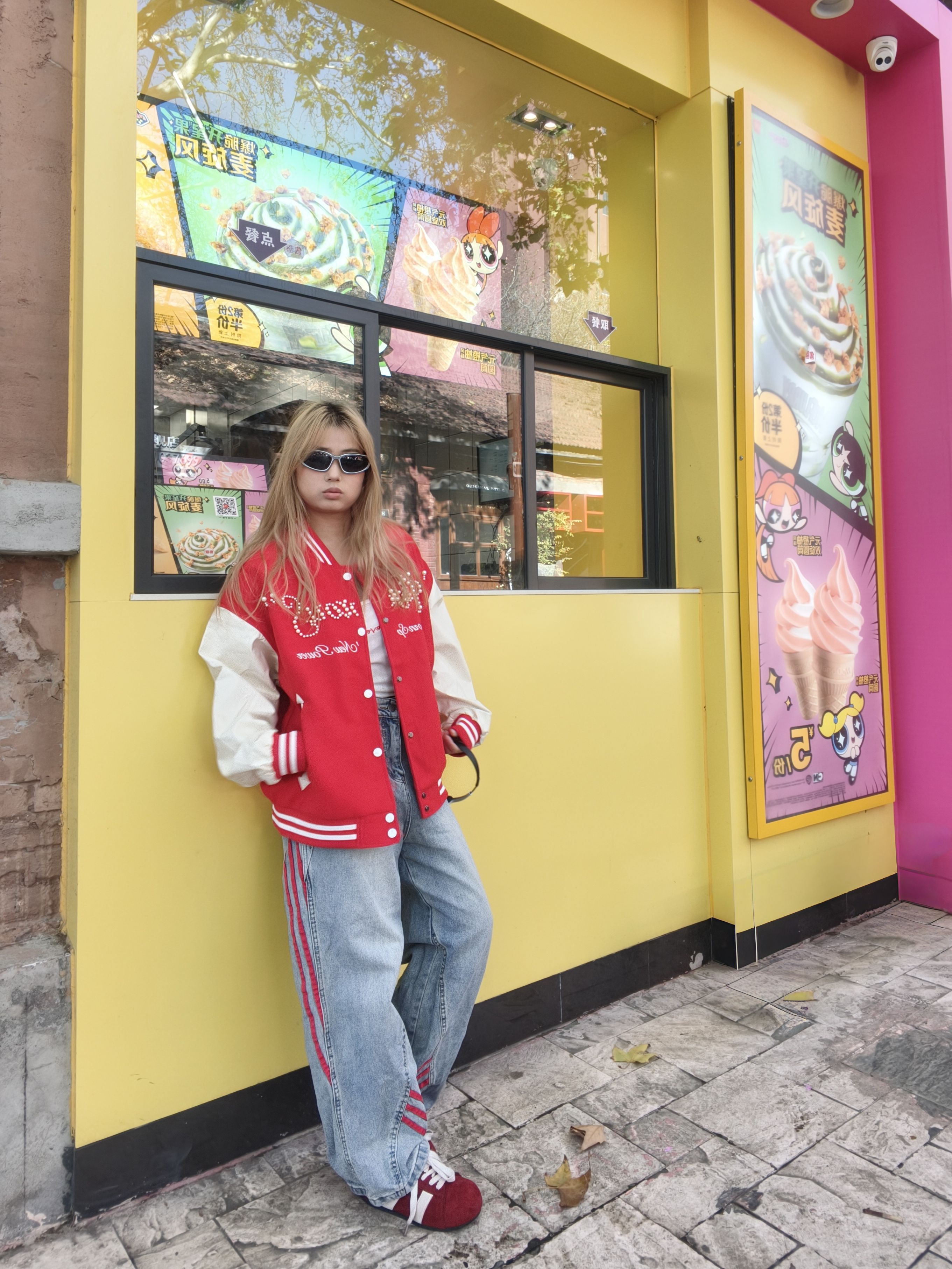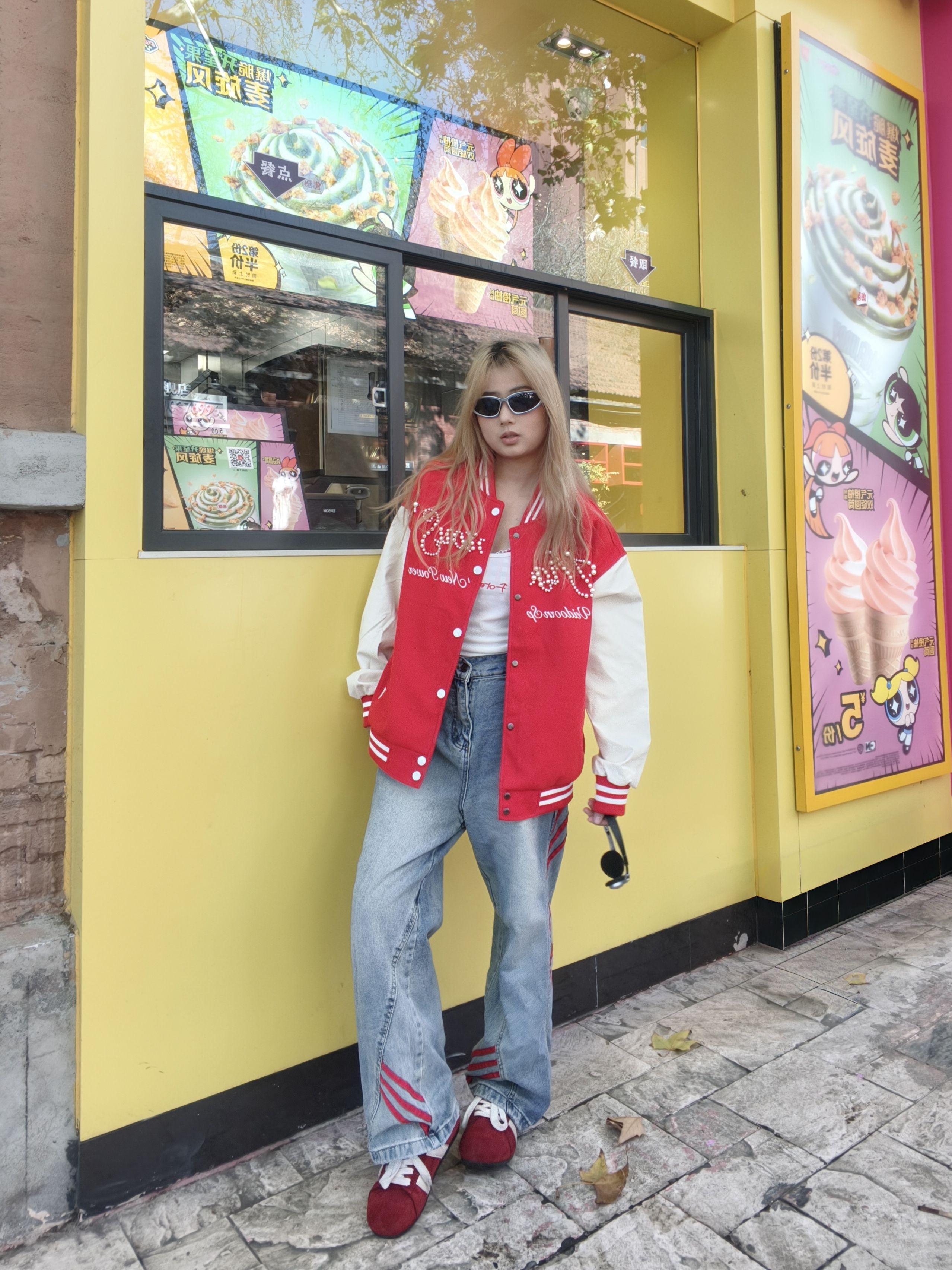 165cm50kgL码,维动VEIDOORN品牌,这款棒球服的刺绣是珍珠钉设计,这里很独特,它整体的风格是那种美式潮酷,给人一种阳光有活力的感觉,很有街头感,它的版型穿上之后很显瘦,有立体度。衣服面料也很舒服,质量都不错,日常搭配牛仔裤或者其他版型裤子都好看,拍照也很出片哦 #美式刺绣棒球服外套 #美式潮流百搭的棒球服 #美式潮流刺绣棒球服分享 #美式棒球服推荐 #美式宝藏棒球服外套