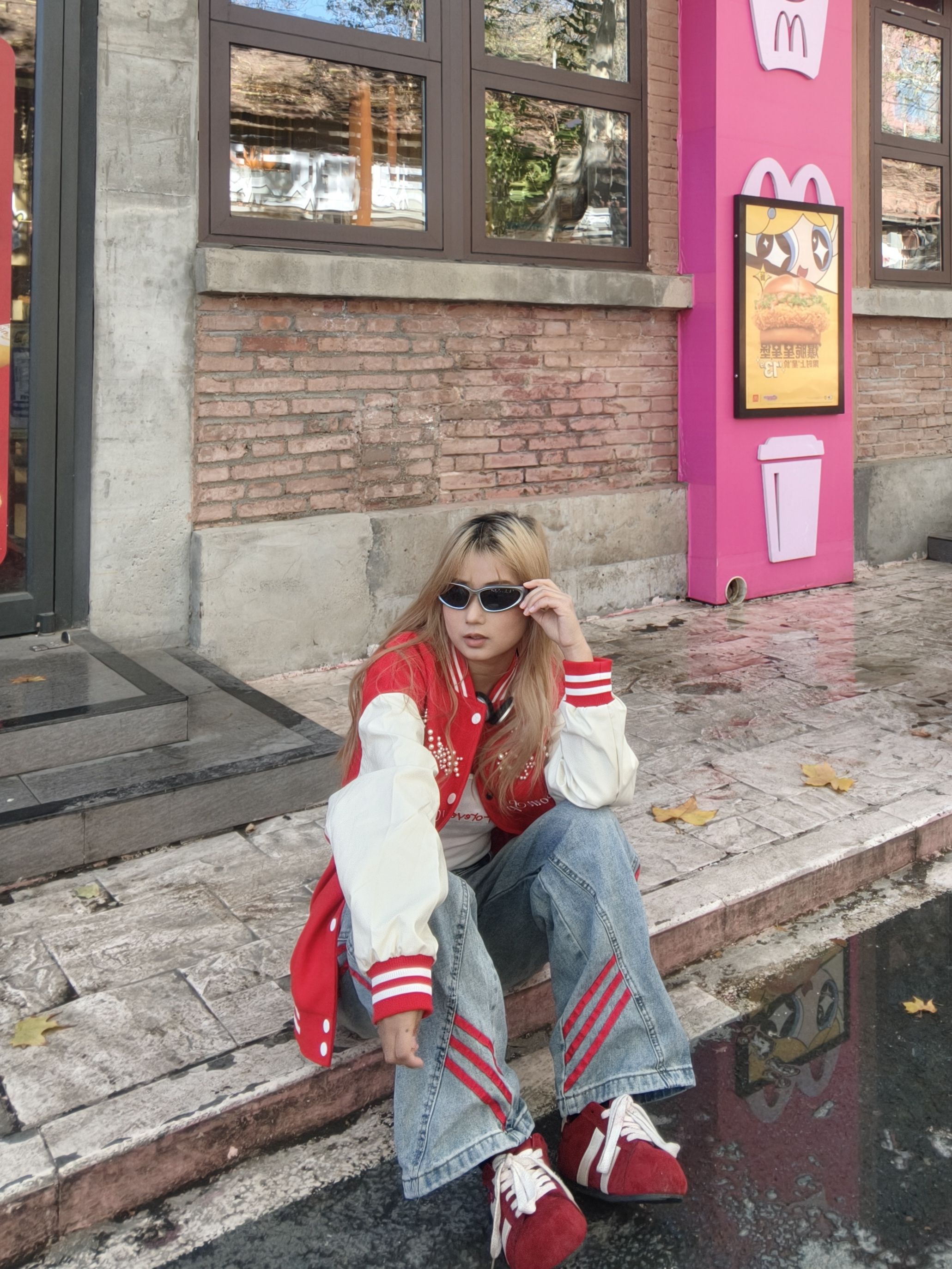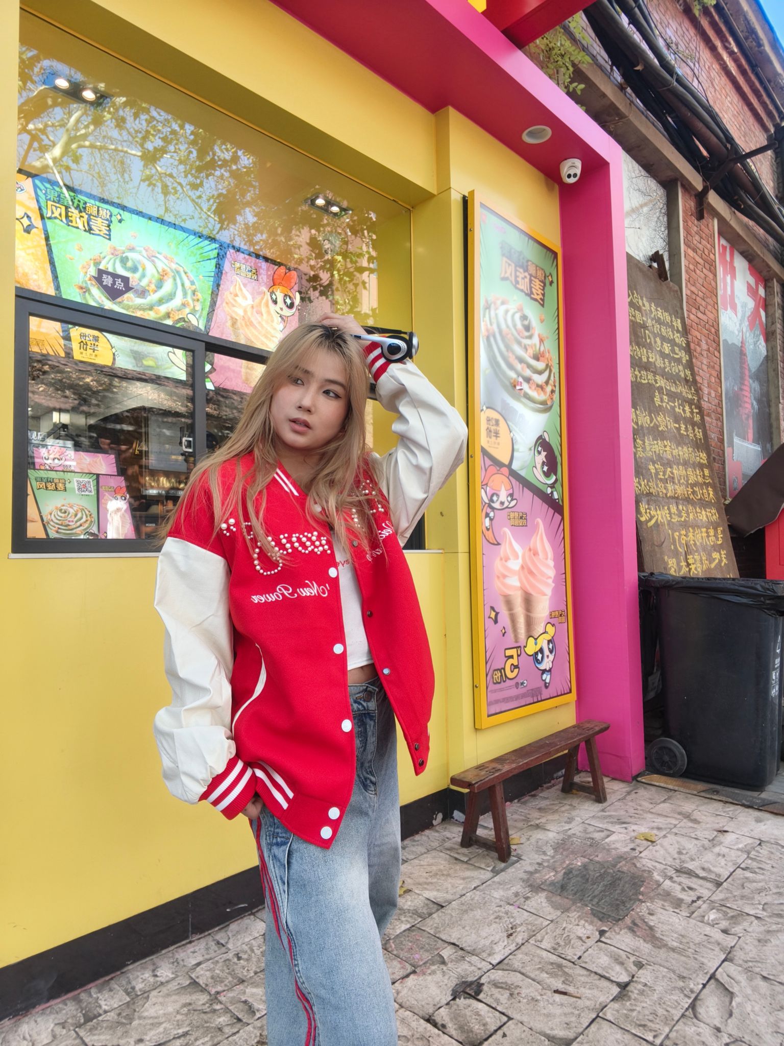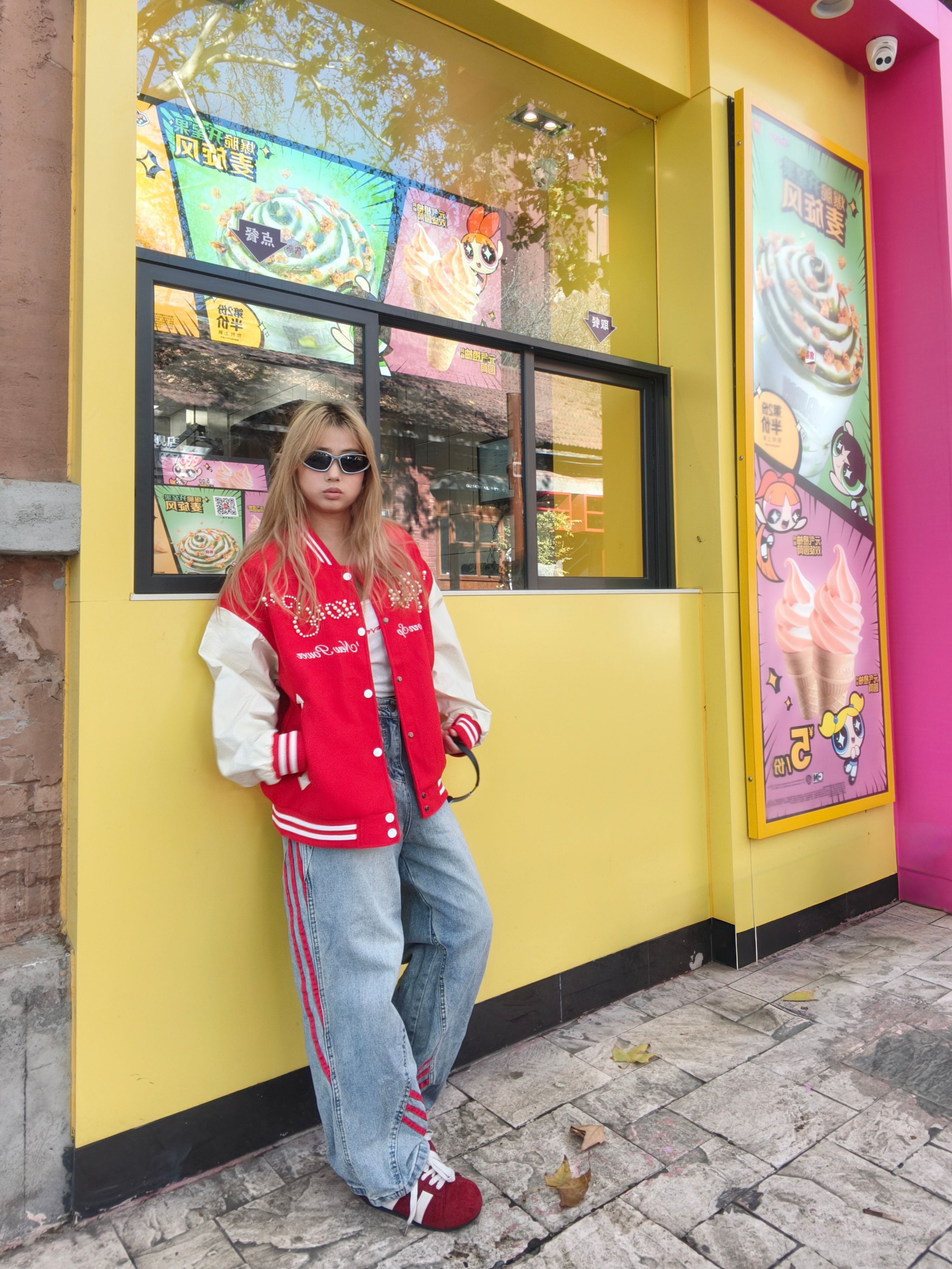 165cm50kgL码,维动VEIDOORN品牌,这款棒球服的刺绣是珍珠钉设计,这里很独特,它整体的风格是那种美式潮酷,给人一种阳光有活力的感觉,很有街头感,它的版型穿上之后很显瘦,有立体度。衣服面料也很舒服,质量都不错,日常搭配牛仔裤或者其他版型裤子都好看,拍照也很出片哦 #美式刺绣棒球服外套 #美式潮流百搭的棒球服 #美式潮流刺绣棒球服分享 #美式棒球服推荐 #美式宝藏棒球服外套