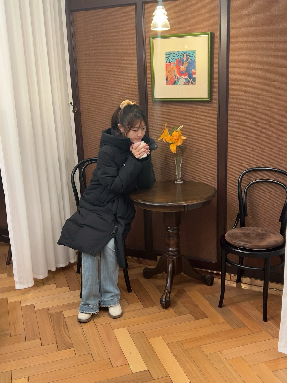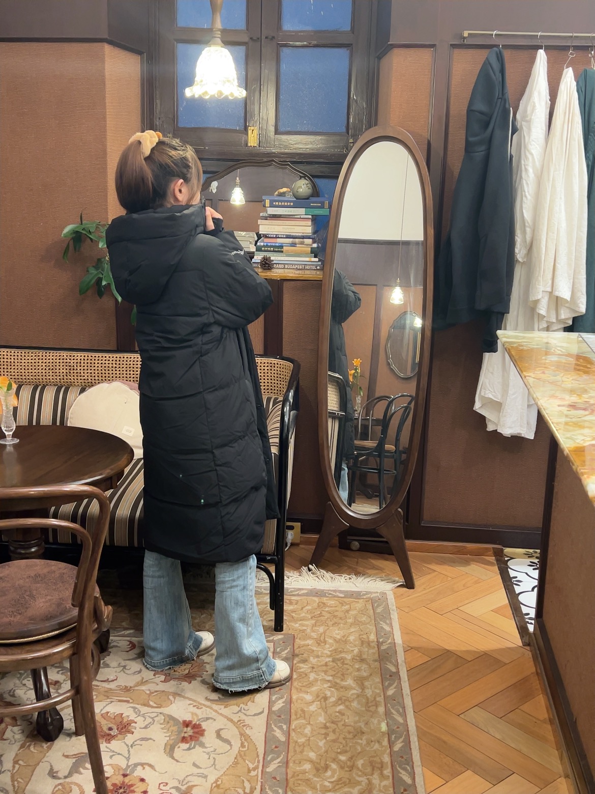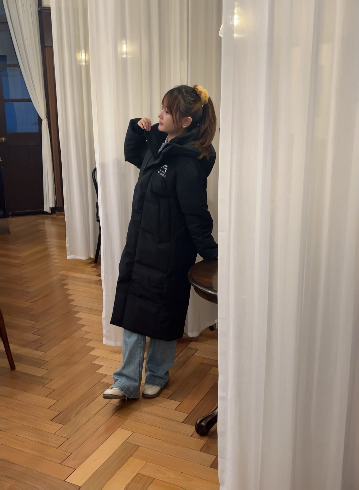 裹上这件黑长羽绒服直接焊在身上!内搭浅蓝衬衫配直筒牛仔,韩系松弛感拉满,怕冷星人也能时髦过冬~