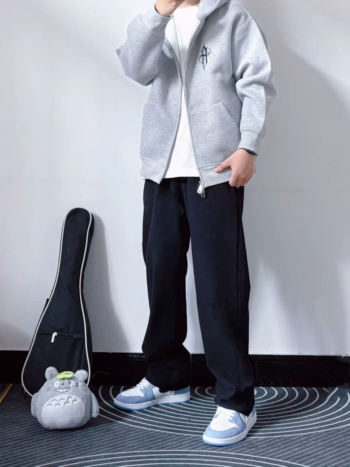 低调点其实也不错 今天的我选择一件开衫卫衣 让生活也休闲 身穿的这件CHINISM 卫衣,低调的黑色,穿着也是舒适自在的 日常叠穿T恤也不错 这样过秋天