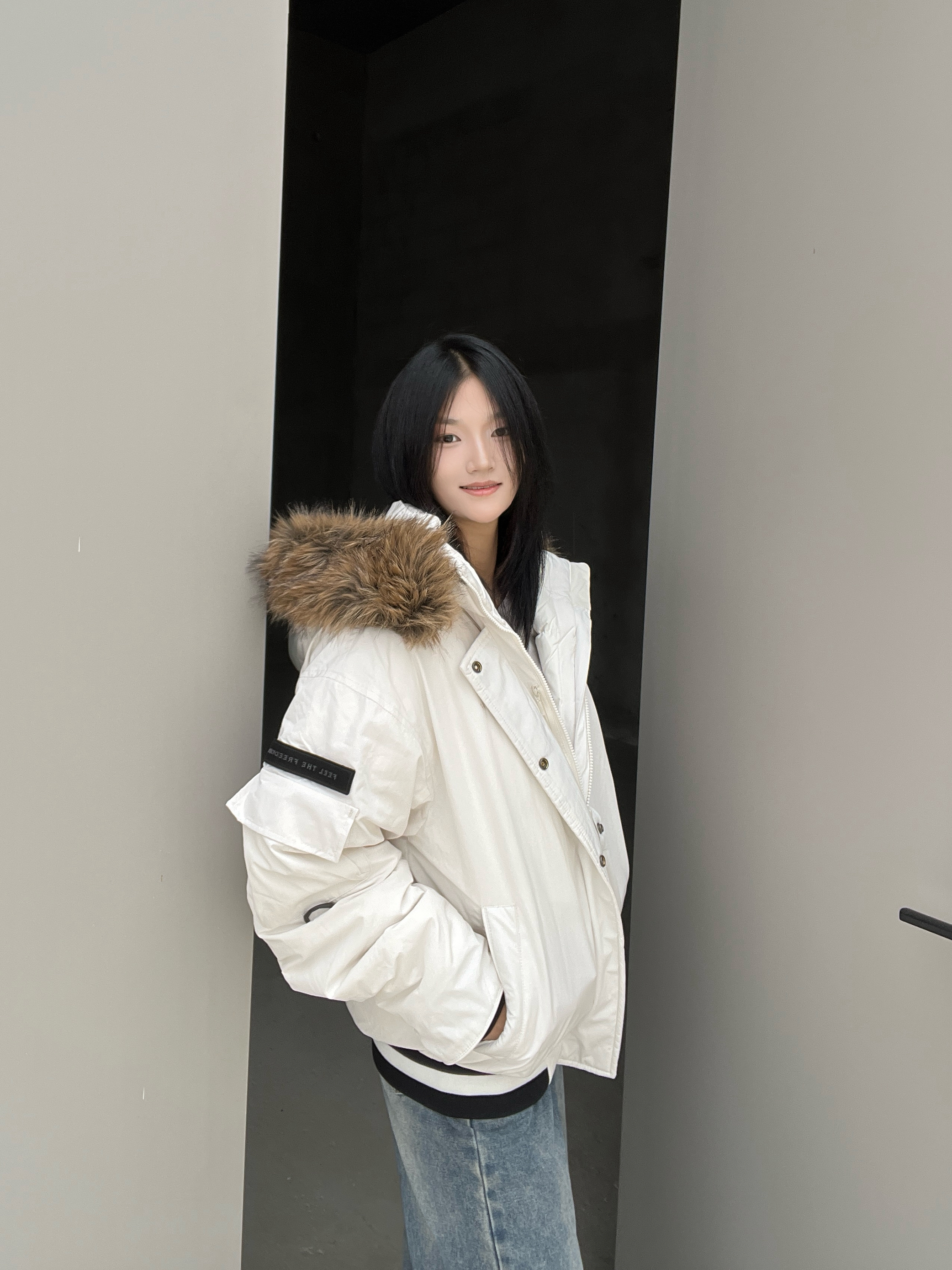 【66号公路/ROUTE 66 】家的羽绒服也太好看了‼️好看的同时也不能少了保暖,真200g90白鸭绒加厚让我们穿上即轻薄显瘦又环保,也可以防抗静电,大毛领可以拆卸,怎么舒服怎么穿!衣服整体设计感十足 胸前66号公路小标好看又低调 穿上不要太舒服了