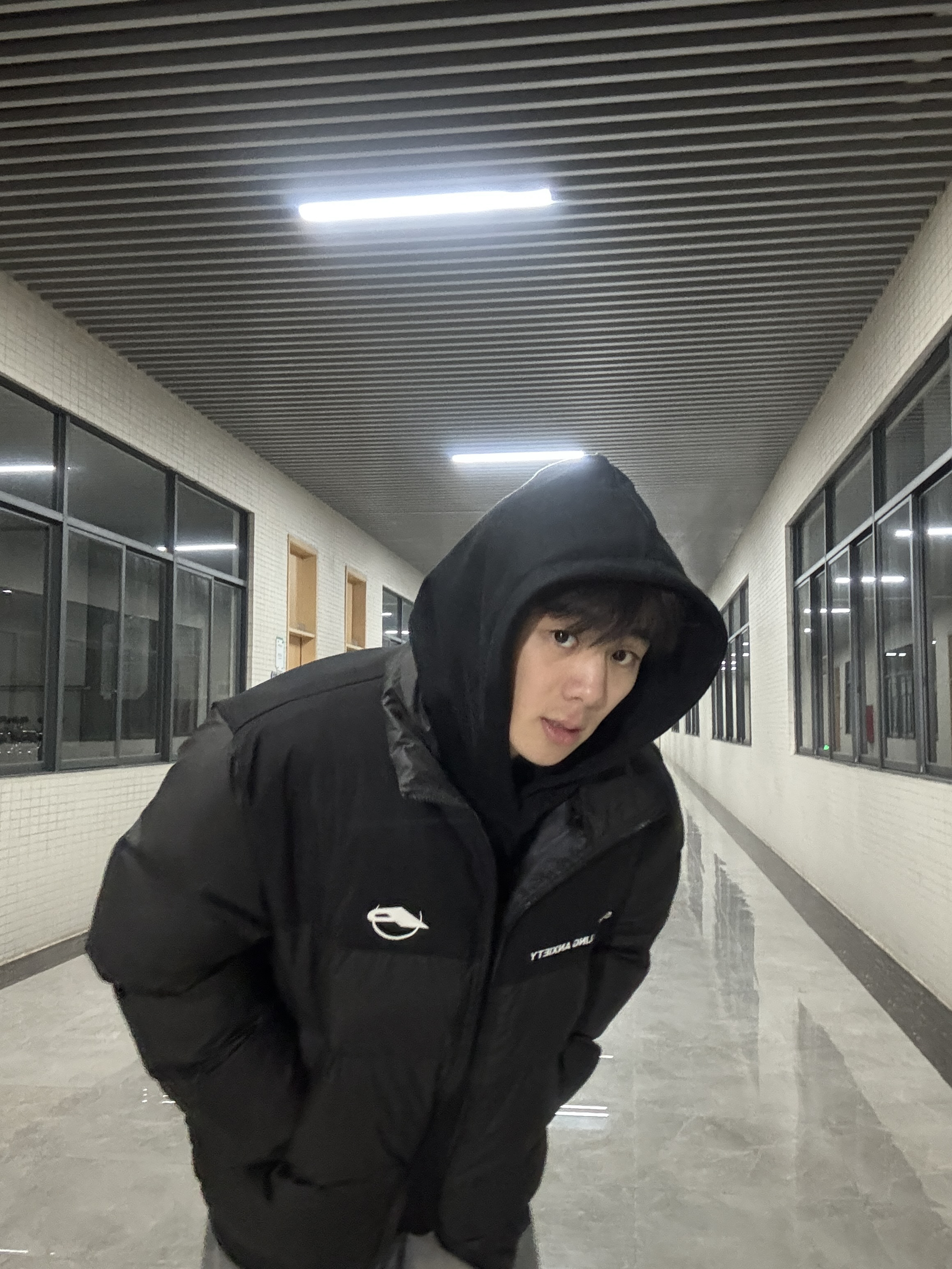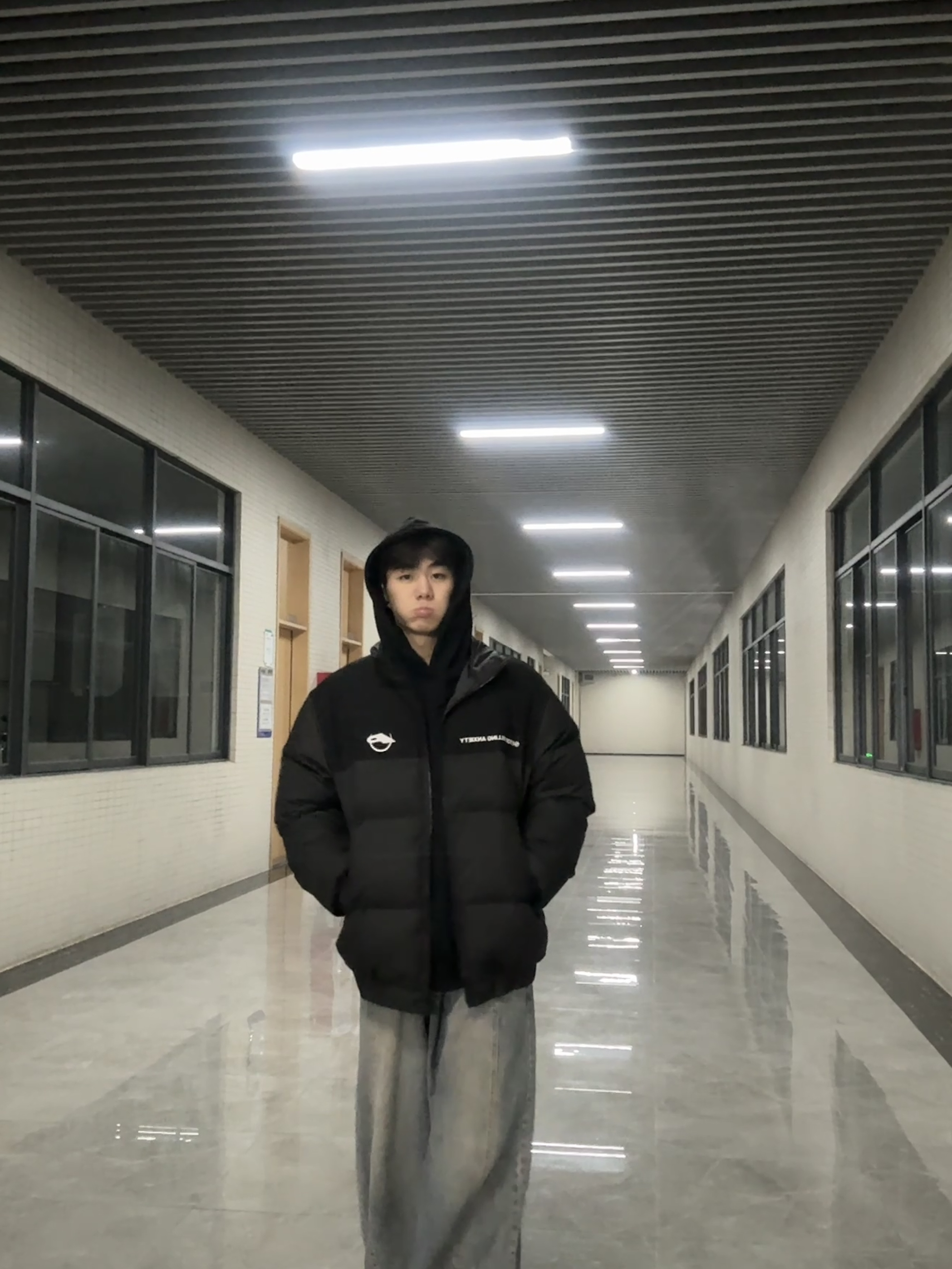 这件黑色拼接羽绒服也太香了!版型宽松不压身,搭配阔腿裤秒变街头潮男,保暖又显瘦,小logo设计超有细节,冬日出街穿它准没错~