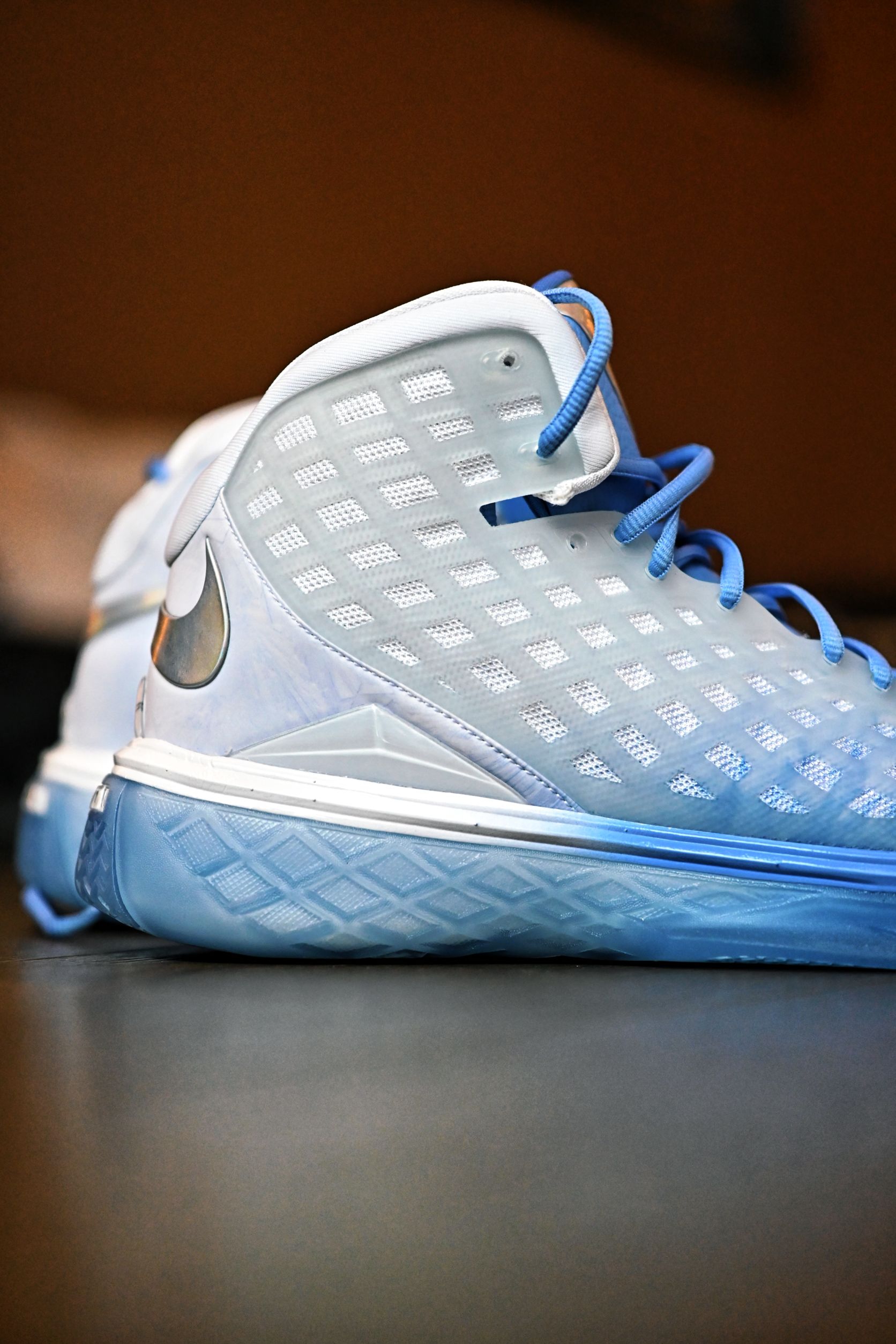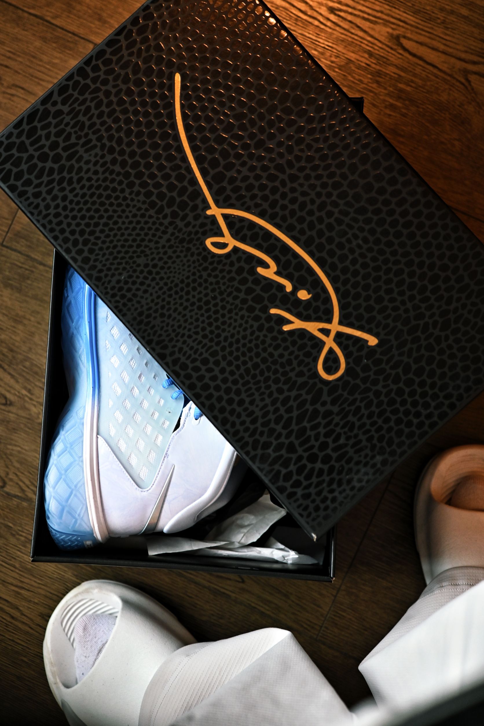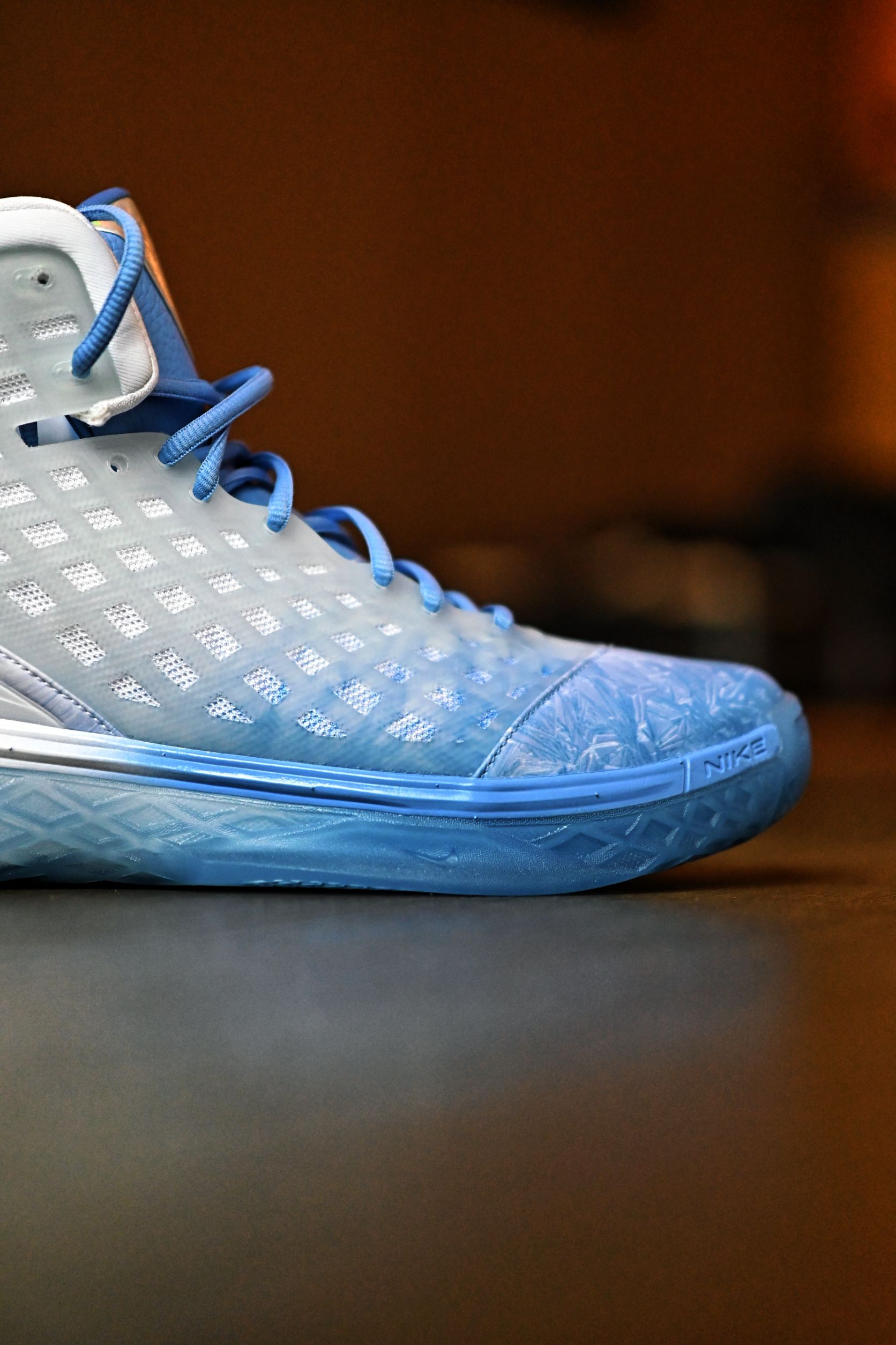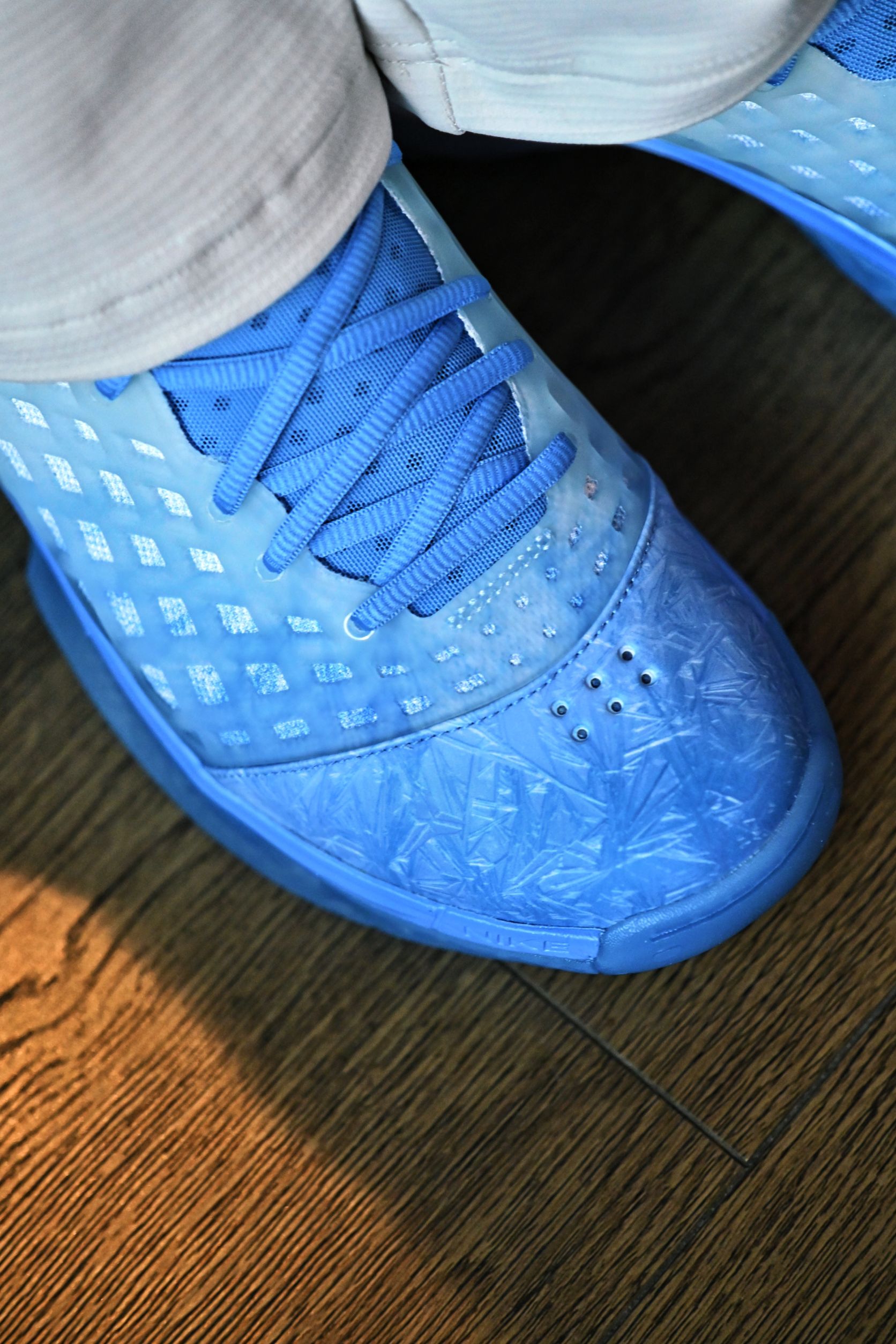 你别说,这小冰花还挺别致 冰蓝的配色,颜值还是非常能打的 虽然是高帮,但是也没我想的那么别扭,还是蛮灵活的,不卡脚踝,这个包裹也很稳当 主要还是跟个风,提前过圣诞了😋