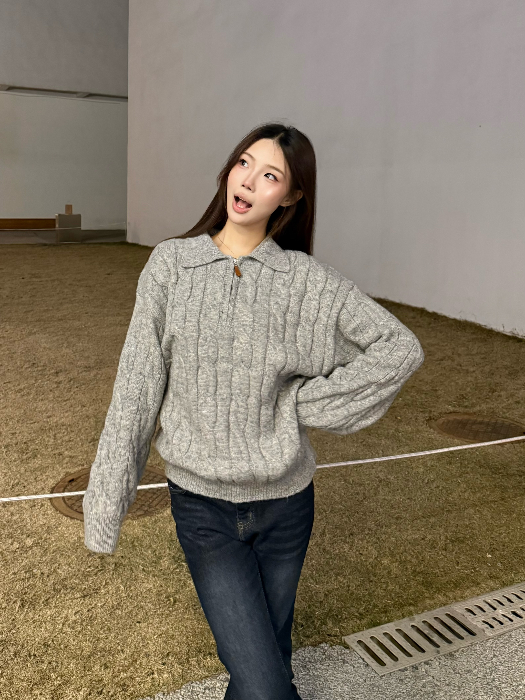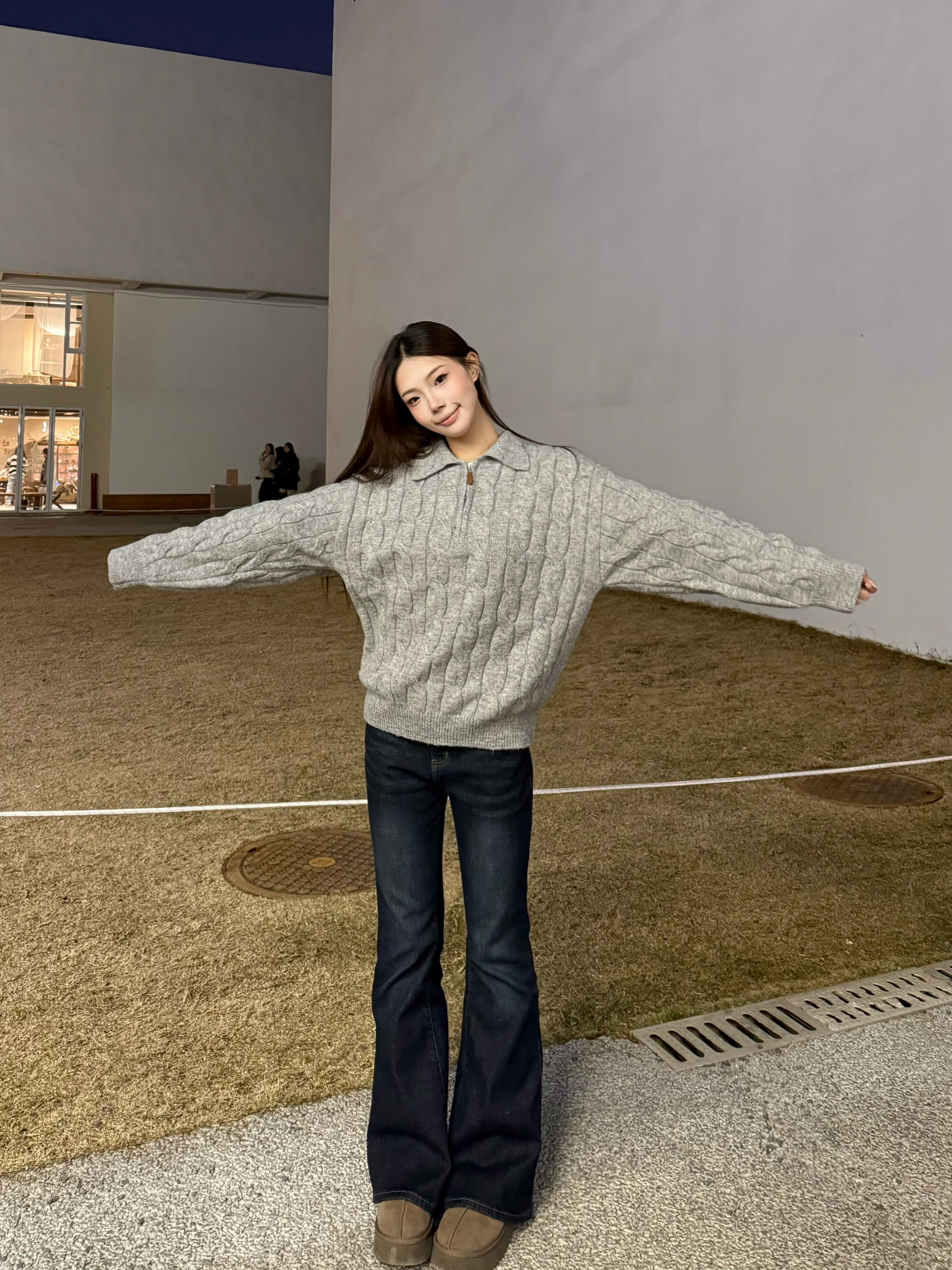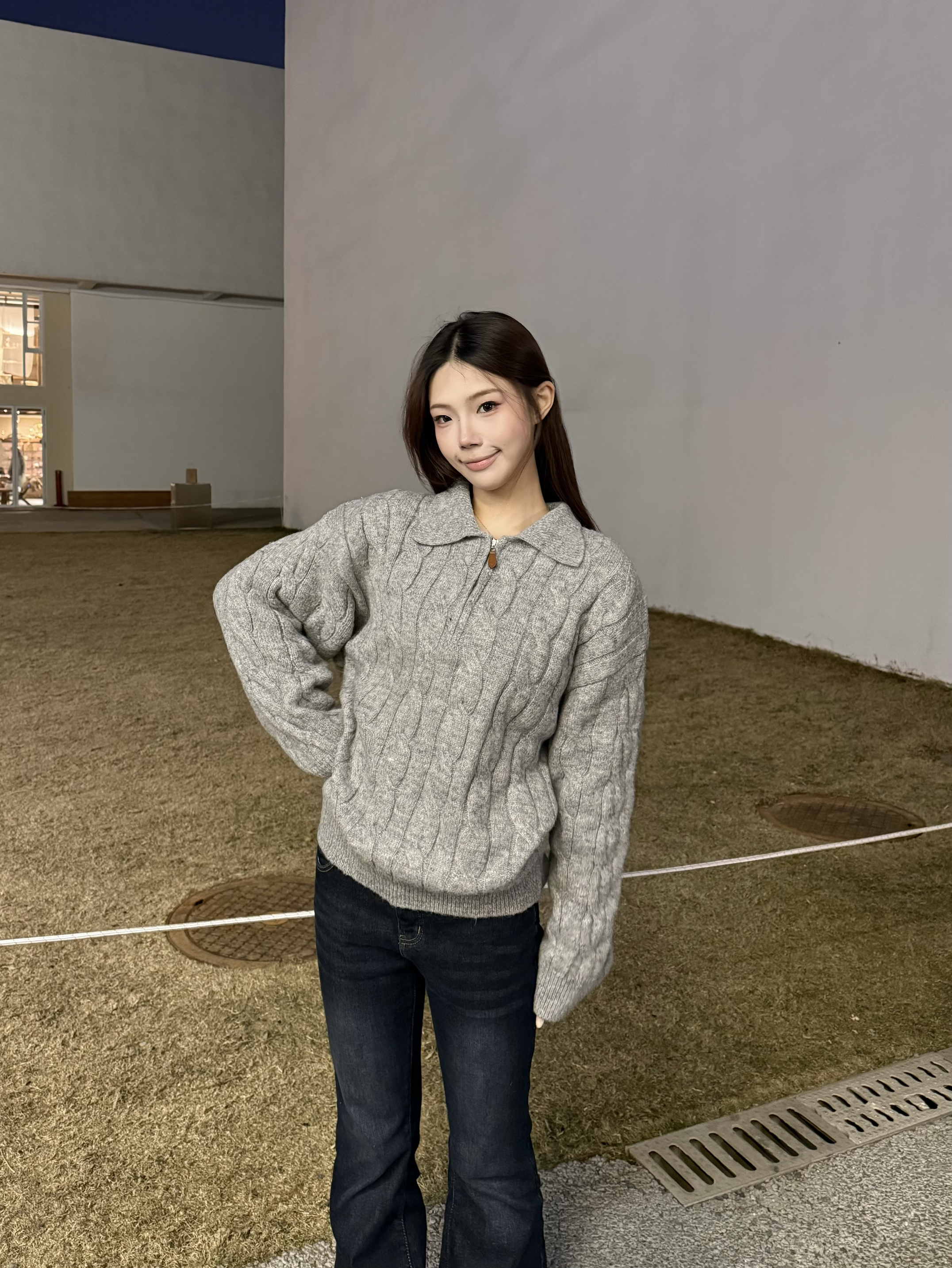 秋冬真的离不开软糯的麻花毛衣~浅灰色调温柔又百搭,半开领的设计还能修饰脖颈线条,搭配微喇牛仔裤刚好拉长比例,踩上厚底勃肯鞋,慵懒松弛的韩系氛围直接拉满,日常出街这么穿舒服又好看✨