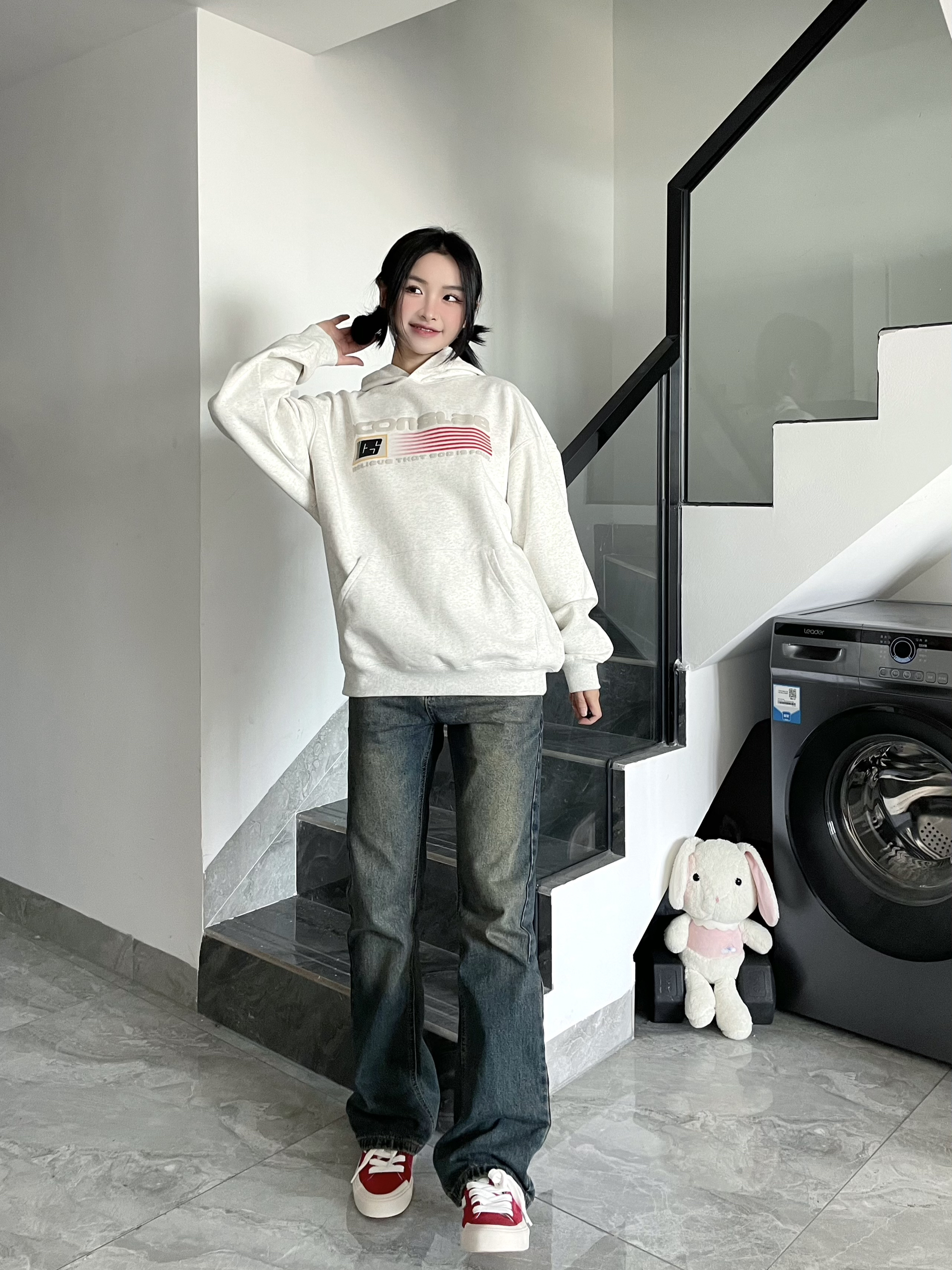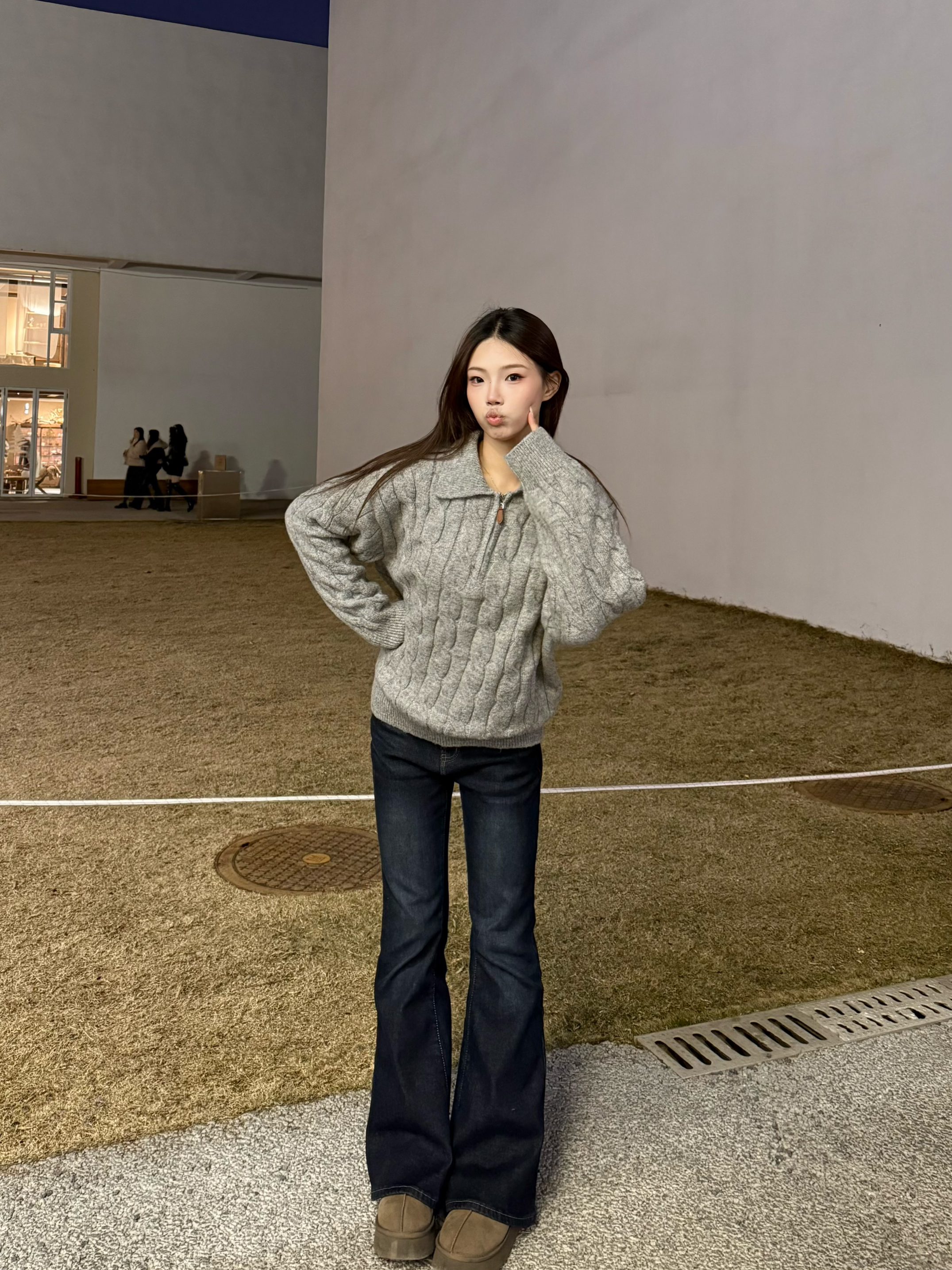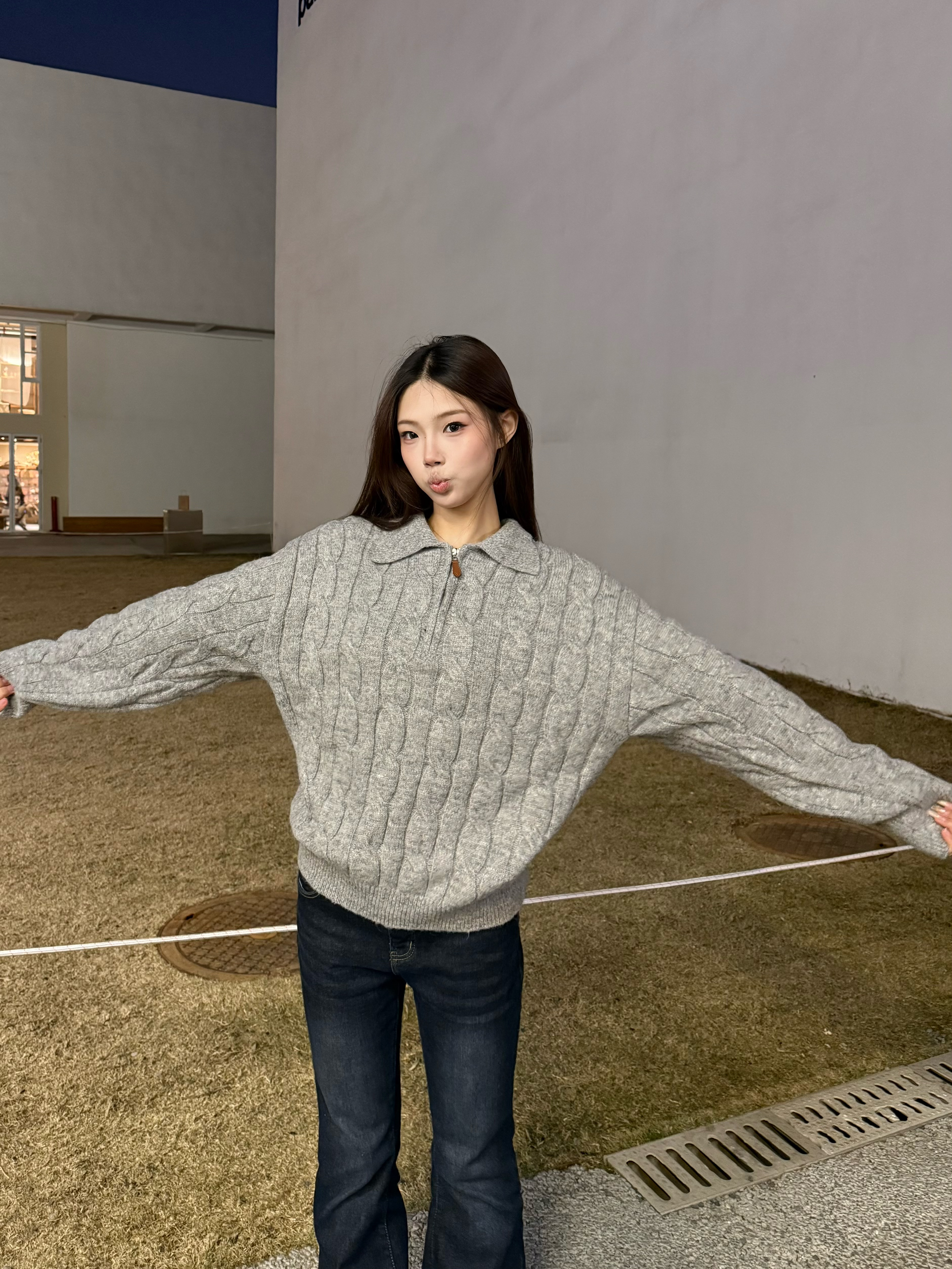秋冬真的离不开软糯的麻花毛衣~浅灰色调温柔又百搭,半开领的设计还能修饰脖颈线条,搭配微喇牛仔裤刚好拉长比例,踩上厚底勃肯鞋,慵懒松弛的韩系氛围直接拉满,日常出街这么穿舒服又好看✨