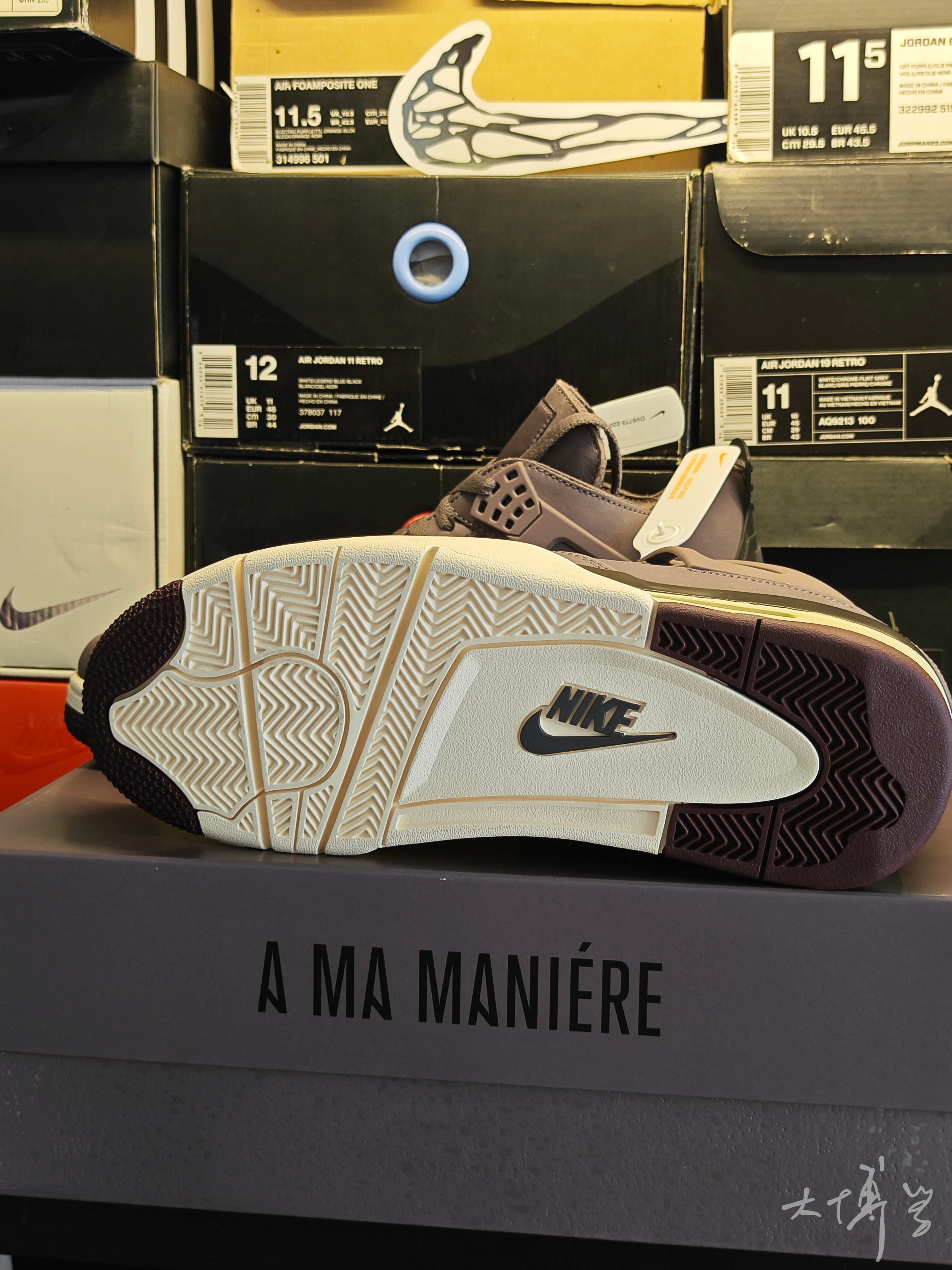 转眼这双amm AJ4都已经发售好几年了 棕色的磨砂皮革,有种热可可的感觉 中底微微发黄,并不是因为氧化 出厂设计就是如此 鞋提、鞋帮隐藏多处小细节 就连鞋垫也是皮革材质 一双配色低调,细节丰富的联名款 小众且不可多得