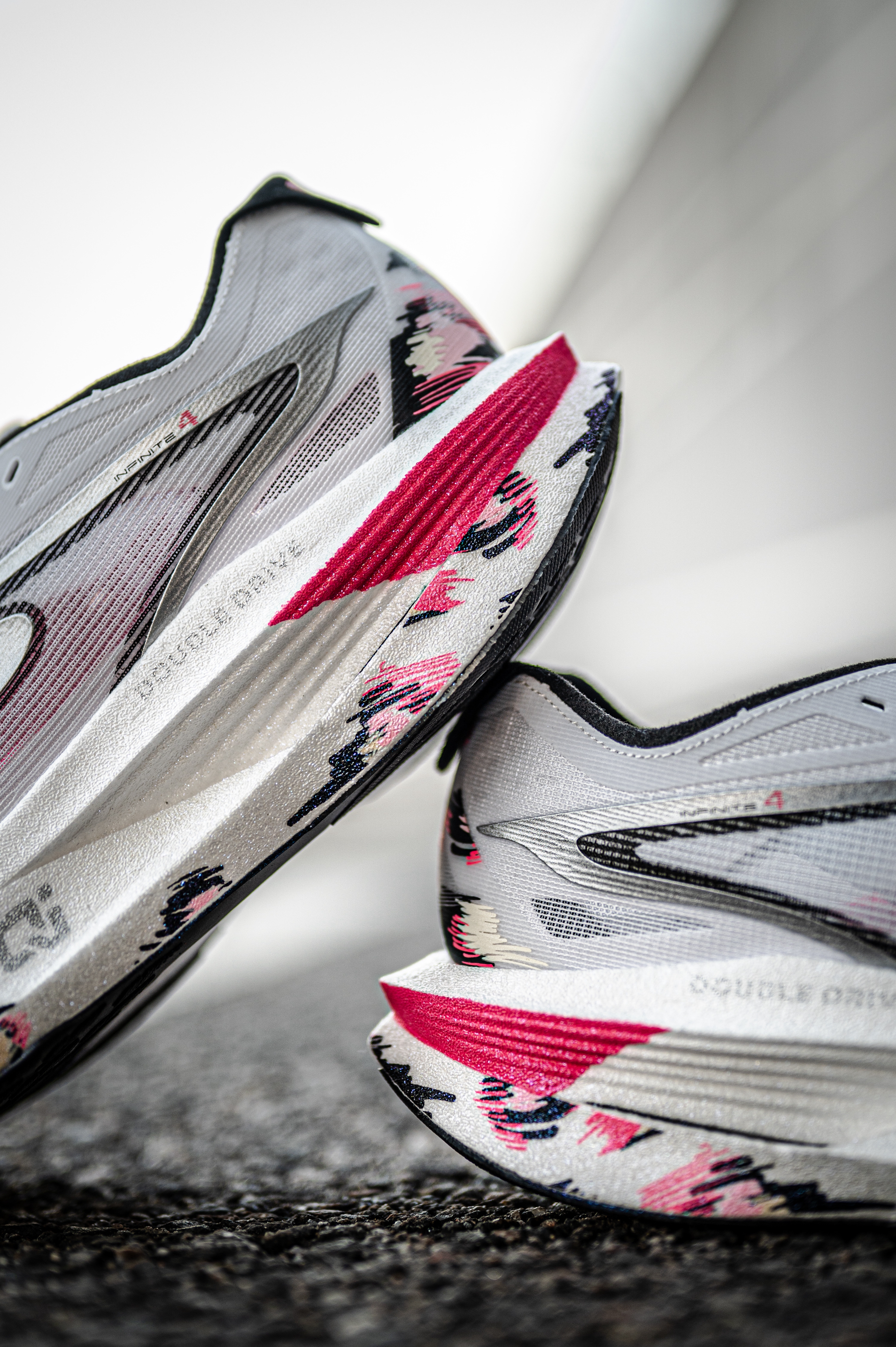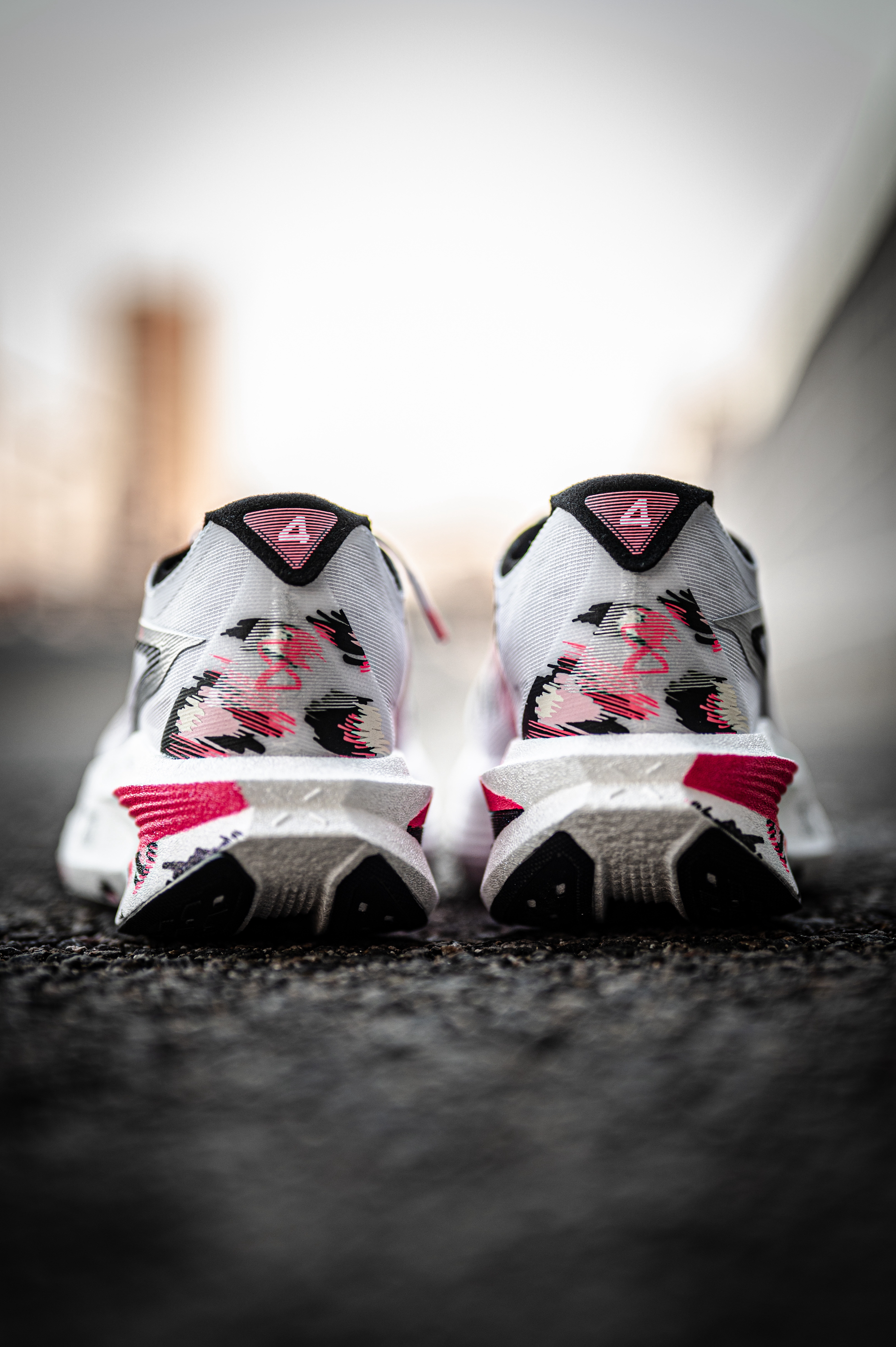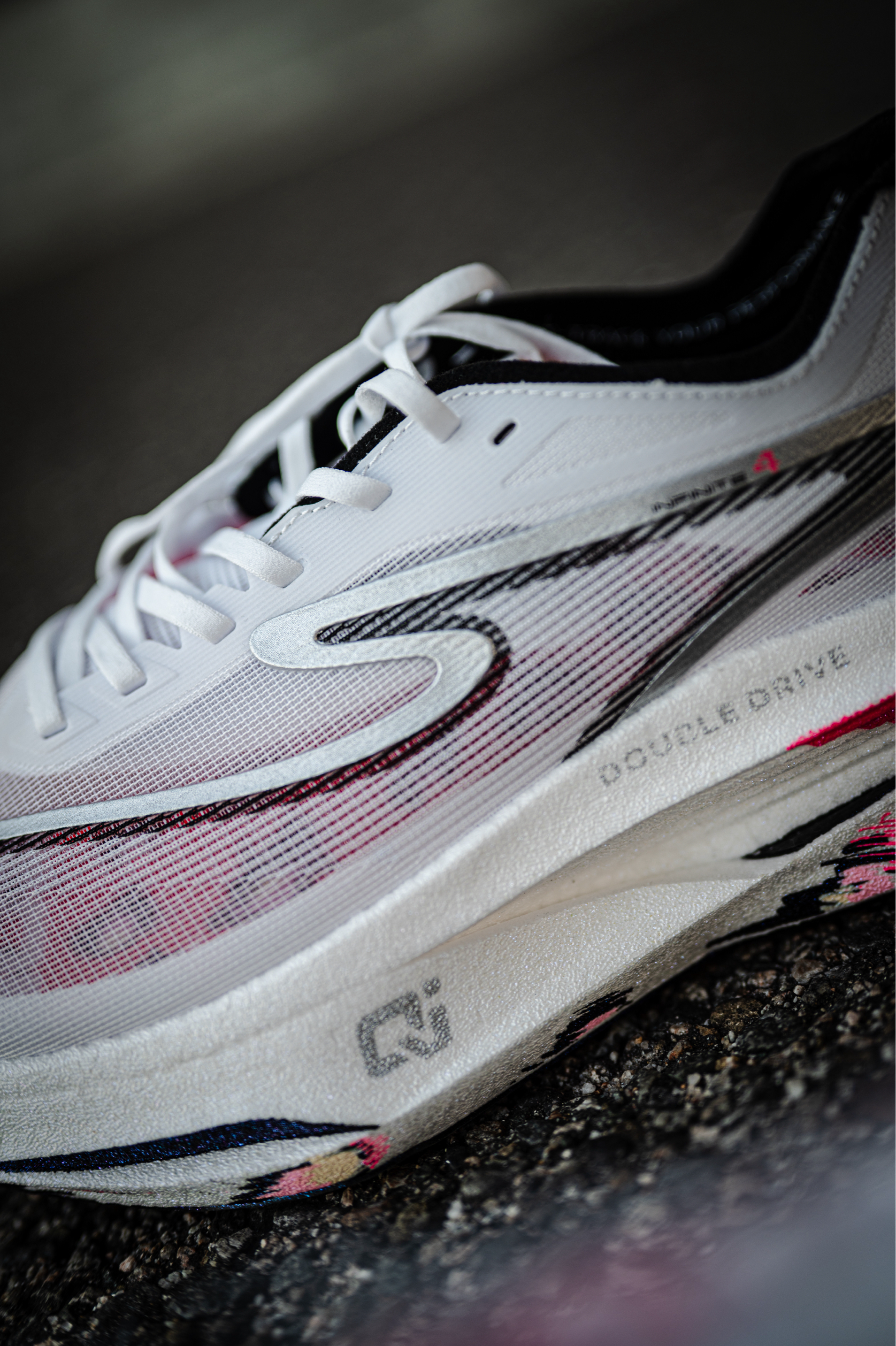对于我们这种马拉松跑者肯定也知道芷境系列了,芷境4.0的到来,升级点还是不小的。 我这款是粉鸿豹配色,白色和一些粉豹色结合,鸿星尔克的LOGO凸显在侧边,颜值方面,我觉得算是偏好看的。 贾卡鞋面、变频竞速系统可以很好地适配不同阶段的马拉松跑者。 炁科技的缓震调校更加韧弹,更加适合偏大体重的跑者,加上碳板这次的升级是比上一代推进提升3.3%。