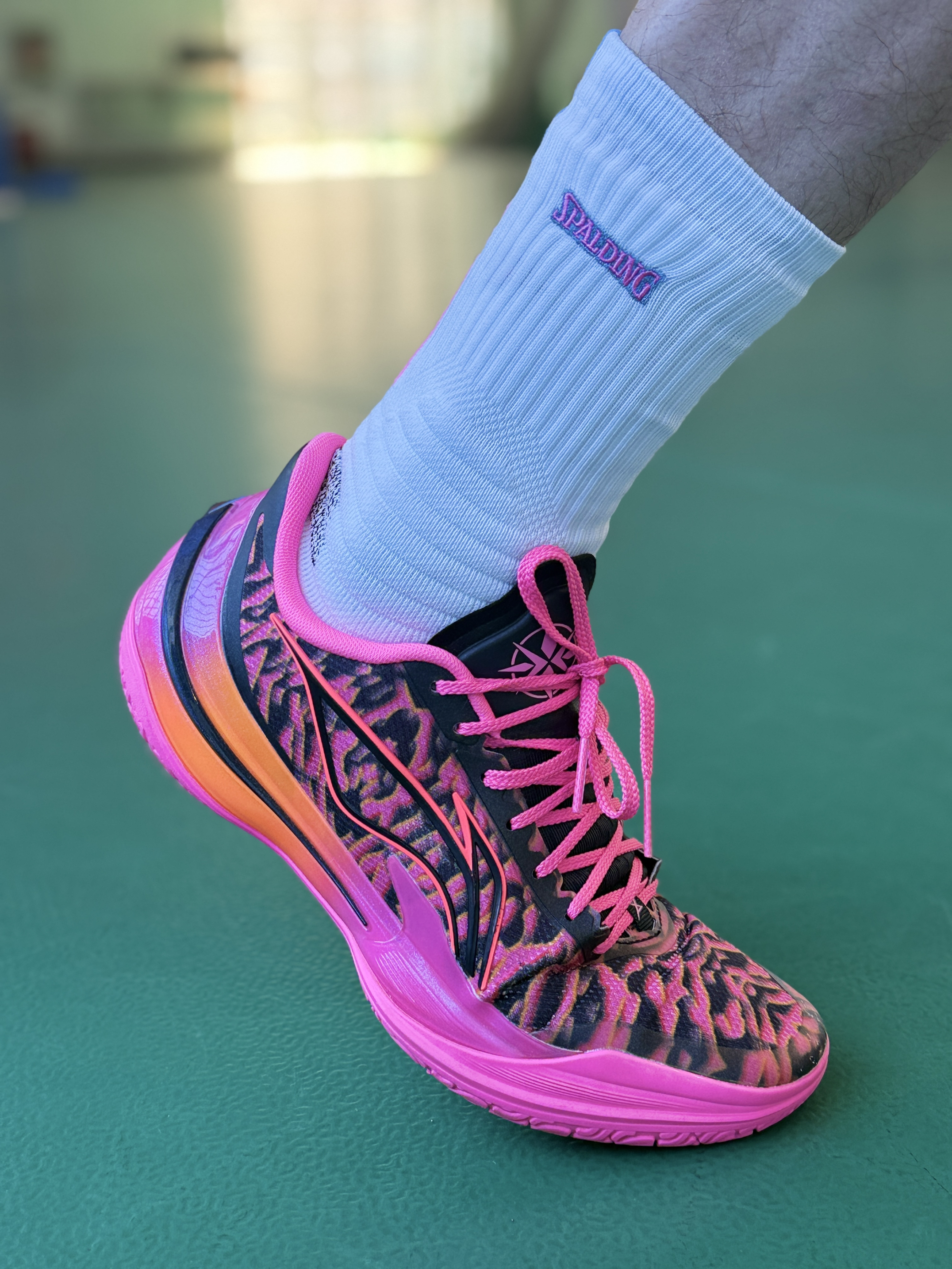 这几天,一直在穿一双篮球鞋,这双飚速BB2代,颜值确实不错!鞋面支撑做了加固,系紧鞋带之后,包裹和鞋脚一体做得很棒! 缓震方面,上脚感受,脚感属于韧弹,起跳落地不震脚! 中底内置碳板,碳板刚性适中。 外底纹路清晰,耐磨和防滑效果不错! 适合后卫和轻体重前锋朋友穿,尺码标准,喜欢的朋友,值得入手试试!