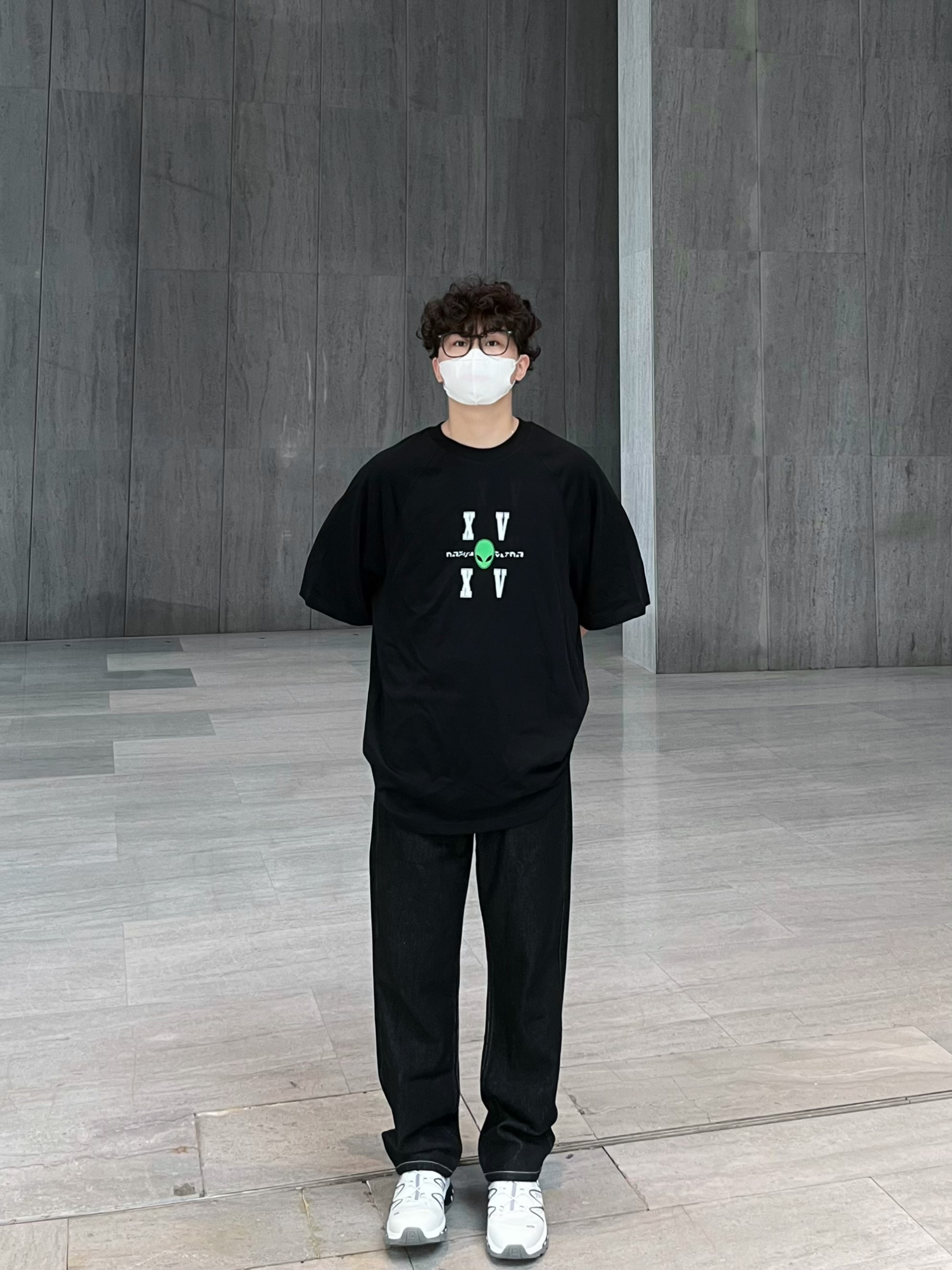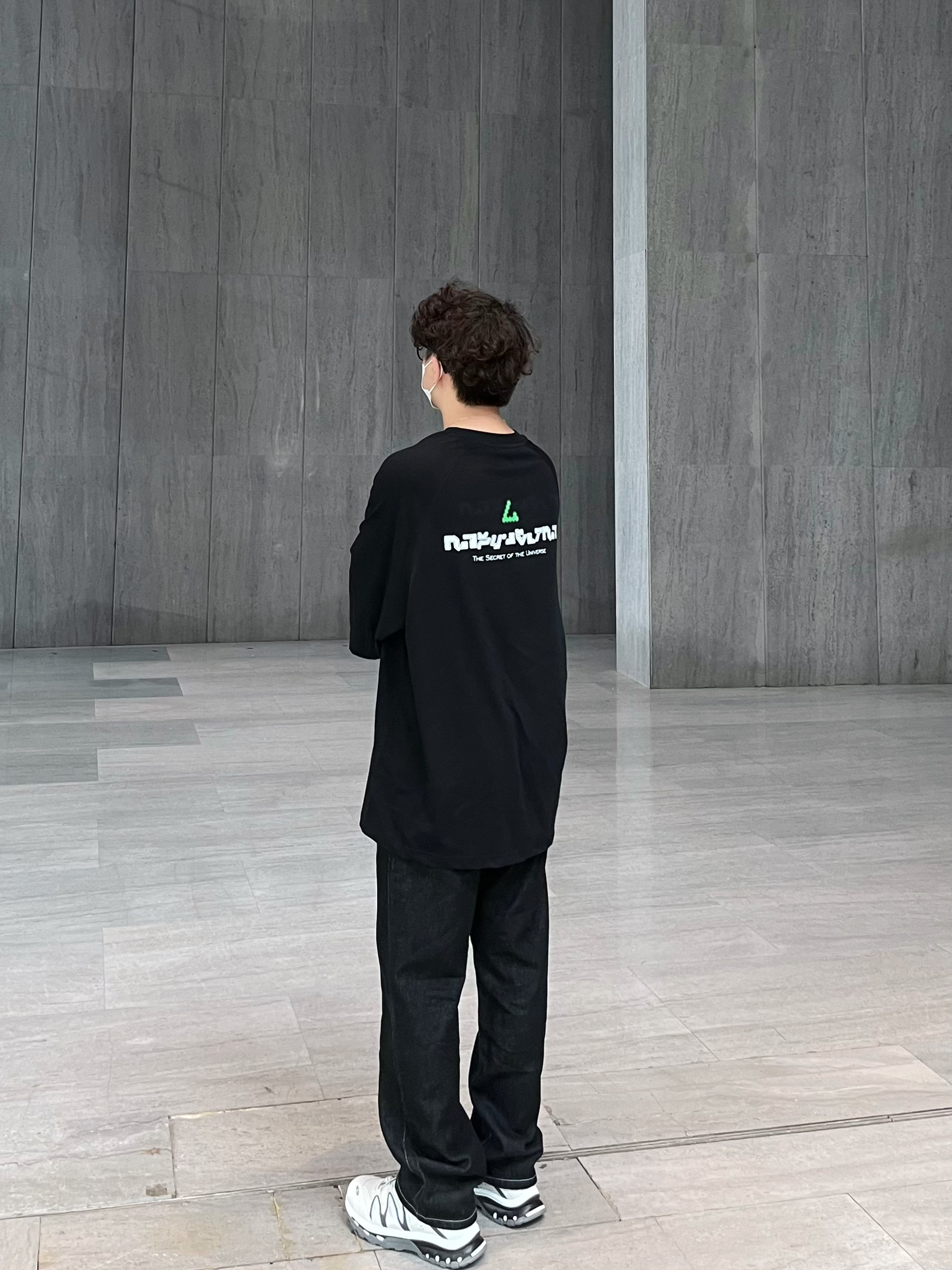如果不知道穿什么🎗️ 黑色系应该是最简单好看的穿搭了! 同色系往往很会拉长身材比例 上身一件宽宽松松的印花T恤🛸 自带复古街头的氛围vibe 裤子是 森马 的黑色牛仔裤 自然的水洗刷色感街头风满满😺 上身就是高高瘦瘦的谁会不喜欢!