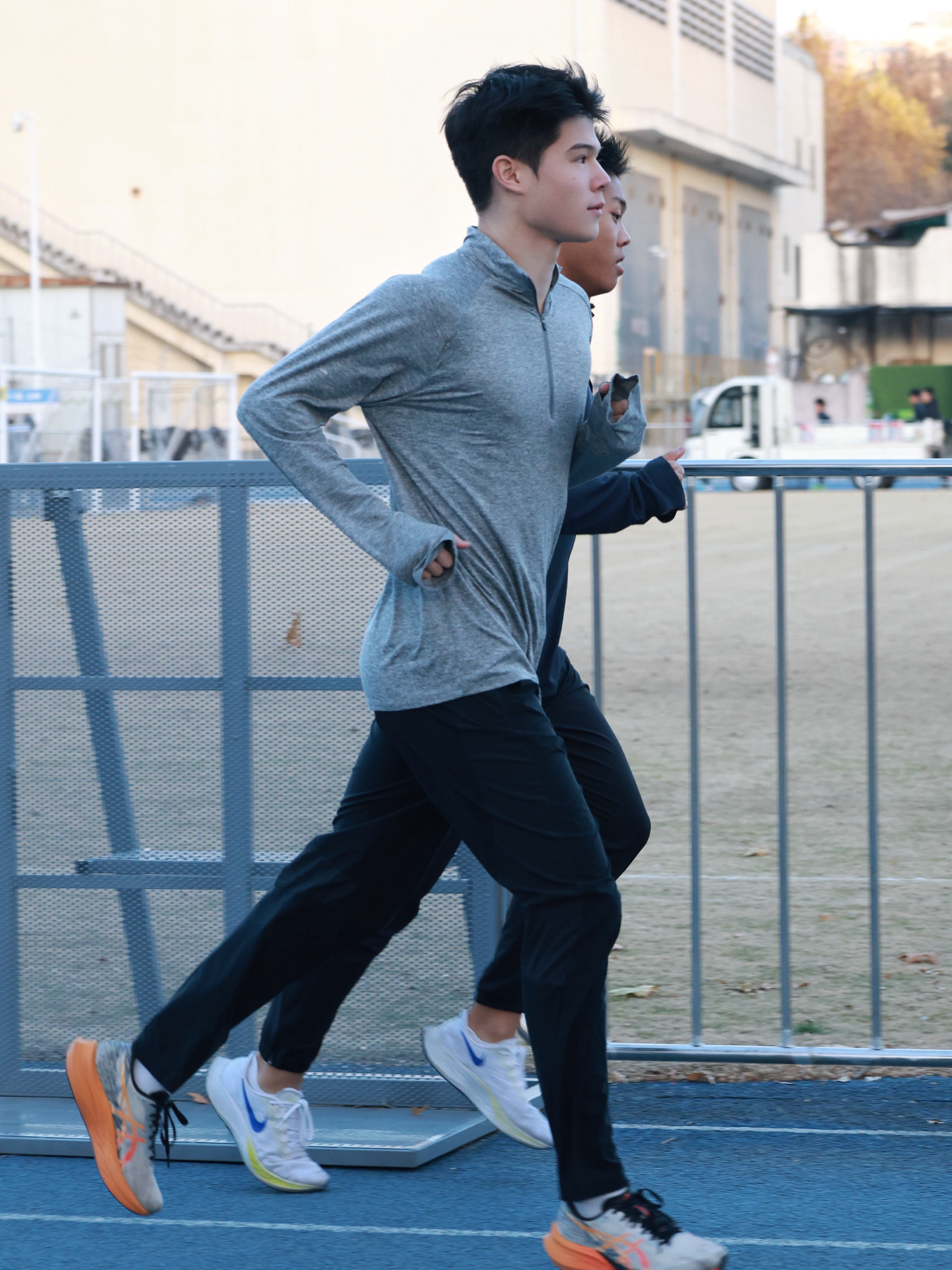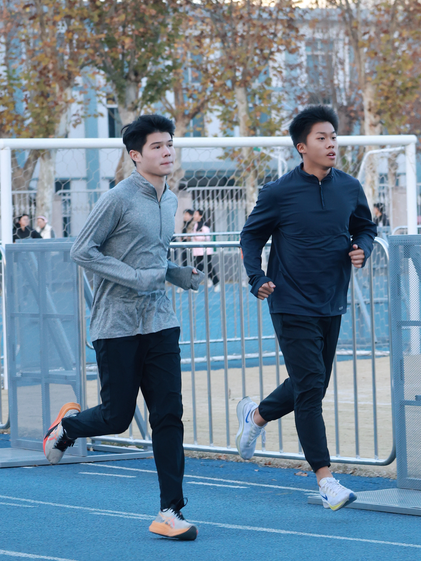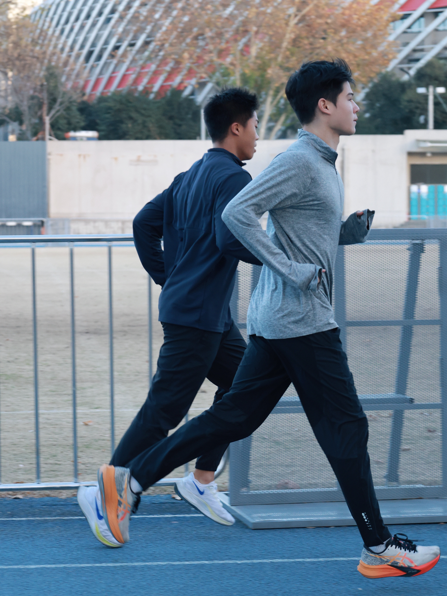 我发现气温合适时,热身后穿运动半拉链卫衣配收口运动裤去跑步,运动感拉满~卫衣面料软乎乎很亲肤,跑几圈也不闷,透气性可以!长裤弹性好跑步没束缚,裤脚收口还能拉锁调松紧,蛮方便~我搭的蓝白色跑鞋色调和谐,就是价格对学生党不算友好🥹 适合像我一样爱跑步训练的朋友参考呀~#田径人冬训穿搭 #跑步穿搭 图片源自网络侵删