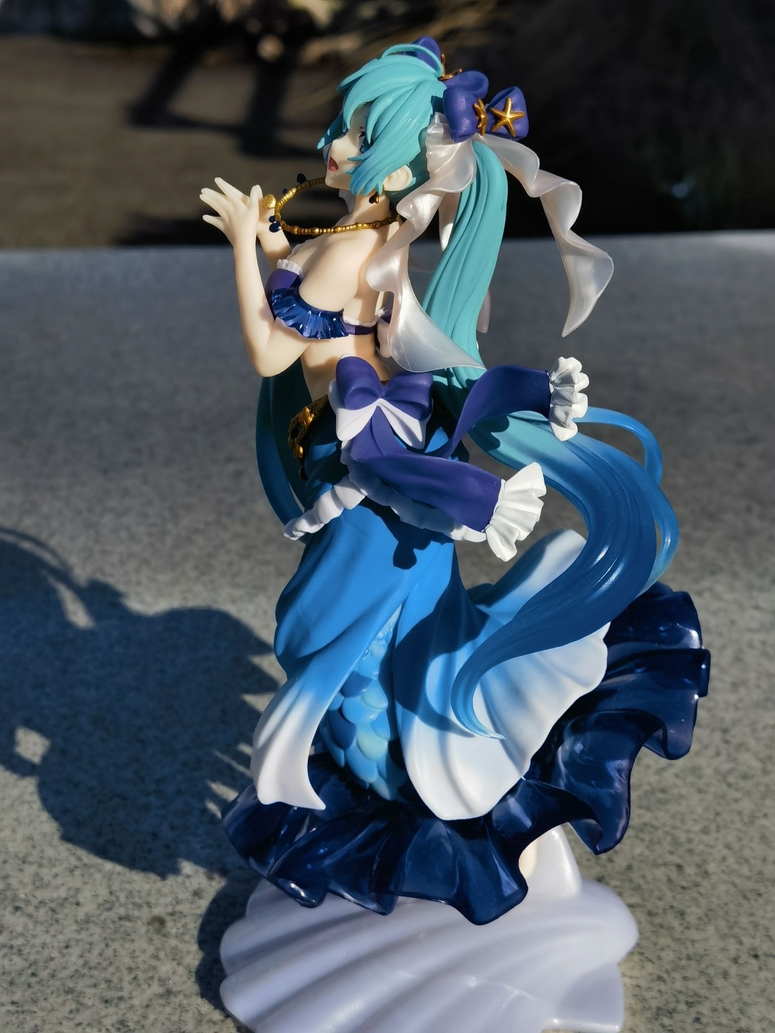 这款taito的美人鱼初音是前几个月买的!到手之后实物惊呆了!太美啦,这不像是100多景品的质量!远超预期!!初音这款整体造型造型就很优秀!服装跟发丝也做了渐变效果!实物在阳光下实景拍摄,出片也太棒啦!飞舞的裙摆,灵动的造型让我很难不爱!
