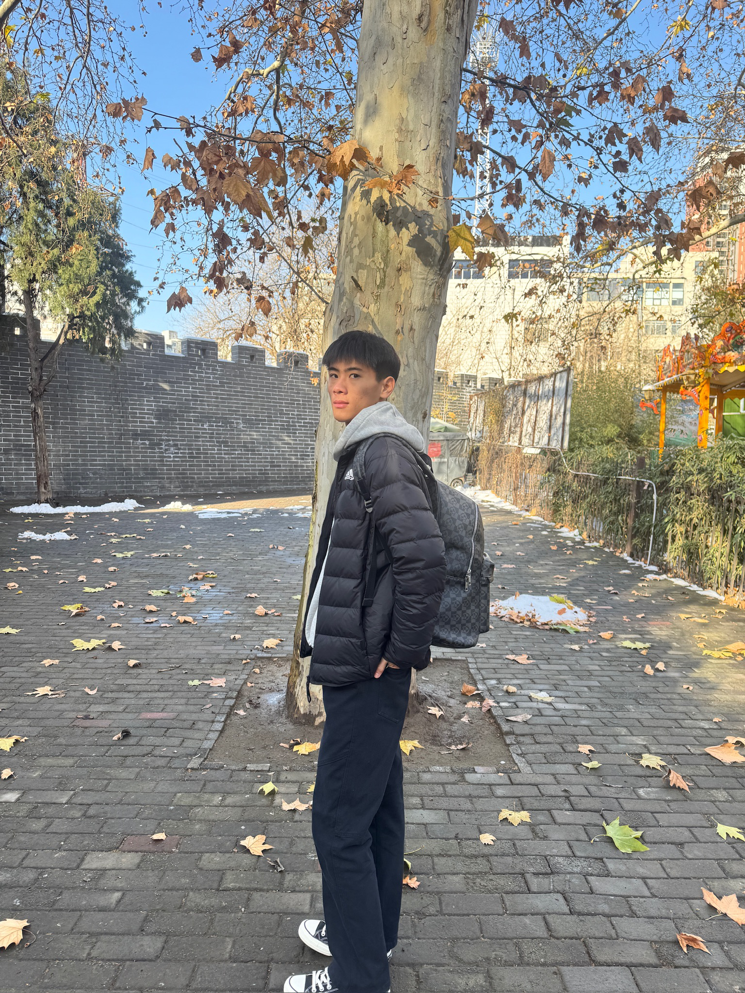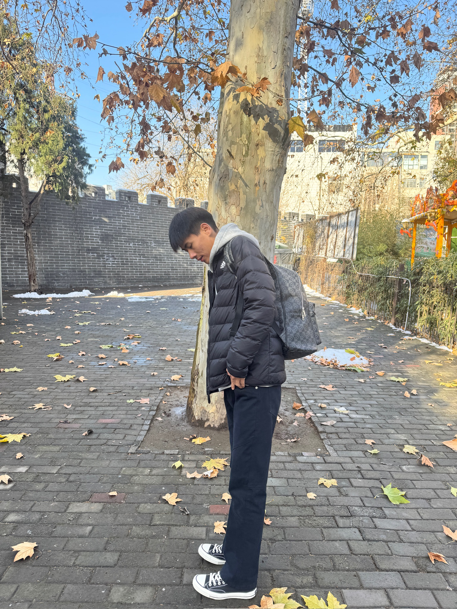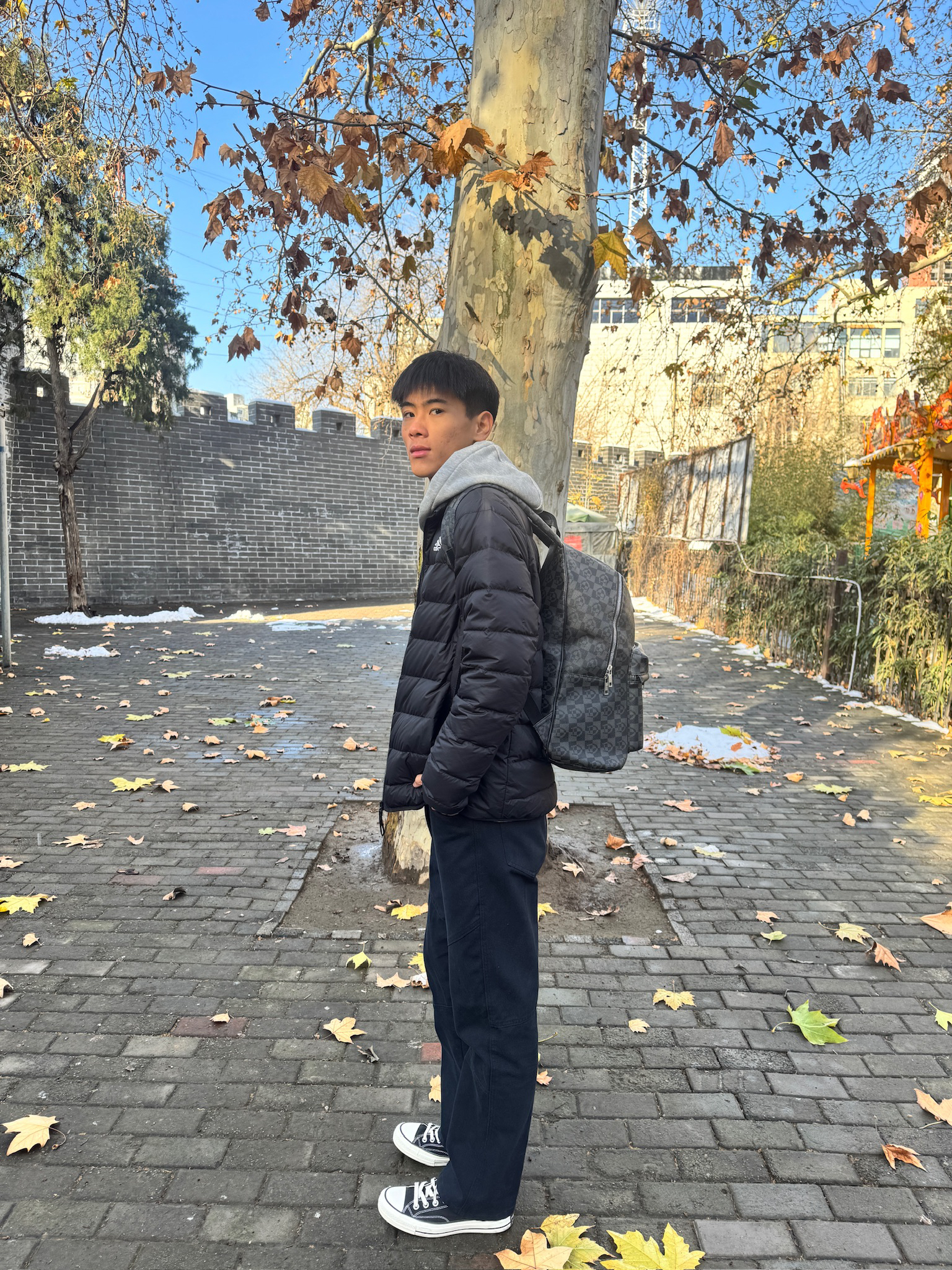 上身的是 adidas 的排骨无帽羽绒服 轻便又保暖 锁温效果不错 虽然只有100g羽绒 但保暖效果不错! 鞋子是converse家最经典的1970s高帮款 男生穿搭必备单品 可以尝试一下 冬天一定要穿的既保暖又好看 给我们整体加分!