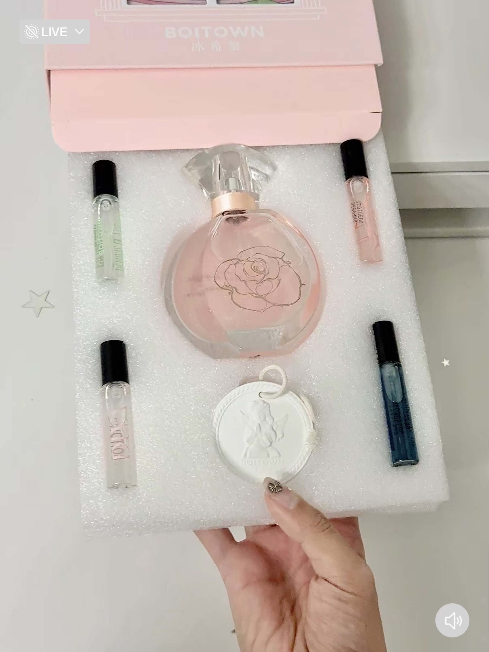 介个香水真的拆开就不想送人了 我发现我选礼物这方面真的有点天赋 打开像是知道了花园的秘密 粉嫩的包装也太戳我了吧💓 里面有幻彩鎏金香水 扩香石 还有四个香味不同的小样 刚开始闻起来是柑橘的香味 中调飘来阵阵玫瑰铃兰的香气 后调闻起来是檀木调 🌷 整体奶香又治愈的感觉 无论什么场合都可以轻松驾驭
