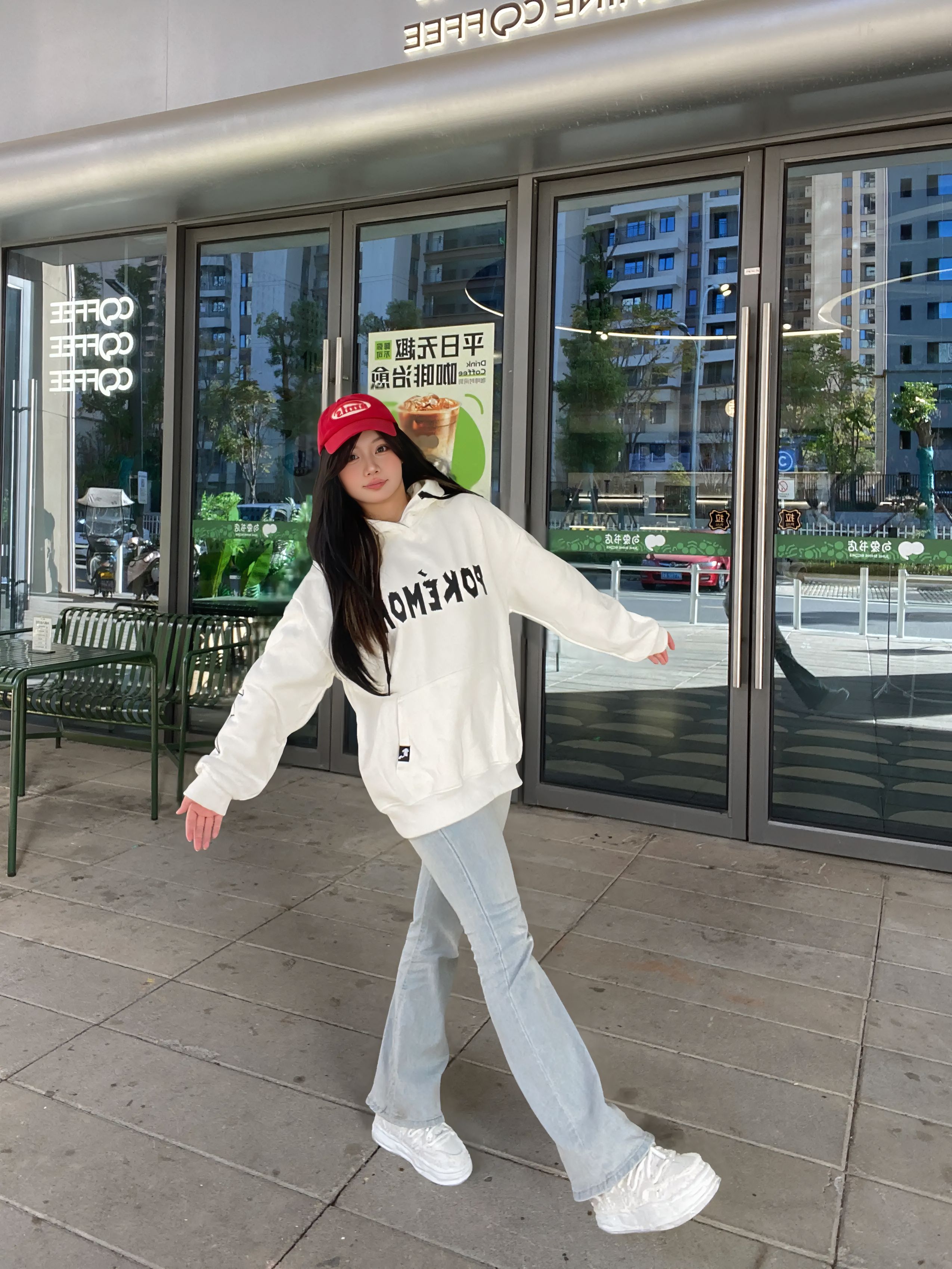 今日是随性的休闲穿搭~oversize的白色宝可梦印花卫衣,宽松版型上身舒服,搭配浅蓝微喇牛仔裤,轻松拉出腿长比例,小白鞋更是休闲风的灵魂搭档。再戴一顶红色棒球帽点缀,瞬间让简约的穿搭多了几分活力感,随手比个耶,氛围感直接拉满,真的超级出片~这种不费力的穿搭太适合日常出街啦,舒服又上镜,谁穿谁好看!