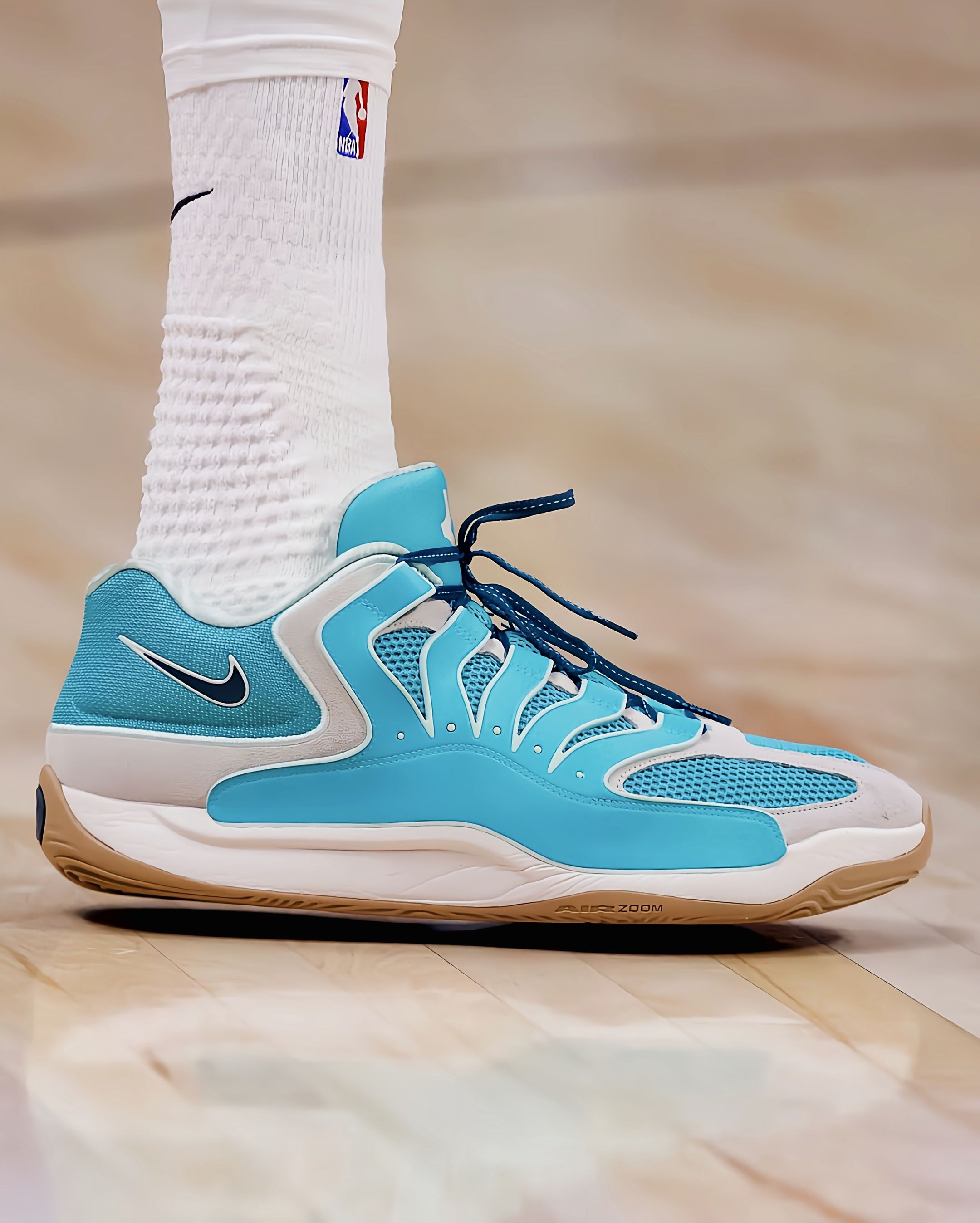 蹲火箭对掘金的比赛,全程被阿杜脚上的鸭绿色KD18吸引,这配色在球场上也太亮眼了吧,浅绿主调配生胶底,复古又清爽,视觉上就赢麻了。 看阿杜在场上的表现更能感受到这鞋的实战性,突破时蹬地的动作特别流畅,急停跳投落地也很稳,完全看不出鞋身有拖沓的感觉。网眼鞋面看着透气性就贼好,毕竟阿杜打满高强度比赛,脚感舒适度肯定在线。后跟的包裹从镜头里看也很贴合,变向时鞋身和脚的贴合度超高,一点不晃。 作为...