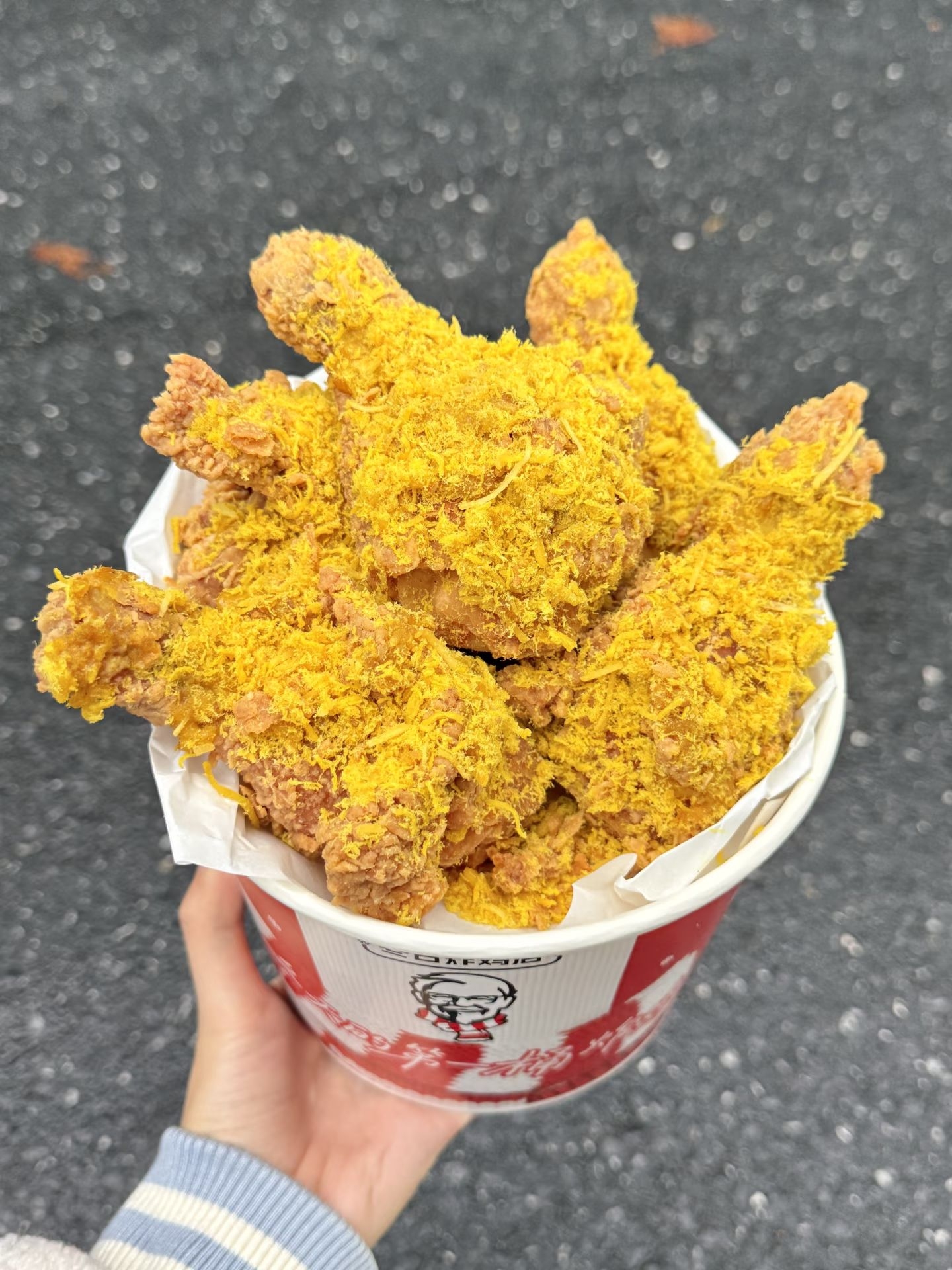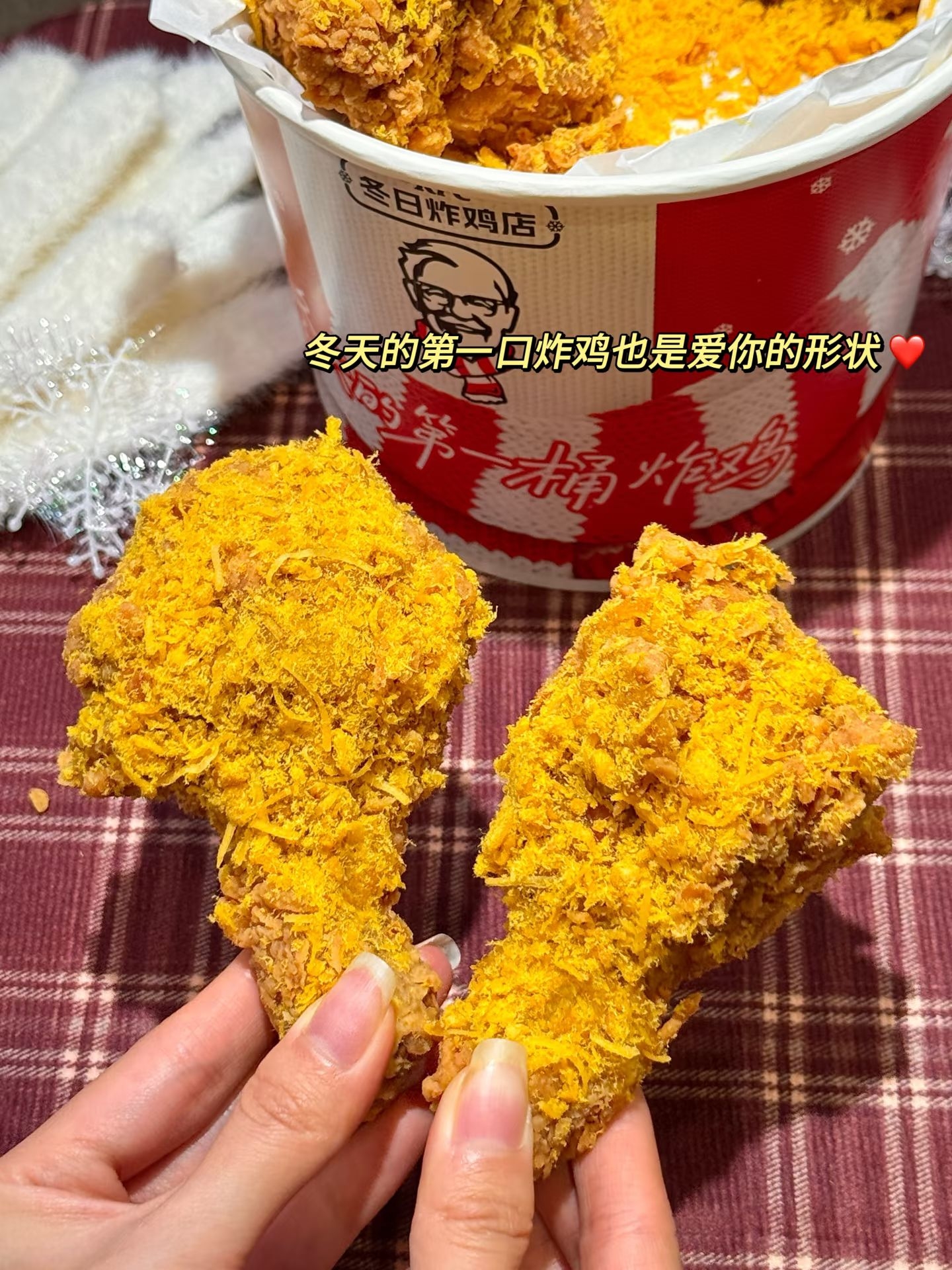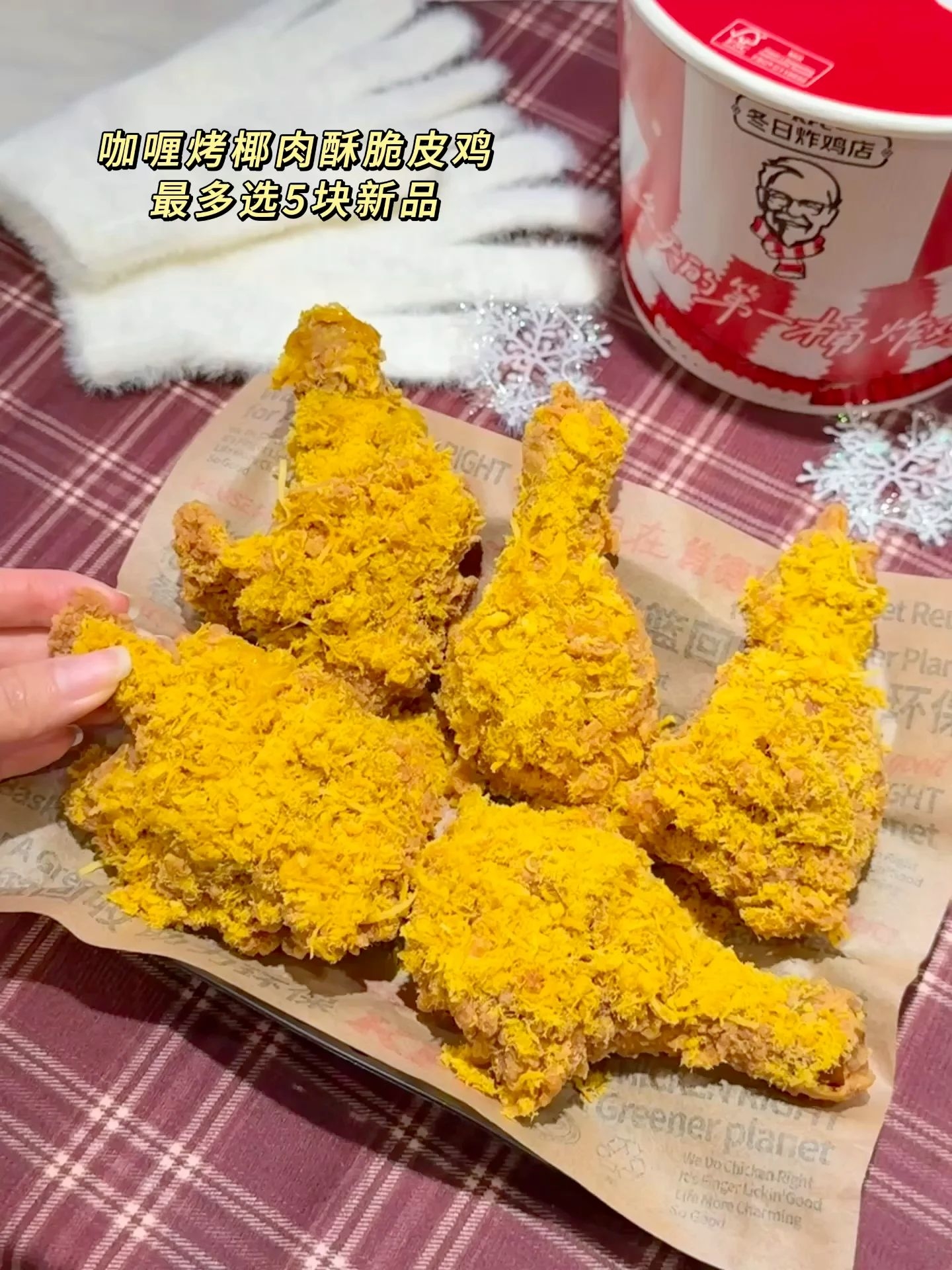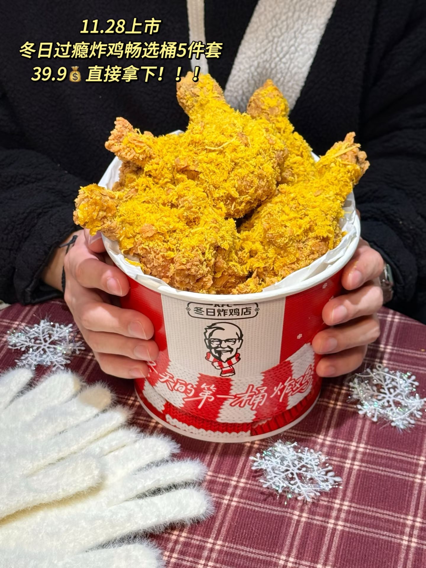 冬天裹着毯子就馋热乎的!KFC这冬日过癌炸鸡桶直接戳中馋点——咖喱烤鸡款外脆里酥,咬开是裹着淡咖喱香的嫩肉,越啃越入味。5件套的分量刚好够解馋,冷天里捧着热乎的桶,不管宅家追剧还是摸鱼当加餐,暖香感裹满全身,冬天的快乐这一桶就给齐了~