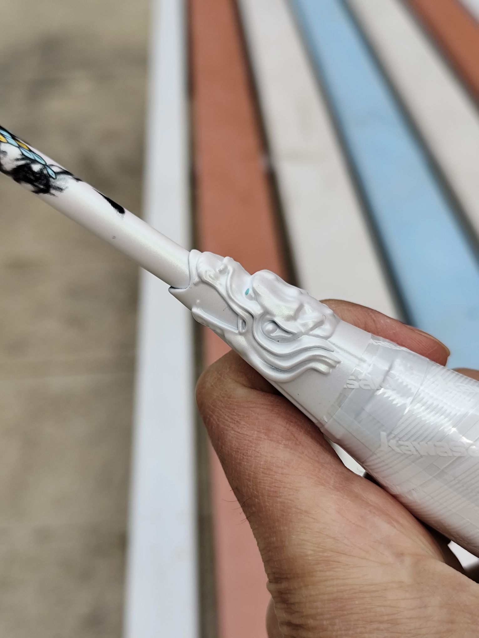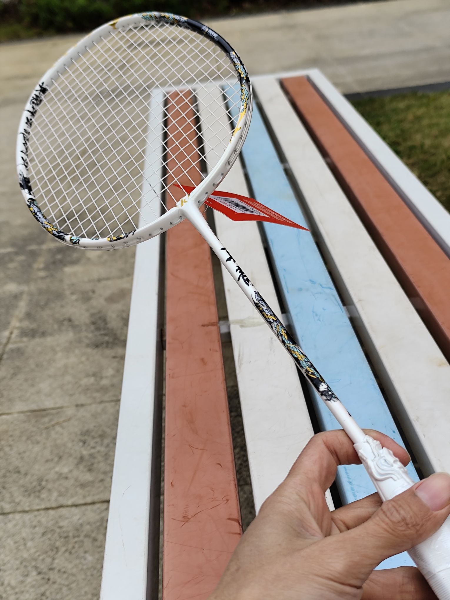 是不是现在的球拍都这么追求颜值了? 真龙现身,龙的标识太有个性了! 这支拍子特别吸引眼球, 而且球拍的弹性好,手感好, 想去球场上展示一下![耍帅_blue]