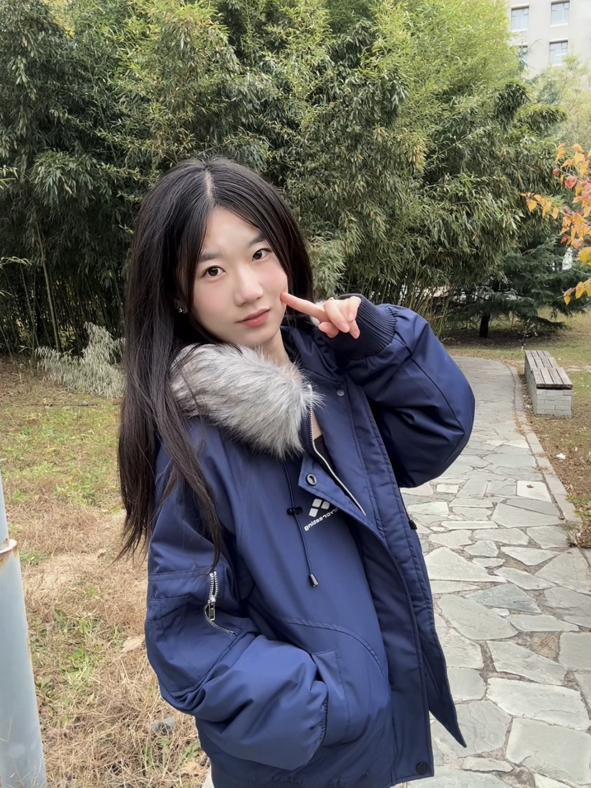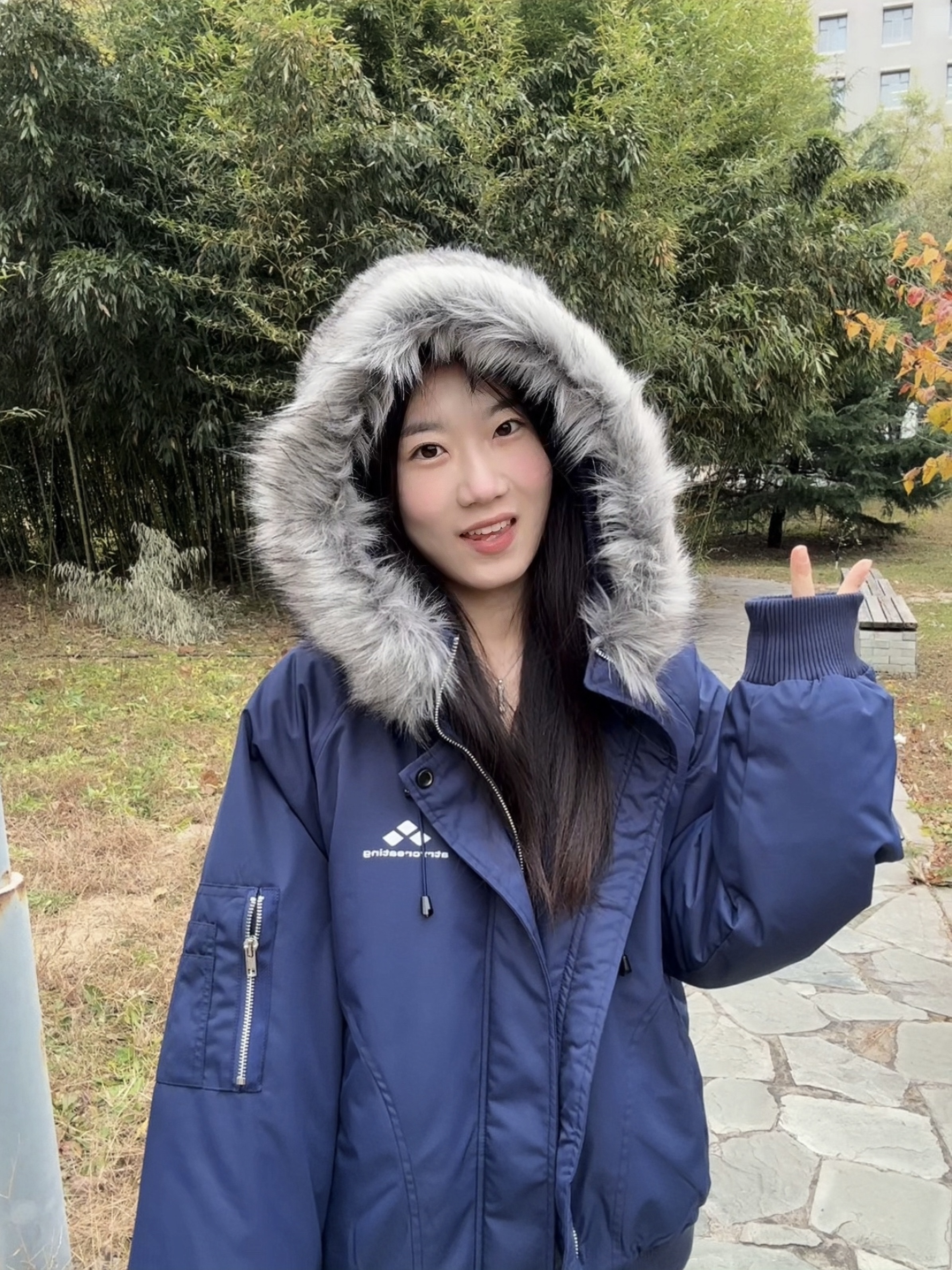 它的藏青色真的绝, 黄皮穿也能直接提亮一个色号, 毛领可拆卸的设计太贴心, 我真的好喜欢毛茸茸的毛领子 给人一种安心感 冷的时候装上毛领,又暖又有氛围感, 稍微暖和点拆了毛领,瞬间变身利落小外套, 一件顶两件穿。 我穿的s码 宝宝们做参考奥