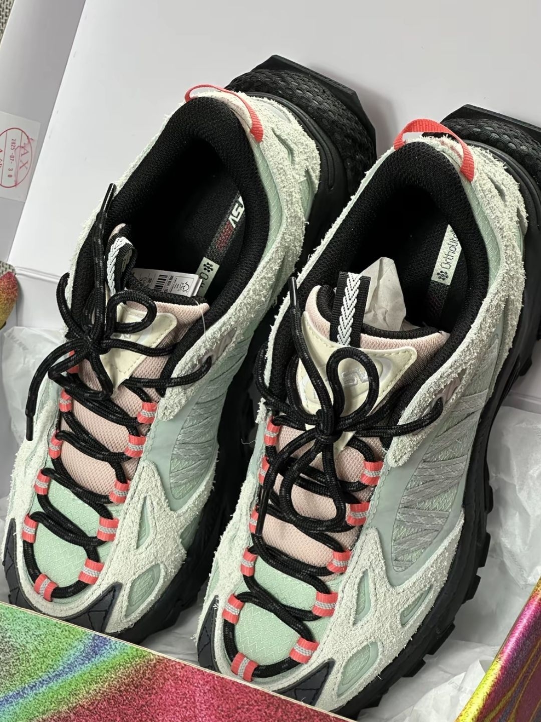 一看到这个绿粉的配色 我就走不动道了🥹 立马给自己入手了一双 实物比图片还要好看 上脚很软很舒服 增高也ok 尺码很正 通勤运动都百搭🥰