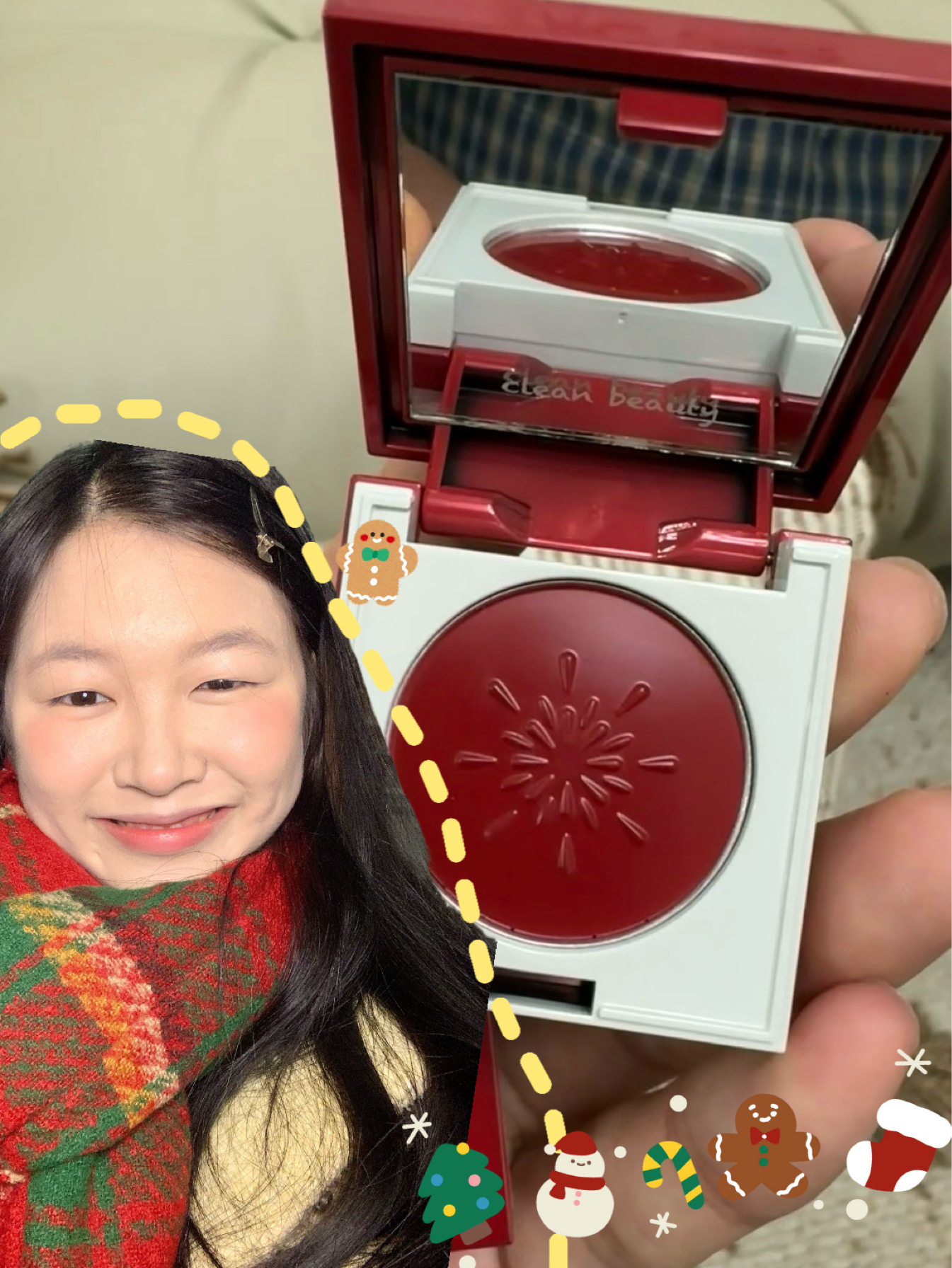 “宝宝们!我跟你们说我最近新入的RC多用膏,叫‘维奇’那个色号,是RC新品圣诞节限定简直是冬天氛围感神器!你看这质地P5是那种润润的膏状,涂嘴唇是透亮的糖渍红番茄,涂脸颊就是嫩到掐出水的红晕,显白到发光!有一种忍不住要开始唱圣诞🧑🎄的一般。 关键它是多用的啊!出门不用带腮红+口红,揣这一小盒就够了,而且它很润,嘴巴👄起皮完全不会影响涂涂来的效果配我那件红格子围巾巨搭!这颜色一涂整个人都亮起来了...
