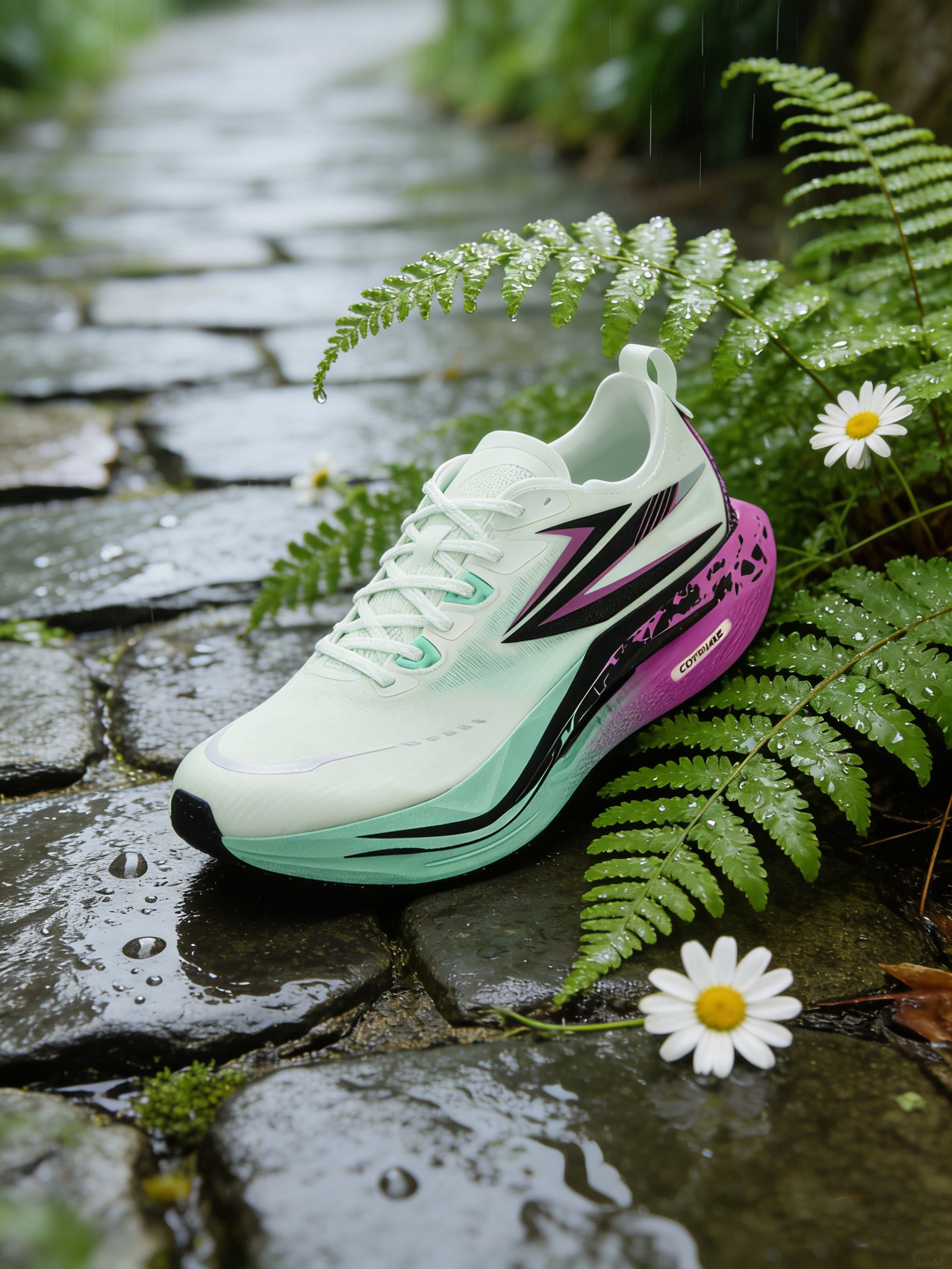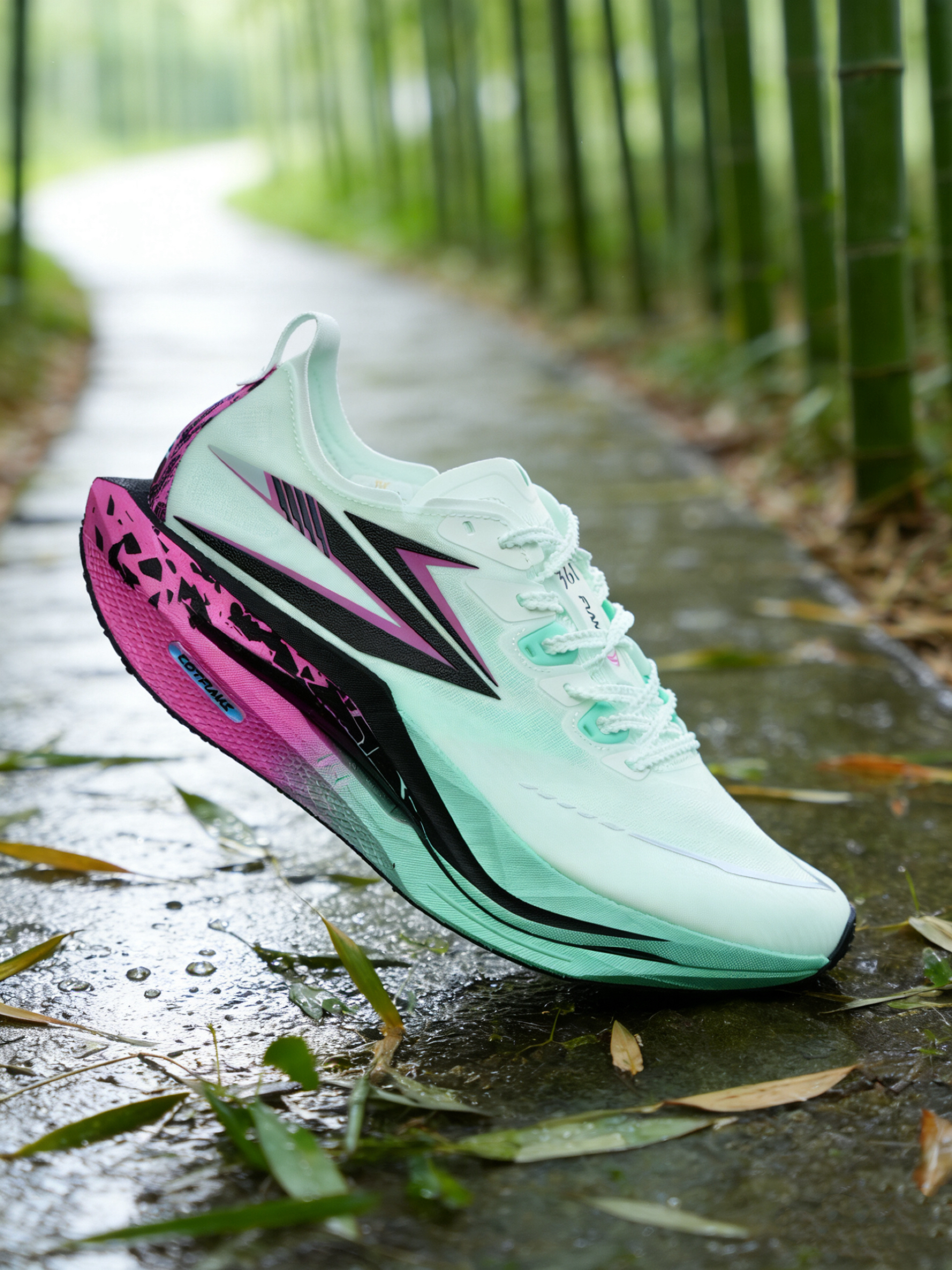 上脚361°飞燃5青粉配色实测, 中底升级的QU!KFOAM ULTRA PRO泡棉 搭配全掌铲型碳板,竞速时推进感更具爆发力, 鞋面的MONO纱材质兼顾轻量与透气, 春夏跑训的脚感很清爽。 不足是鞋楦依旧偏窄,宽脚者前掌挤压感较明显, 大底的耐磨橡胶仅在关键区域覆盖, 长距离柏油路跑后纹路有轻微磨耗。
