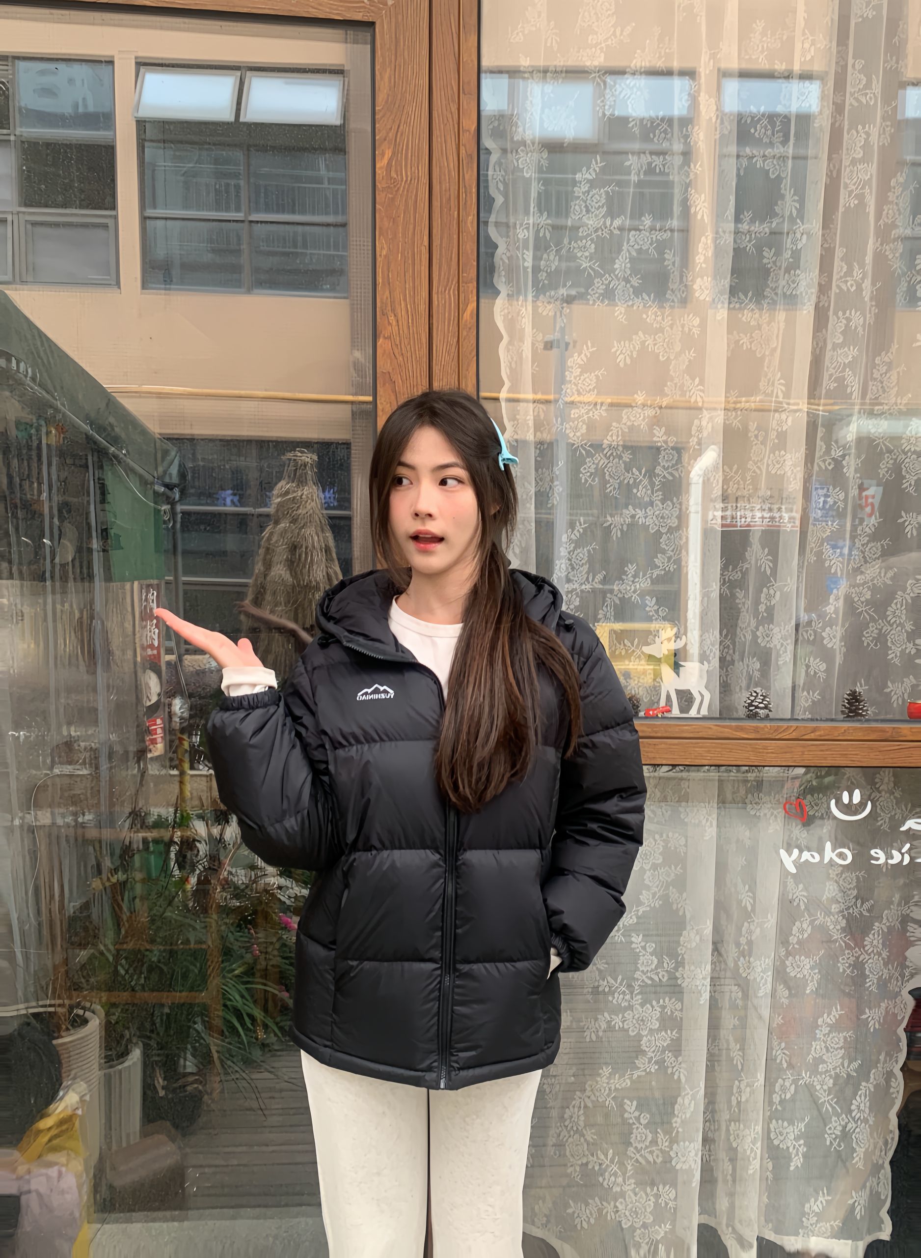 当时买黑色羽绒服是想着更耐脏,像我这样每次吃饭或者干嘛会把脏东西曾在衣服上的人来说真的很需要 碰到啥也没那么有负担 这件衣服的版型很好,➕上黑色配色,有很明显的显瘦效果 我里面只穿了一件普通的没加绒的打底 但还是一点也不冷 口袋的拉链设计可以防止手机这些东西掉出去 满满安全感哈哈哈