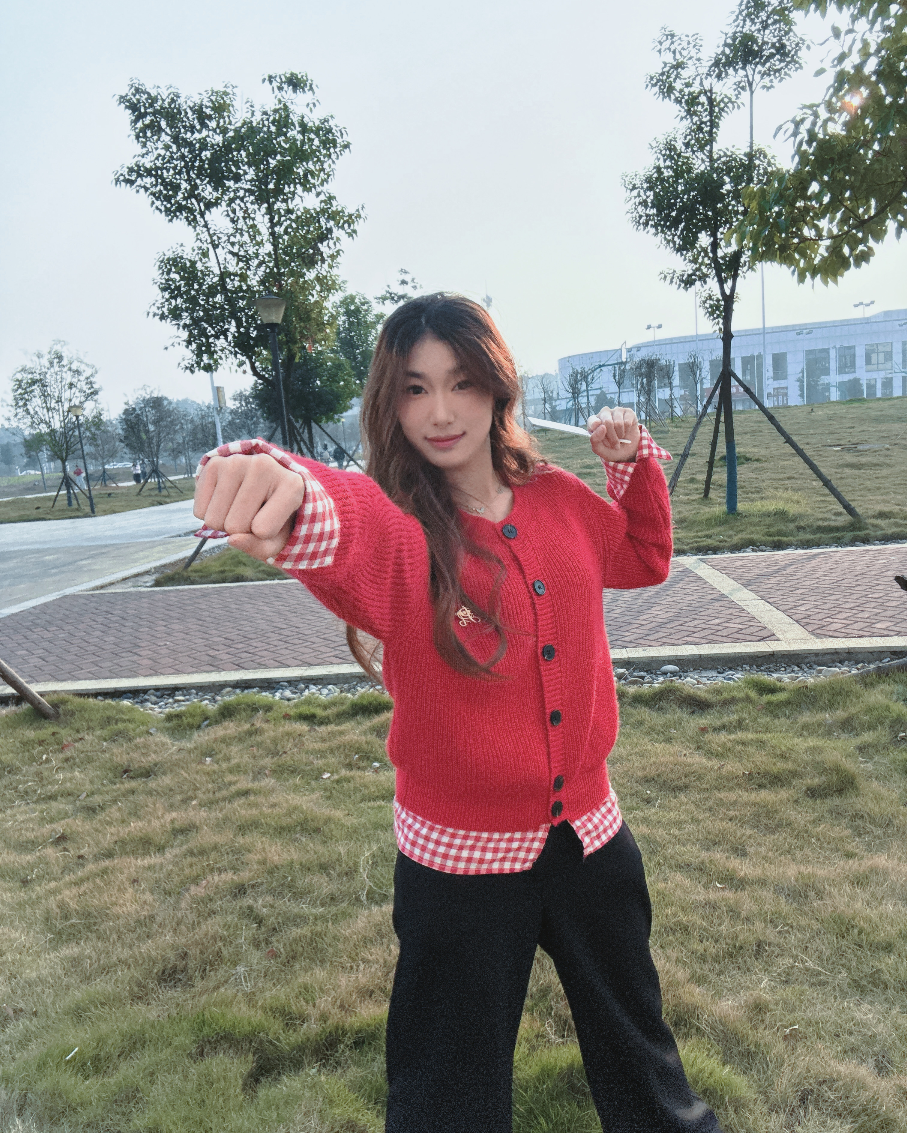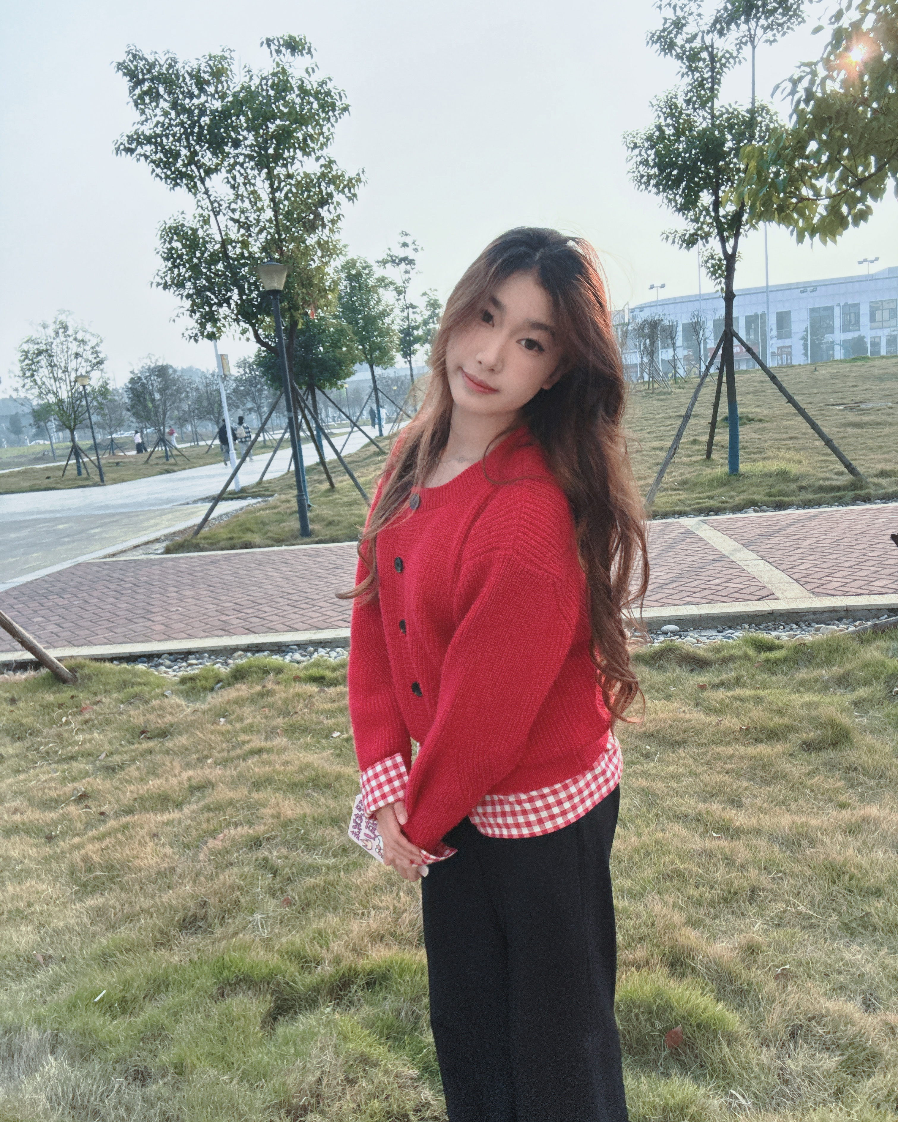校园散步我就这样~红色针织开衫叠穿红白格纹内搭,撞色的小细节一下子就戳中审美~搭配黑色阔腿裤,慵懒又显瘦,踩着落日的光在户外晃悠,风里都是自在的味道🍂即保暖又好看 简直直戳人心 穿来晃悠校园再适合不过啦
