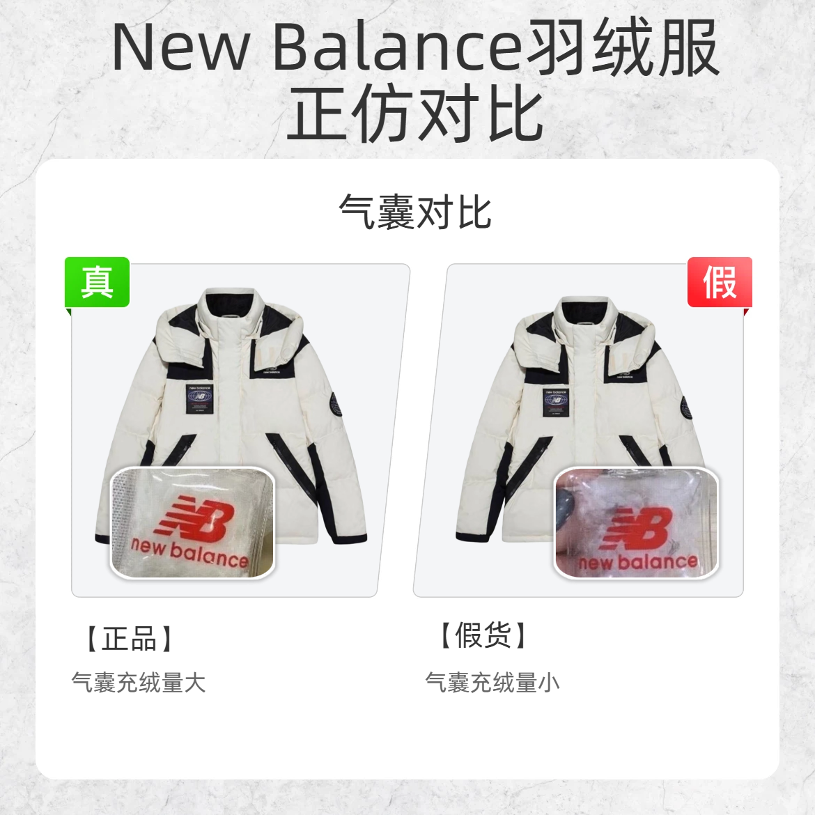 NB 这件黑白羽绒服也太戳冬日审美了!但假货细节真的藏不住,这 3 个鉴别点赶紧码住👇 1️⃣ 衣领标 ✅正品:衣领标上的尺码字母(比如 XL)字体大,清晰醒目 ❌假货:尺码字母偏小,看着局促又廉价 2️⃣ logo ✅正品:胸前 logo 是深蓝色,色调柔和有质感 ❌假货:logo 颜色偏深,是沉闷的蓝黑色,一眼就能看出色差 3️⃣ 气囊 ✅正品:气囊区域充绒量很足,鼓胀饱满 ❌假货:气囊...