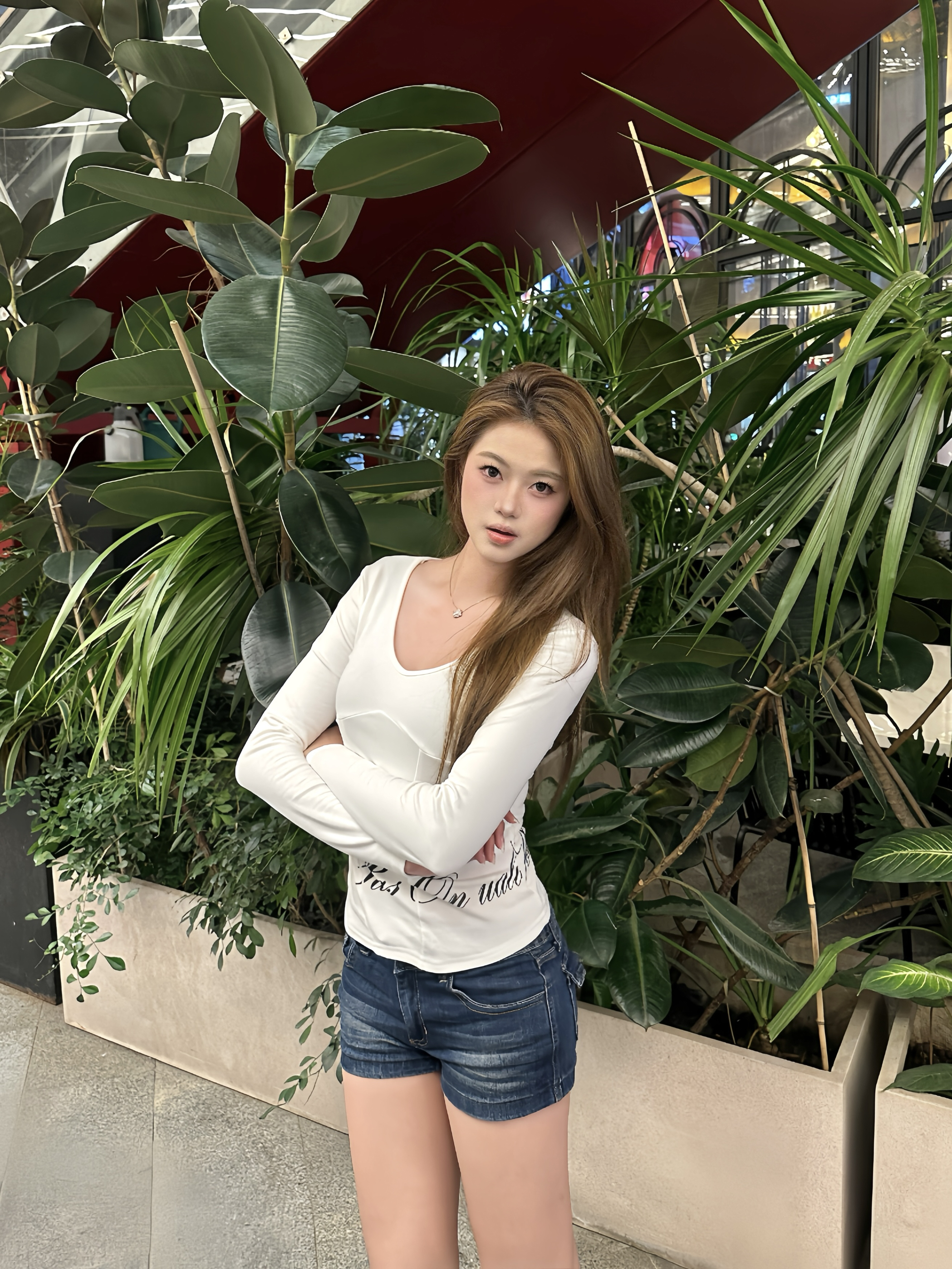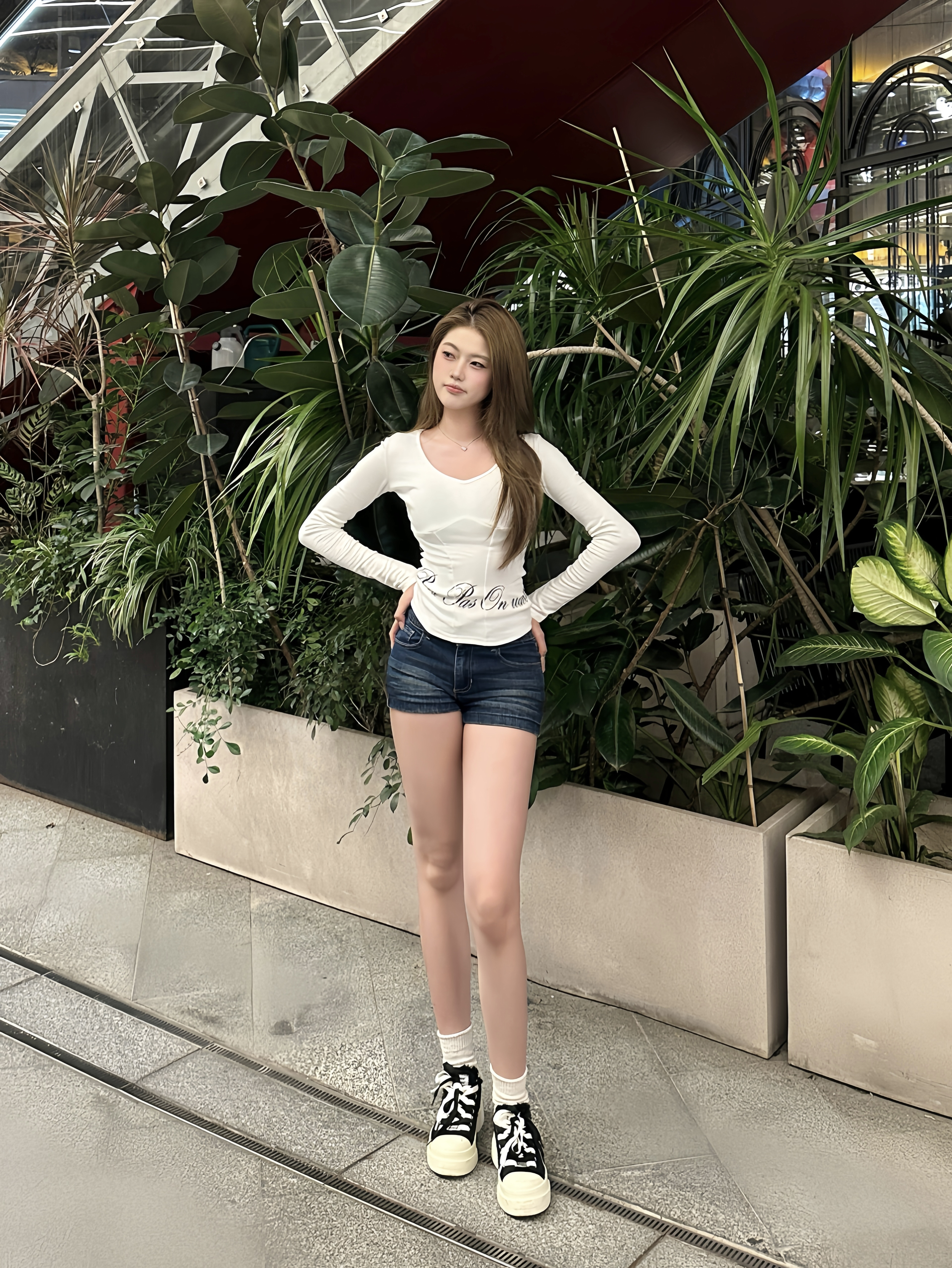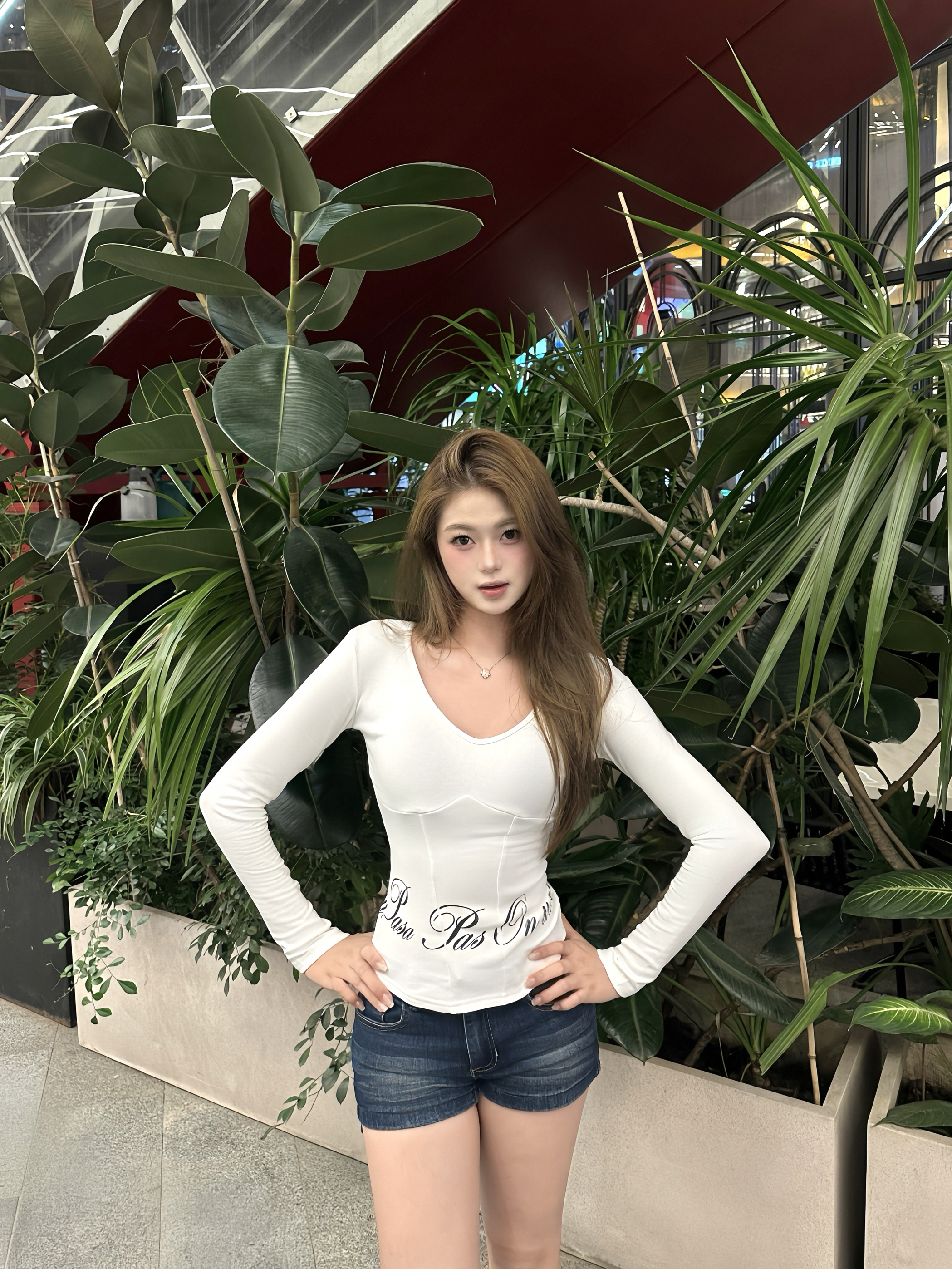 广州的天气能不能别这么离谱啊!! 已经穿短裤出门了,结果吃个饭直接热到冒汗! 前几天还冷到想穿外套 今天就要过25°了 😭在广州穿衣就是一场豪赌🎲 今天的小巧思🤍 -超显身材的仿鱼骨长袖搭配牛仔短裤~ 这件短裤一定要搭配厚底鞋!真的会显腿超长! 衣柜里薄厚衣轮流上岗!!