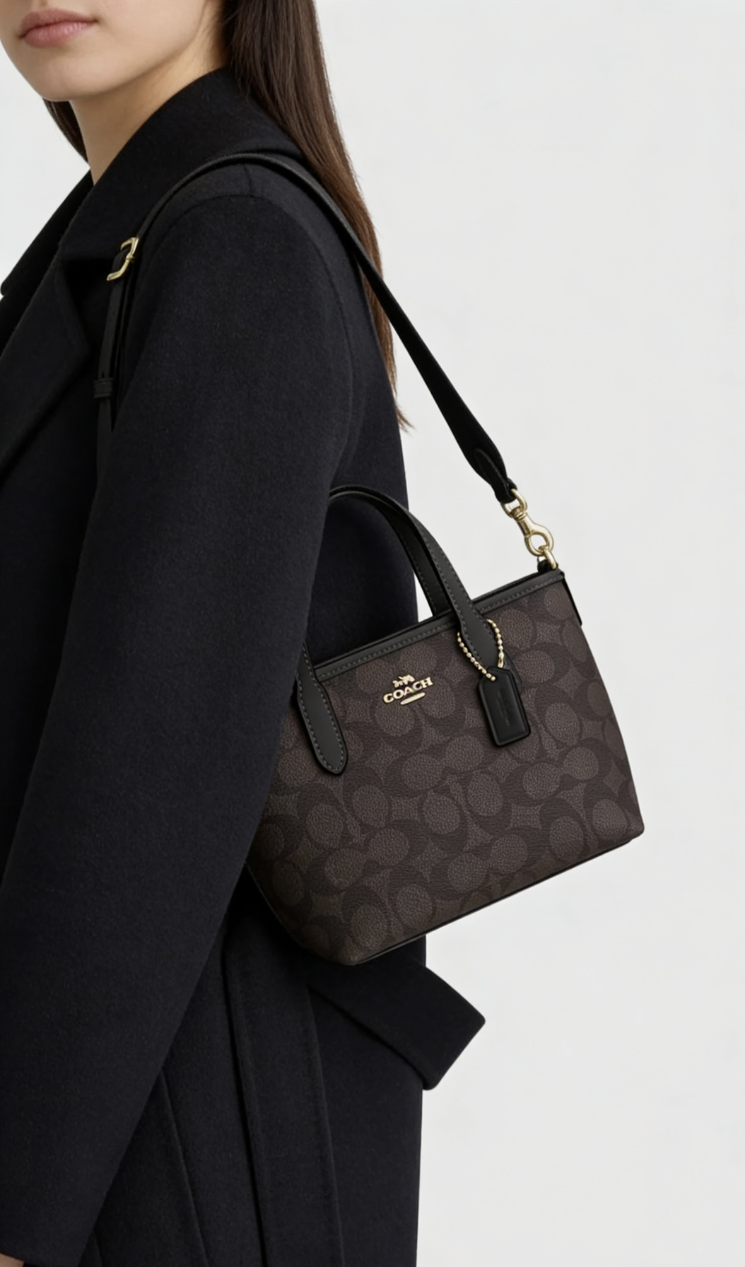 Coach City 15迷你托特包太戳我了!经典黑标人造革质感在线,可拆卸肩带手提斜挎都适配,迷你尺寸装下手机口红超便携,秋冬搭大衣绝了,谁懂这种精致小废包的快乐~