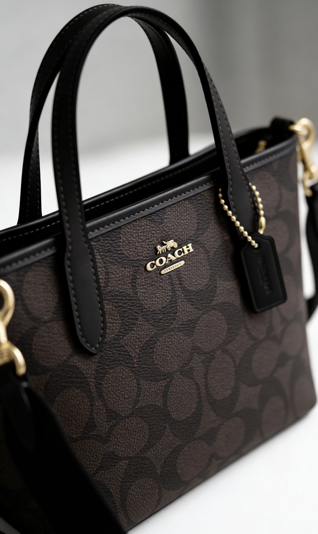 本篇笔记关联了Coach City 迷你 马车图案印花品牌徽标可拆卸肩带涂层帆布人造革购物袋单肩包托特包斜挎包手提包 黑棕色等商品,为用户提供真实的使用体验和购买参考。